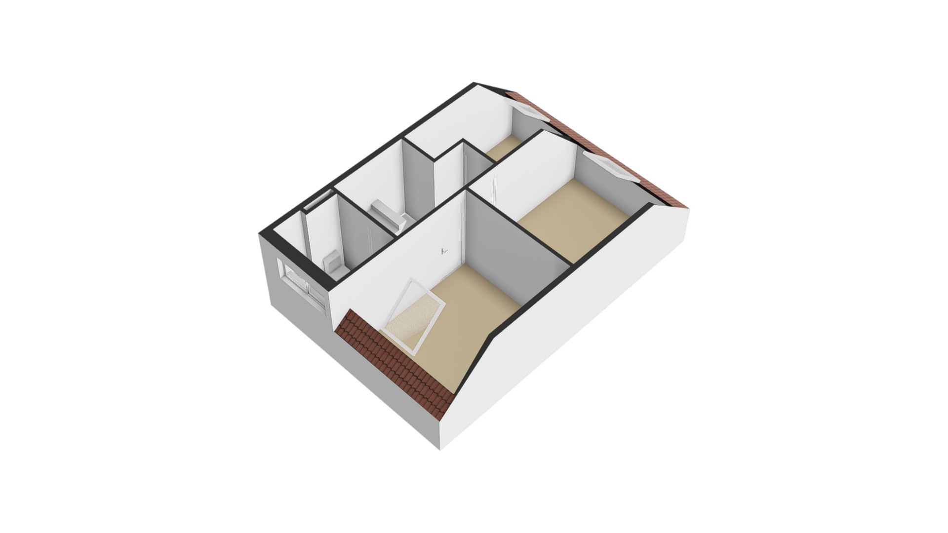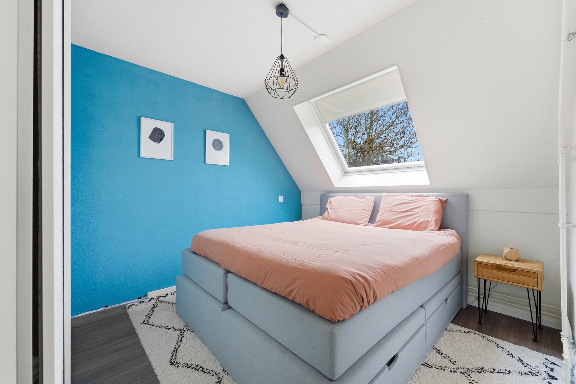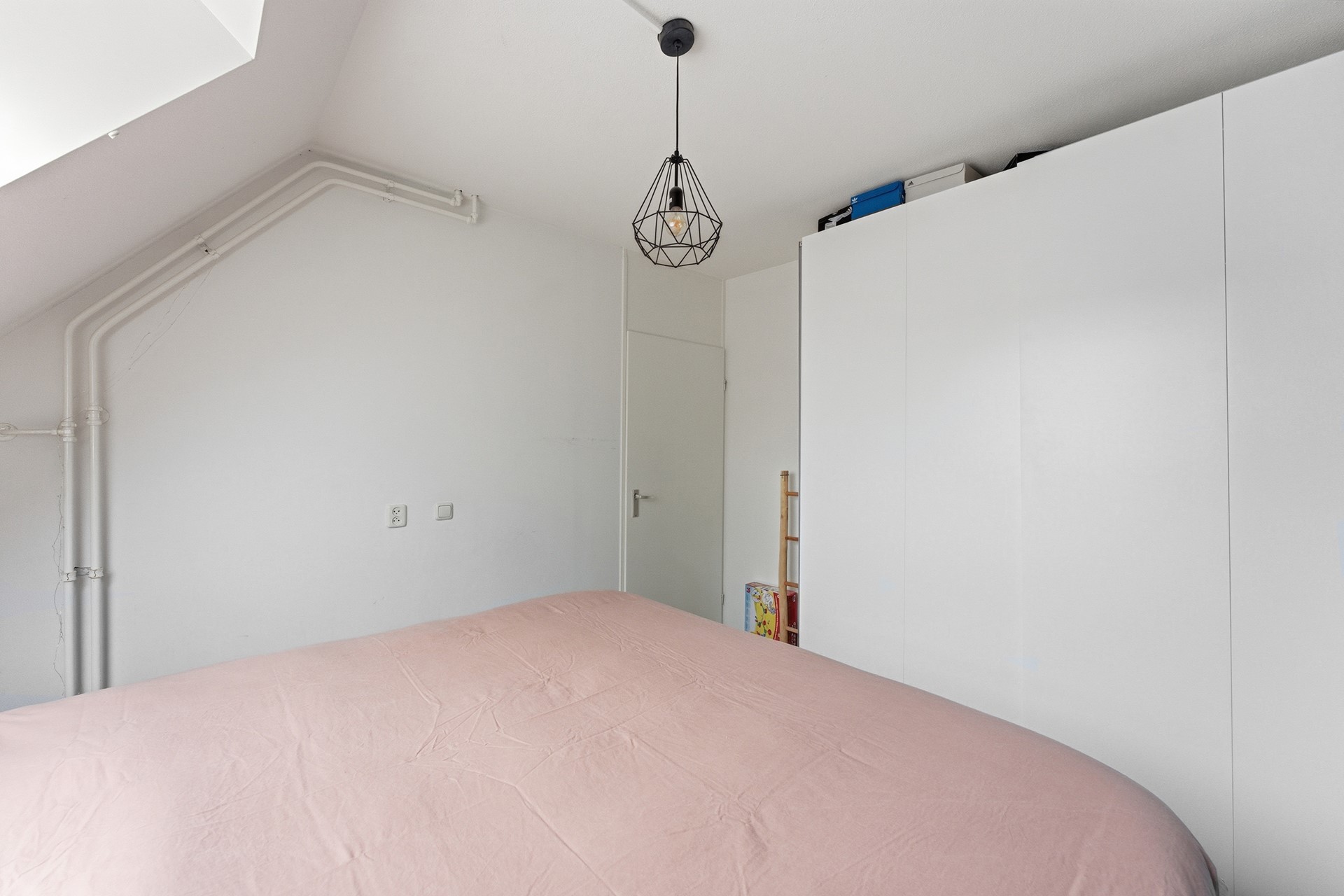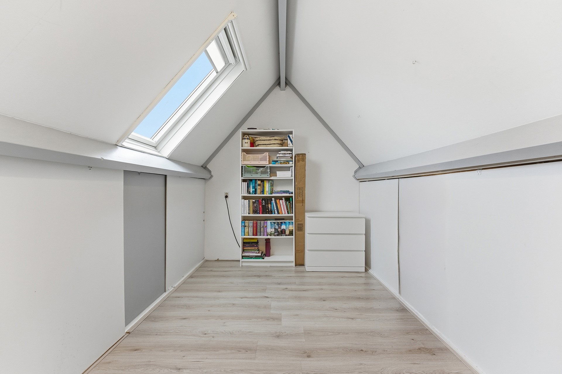 Slaapkamer 3: Aan de voorzijde bevindt zich de derde slaapkamer. Door de ligging aan de voorkant valt hier prettig daglicht naar binnen. De kamer is voorzien van een dakraam met hor en is groot genoeg voor een tweepersoonsbed. De afwerking bestaat uit laminaat, structuurwanden en een spuitwerkplafond.