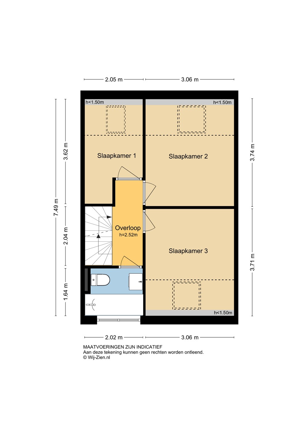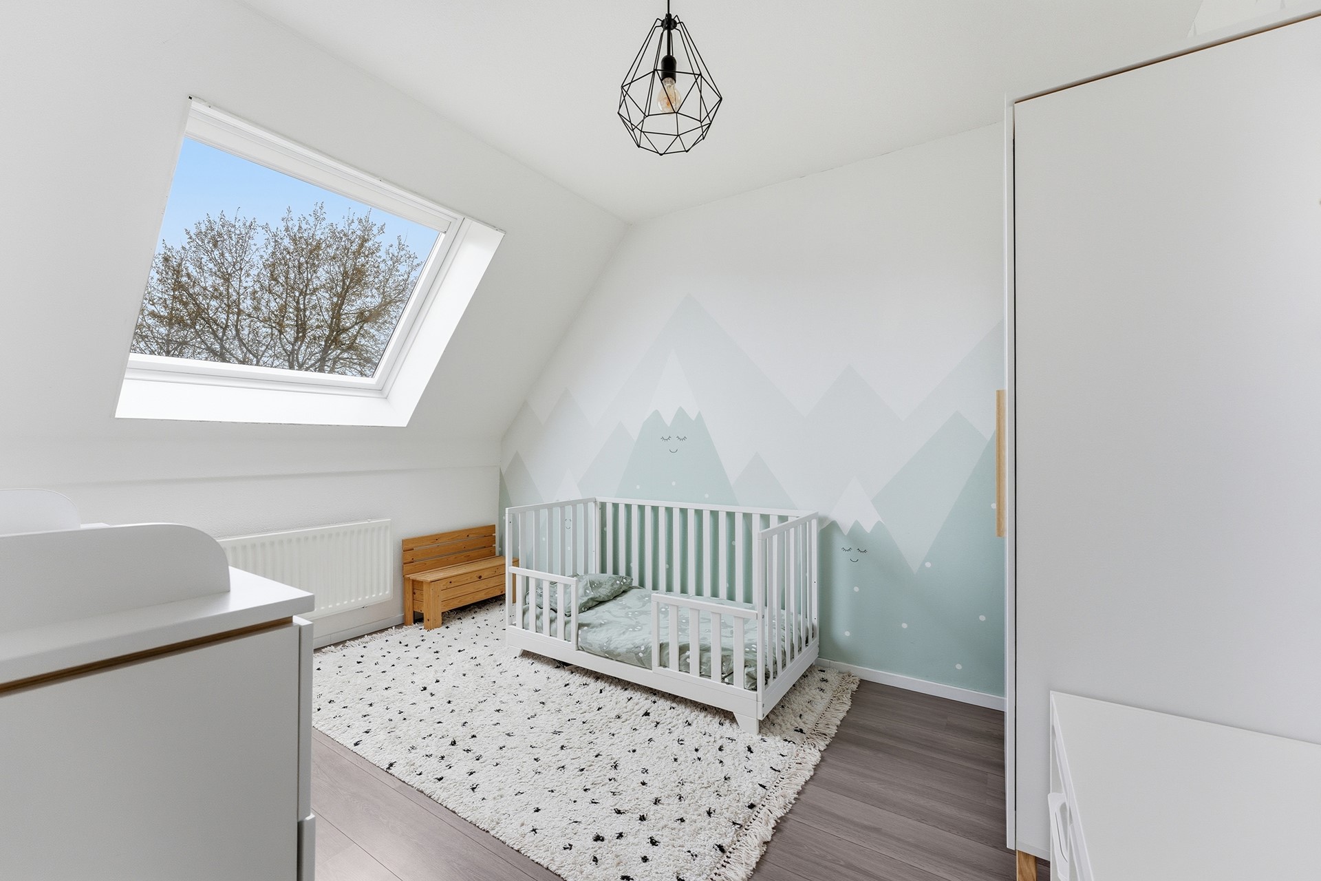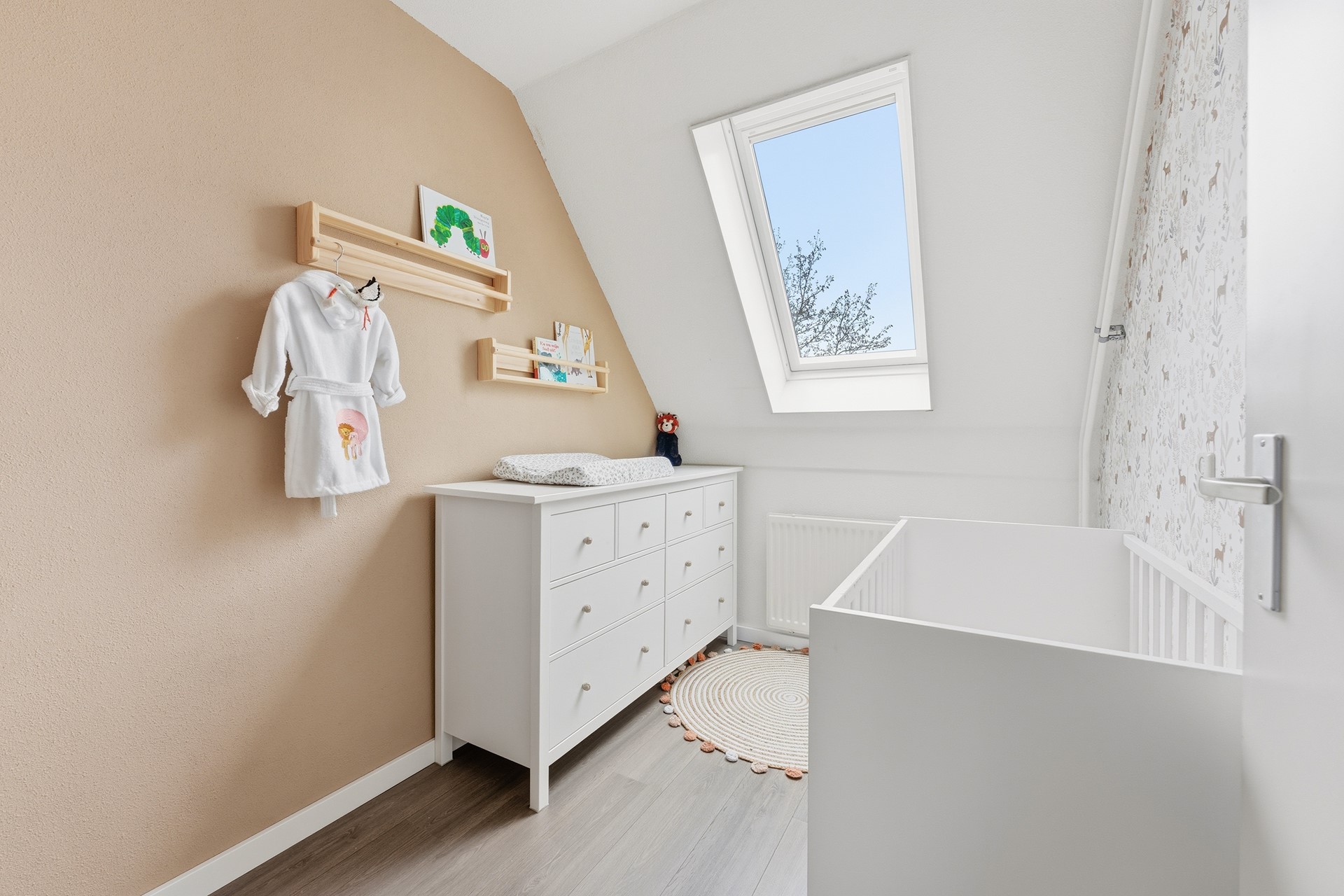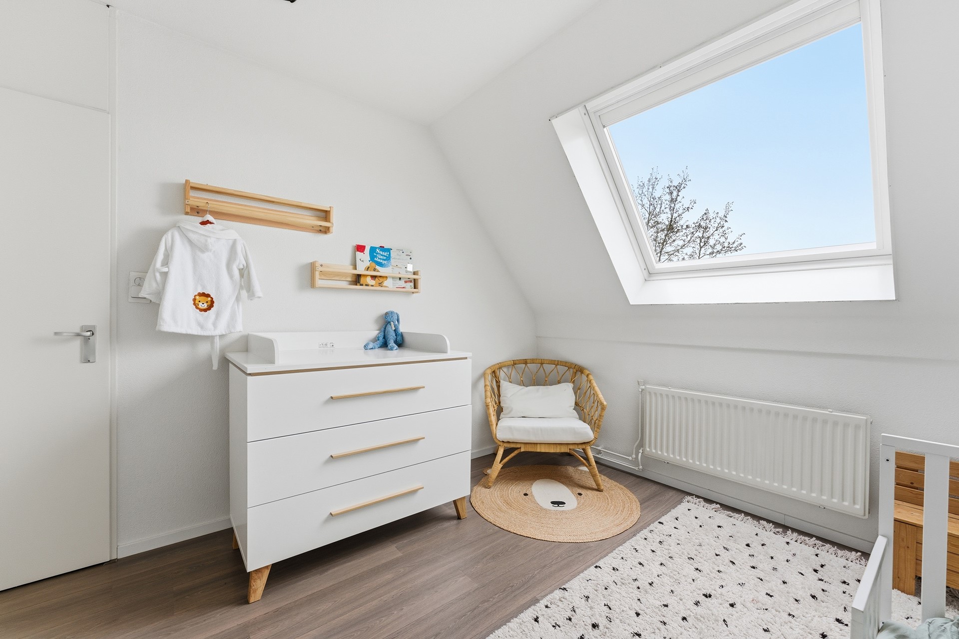 Slaapkamer 3: Aan de voorzijde bevindt zich de derde slaapkamer. Door de ligging aan de voorkant valt hier prettig daglicht naar binnen. De kamer is voorzien van een dakraam met hor en is groot genoeg voor een tweepersoonsbed. De afwerking bestaat uit laminaat, structuurwanden en een spuitwerkplafond.
