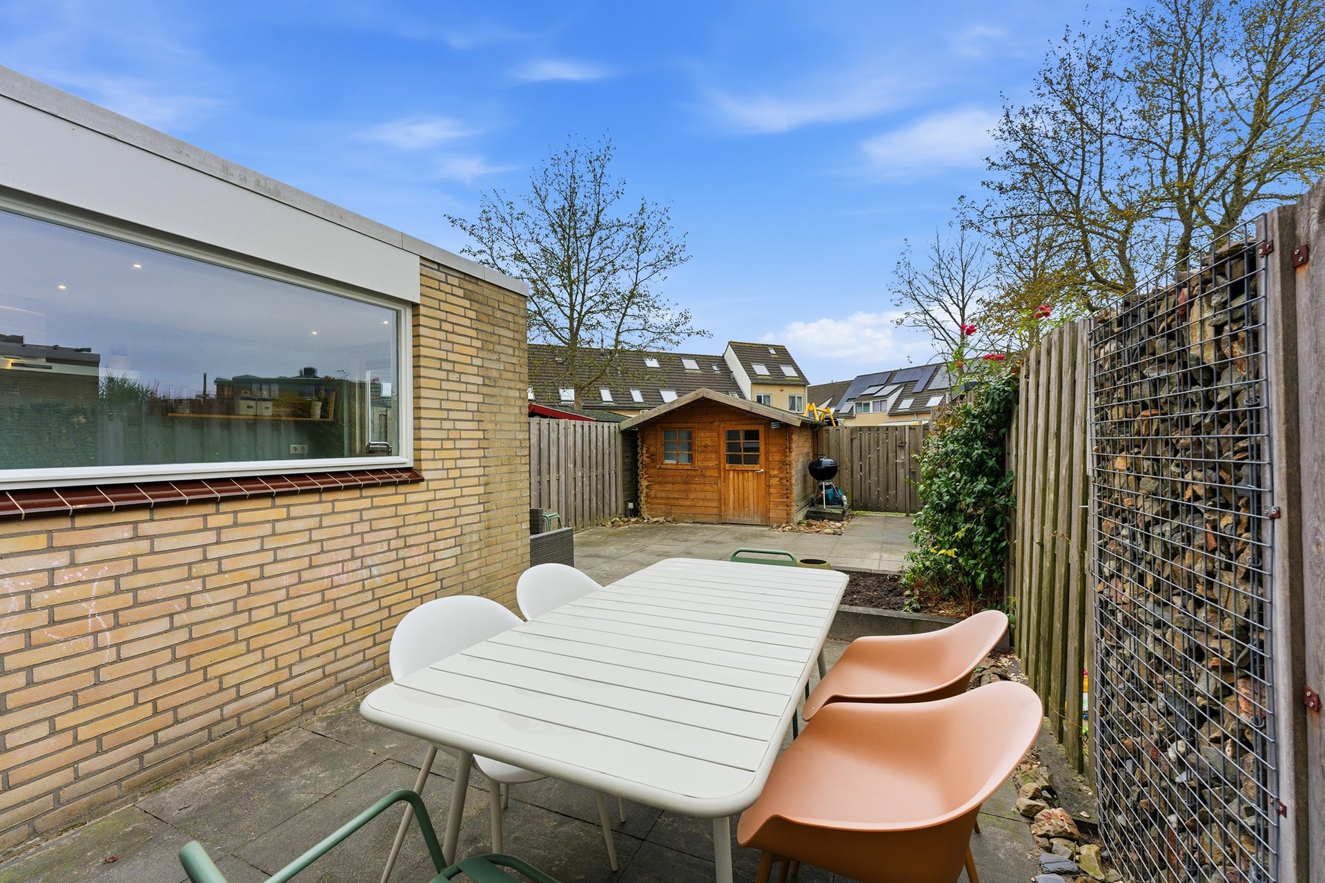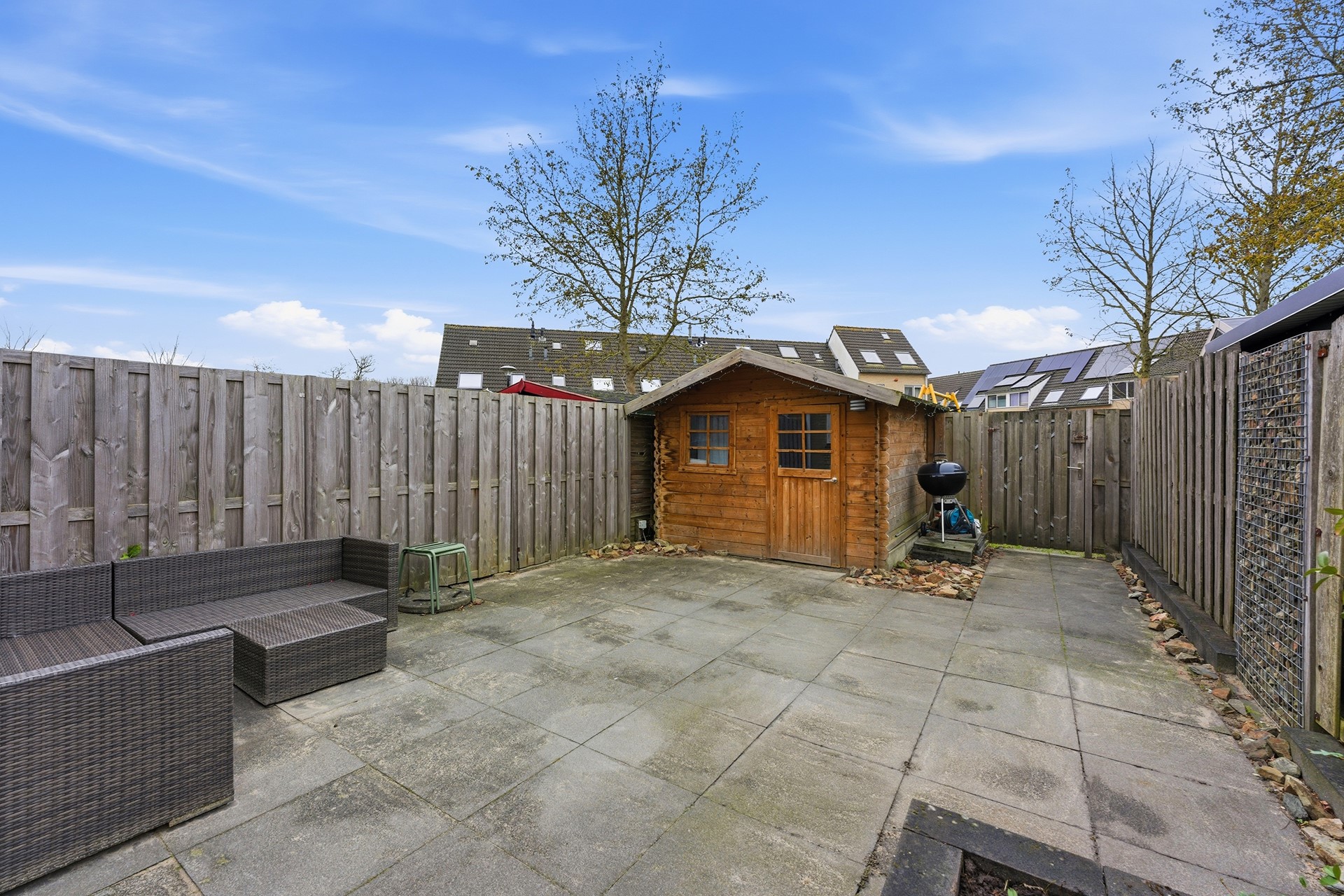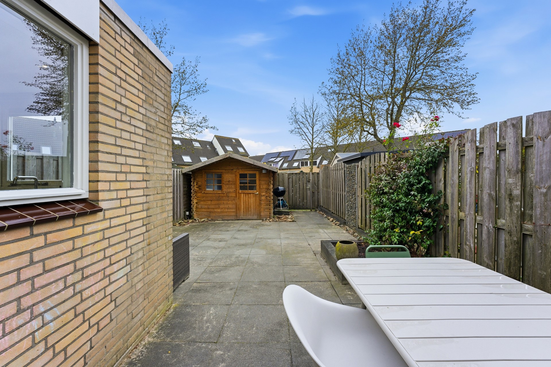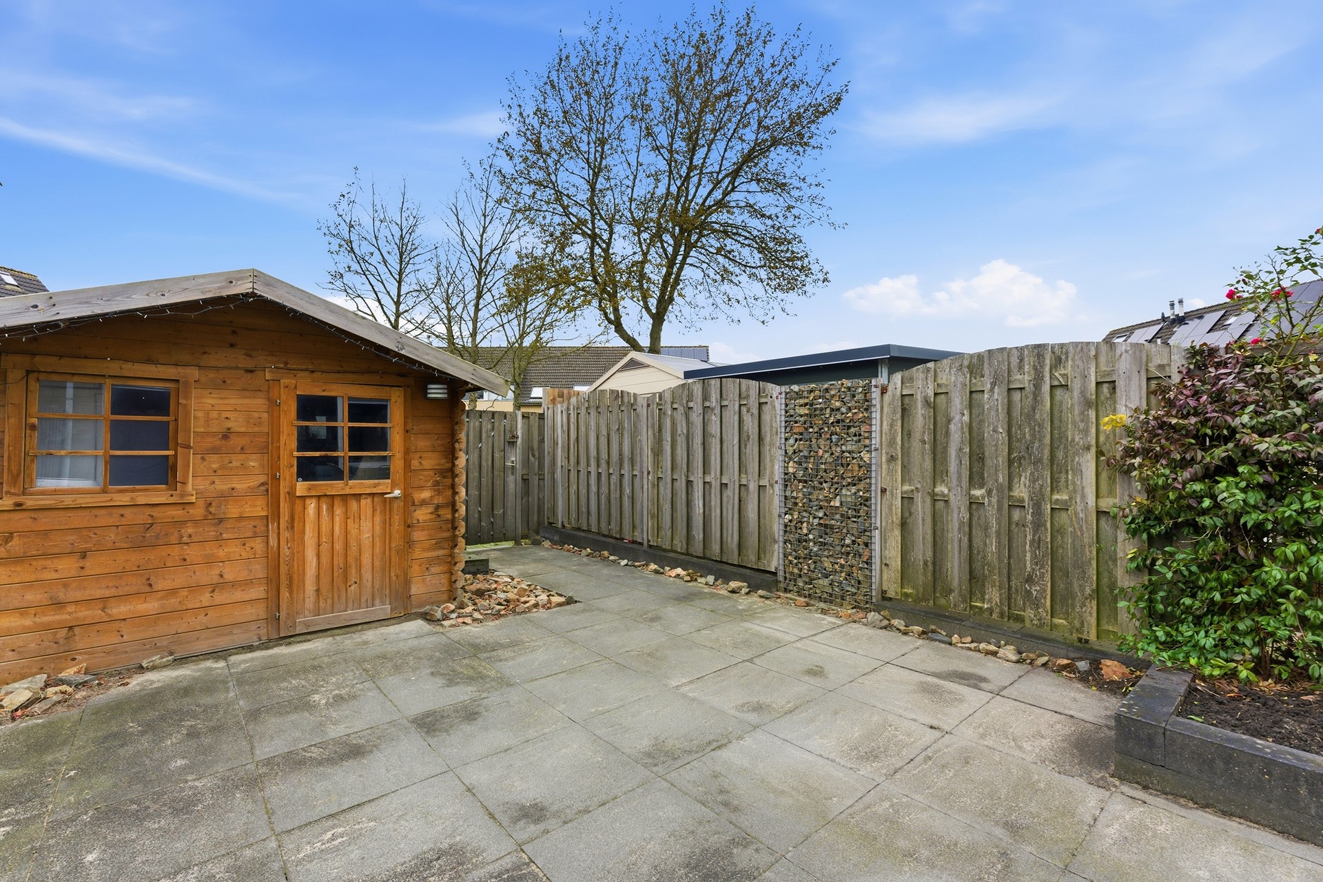 Schuur: In de achtertuin staat een houten schuur die geschikt is voor het opbergen van fietsen en tuingereedschap. De schuur beschikt over elektra.