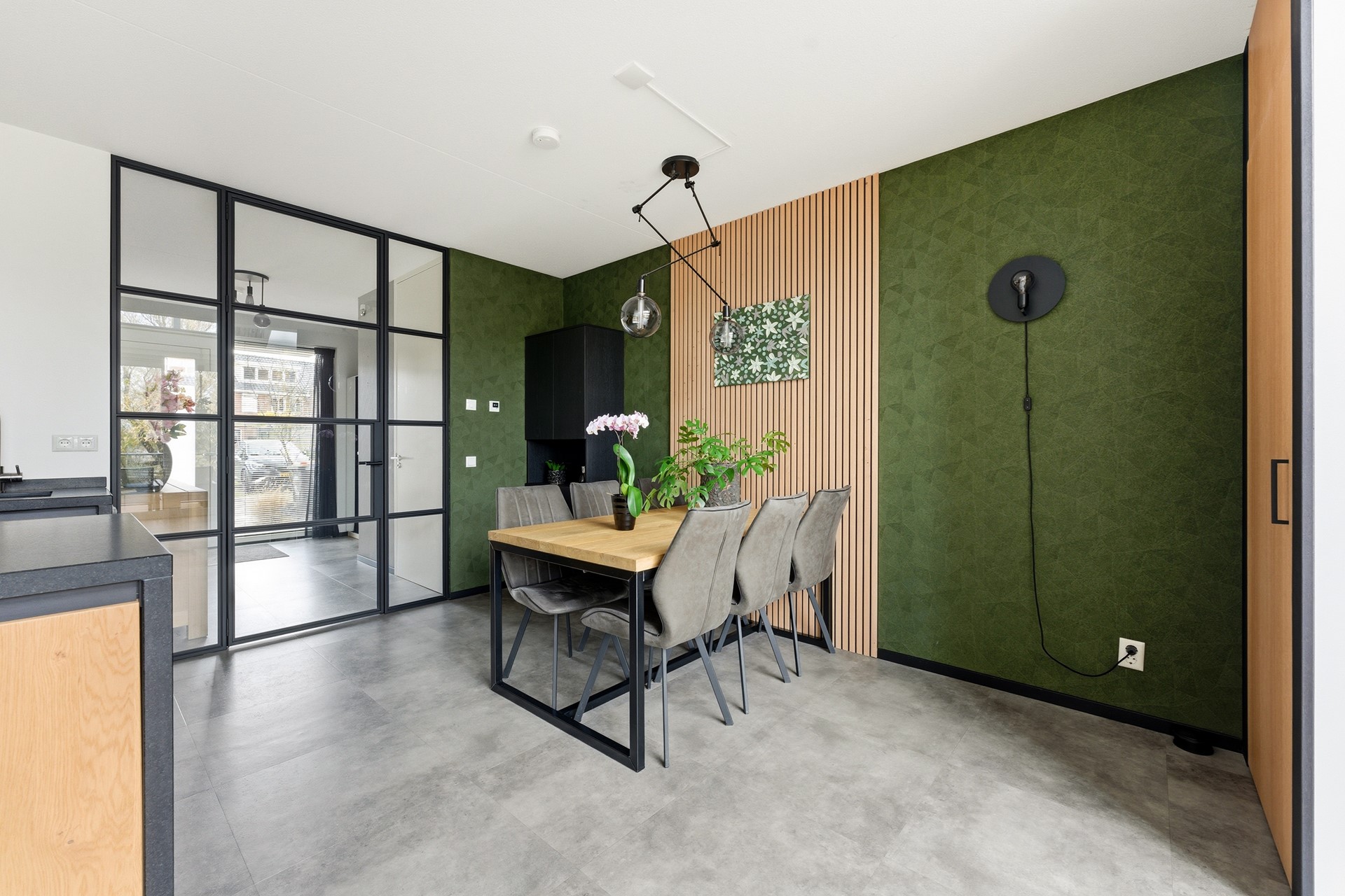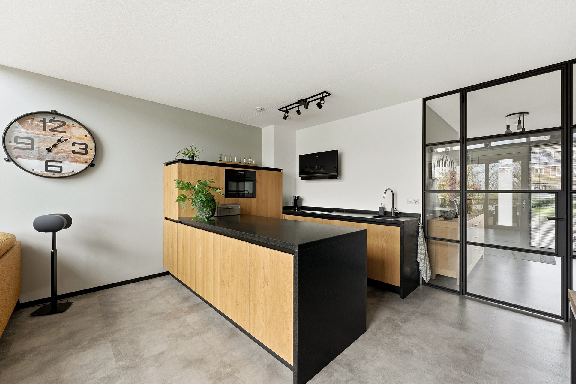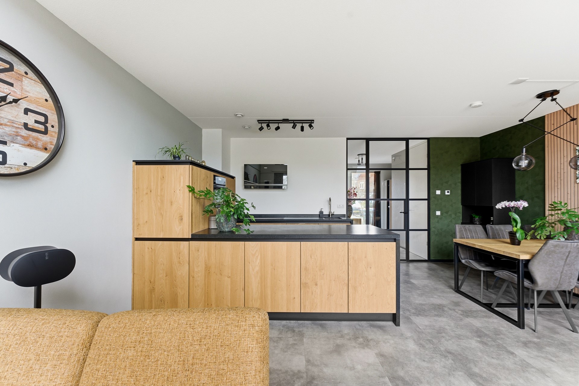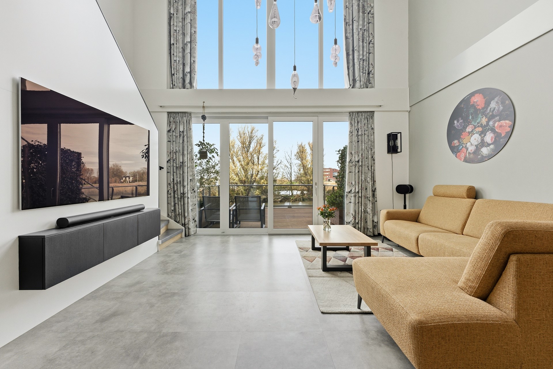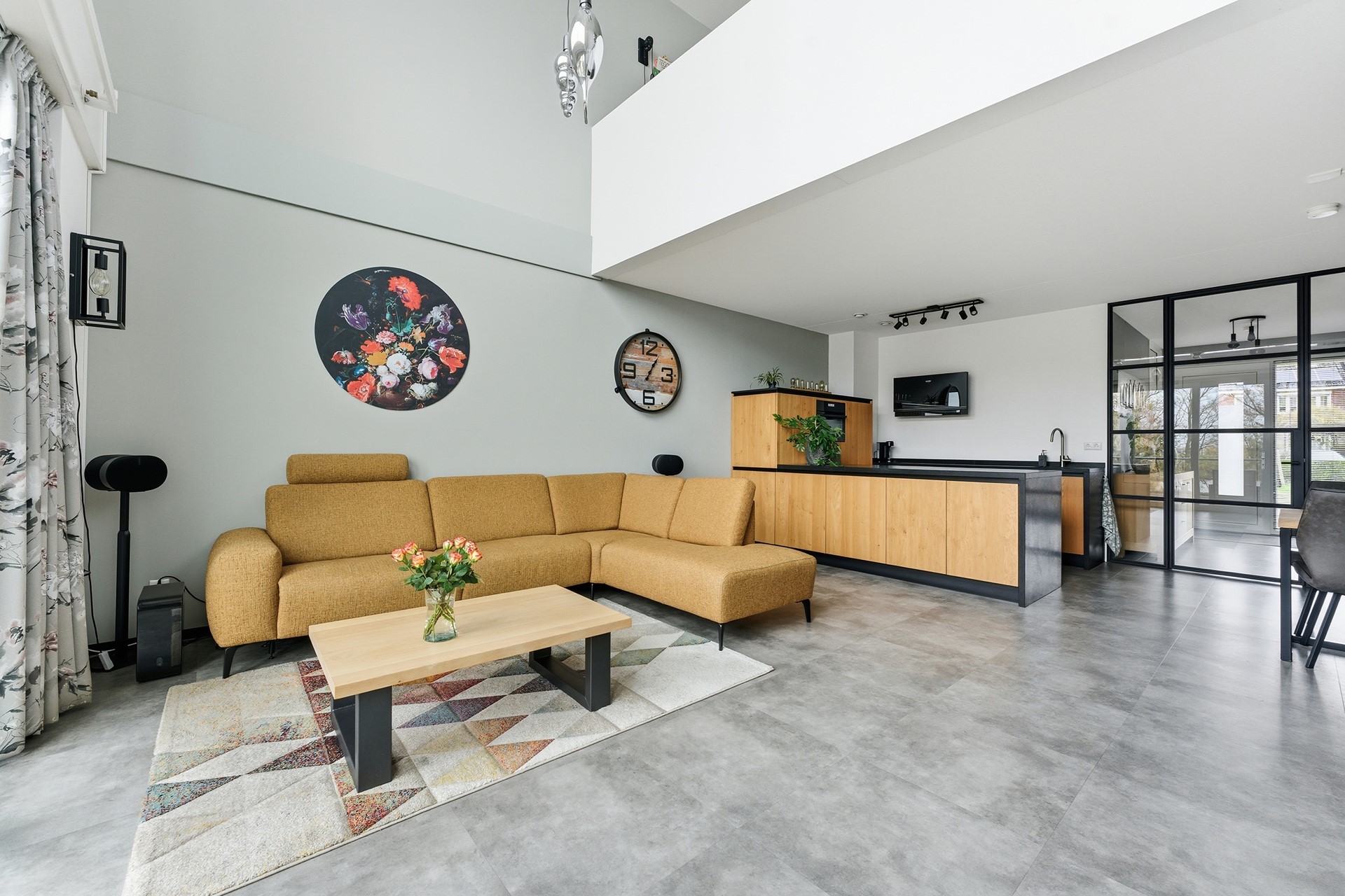 Woonkamer: De woonkamer is een echte blikvanger met een hoog plafond, grote glazen pui (triple glas) en schuifpui naar het terras. Dankzij het vele licht en de vloerverwarming en -koeling is dit een heerlijke leefruimte. Er is voldoende plek voor een royale zithoek aan de achterzijde en een eetgedeelte dicht bij de keuken. In de trapkast is extra bergruimte voor al je spullen.