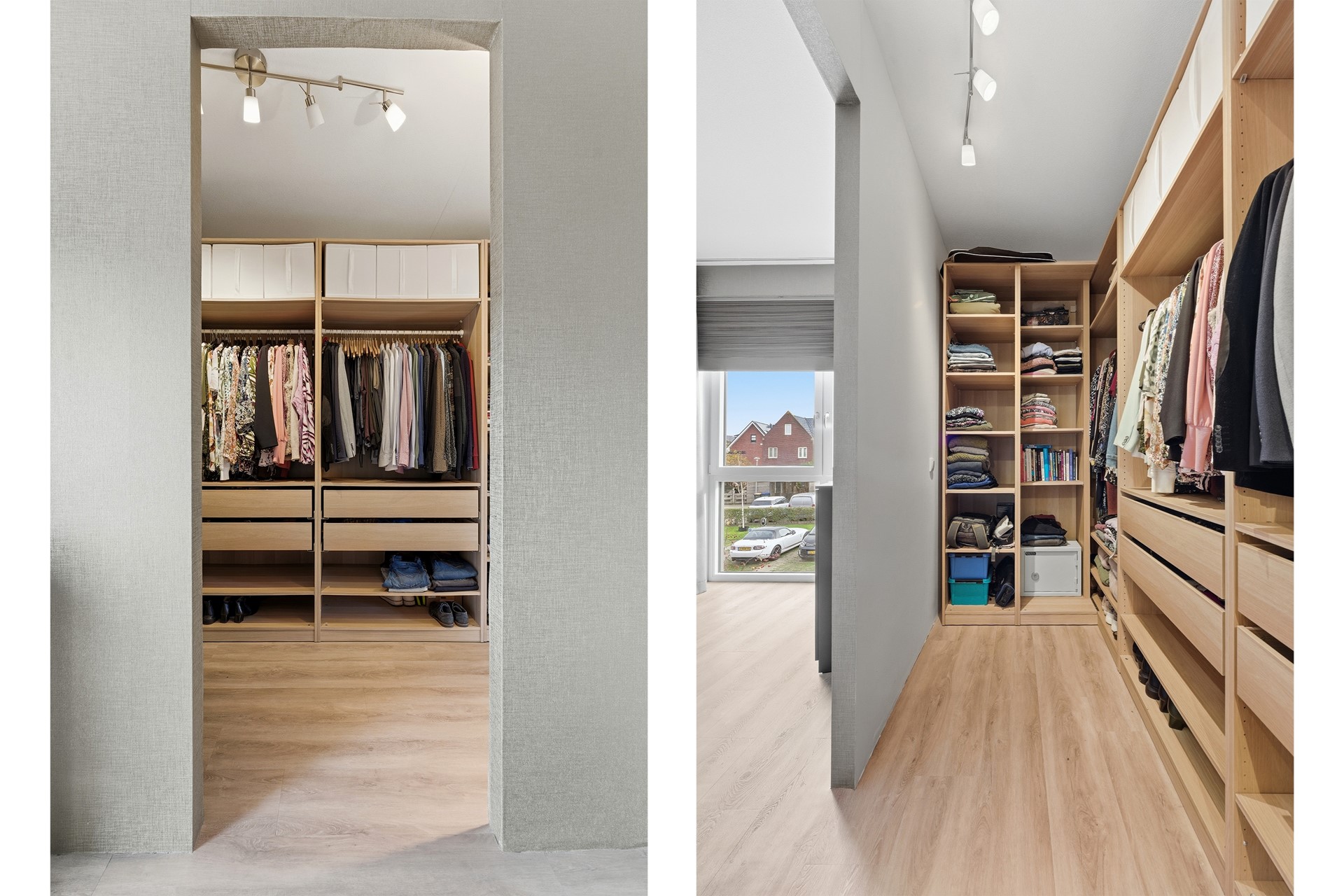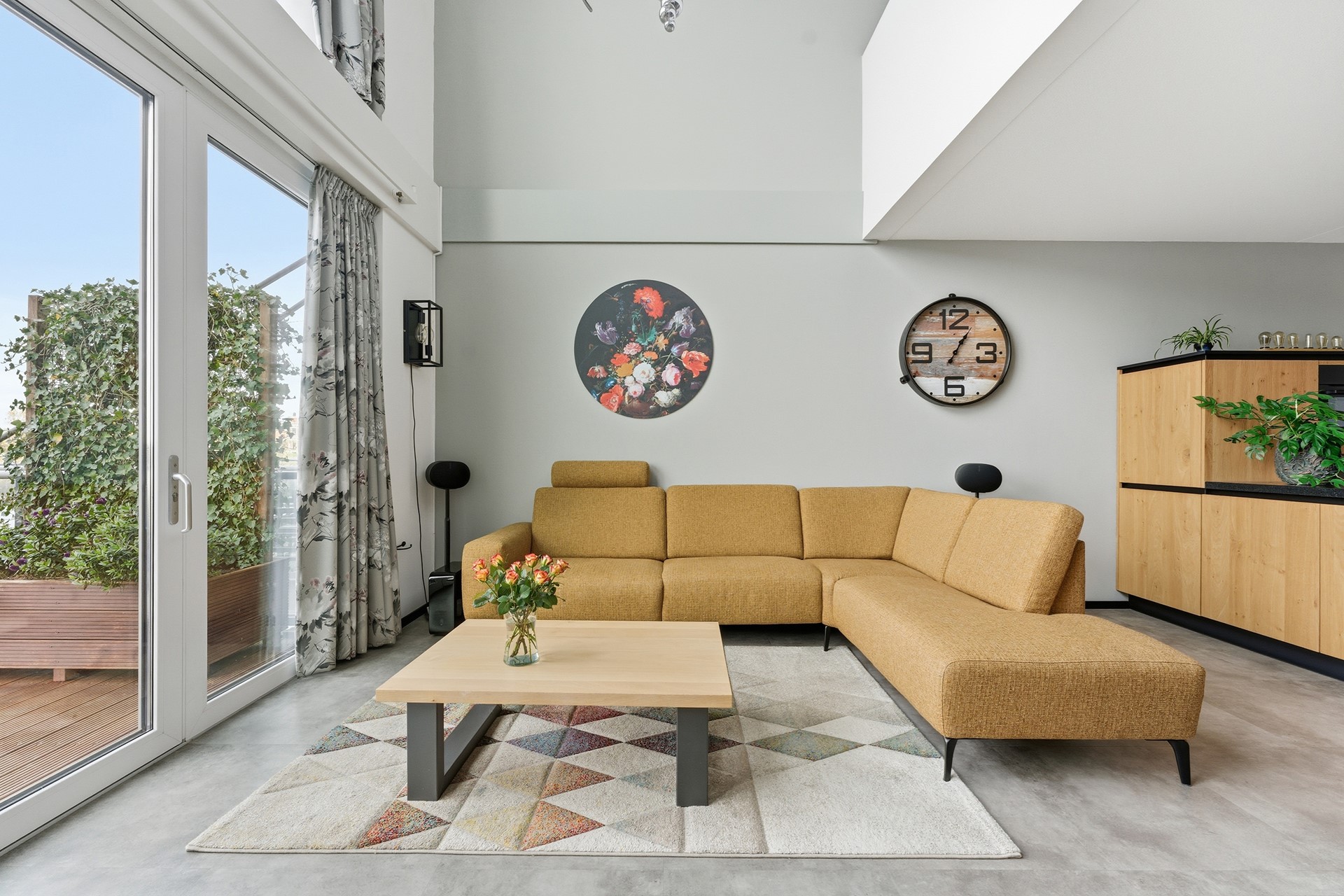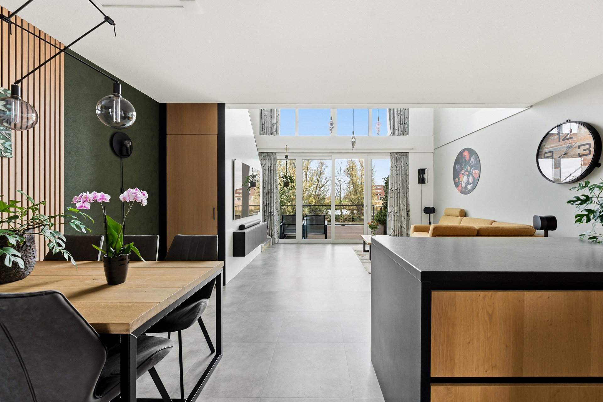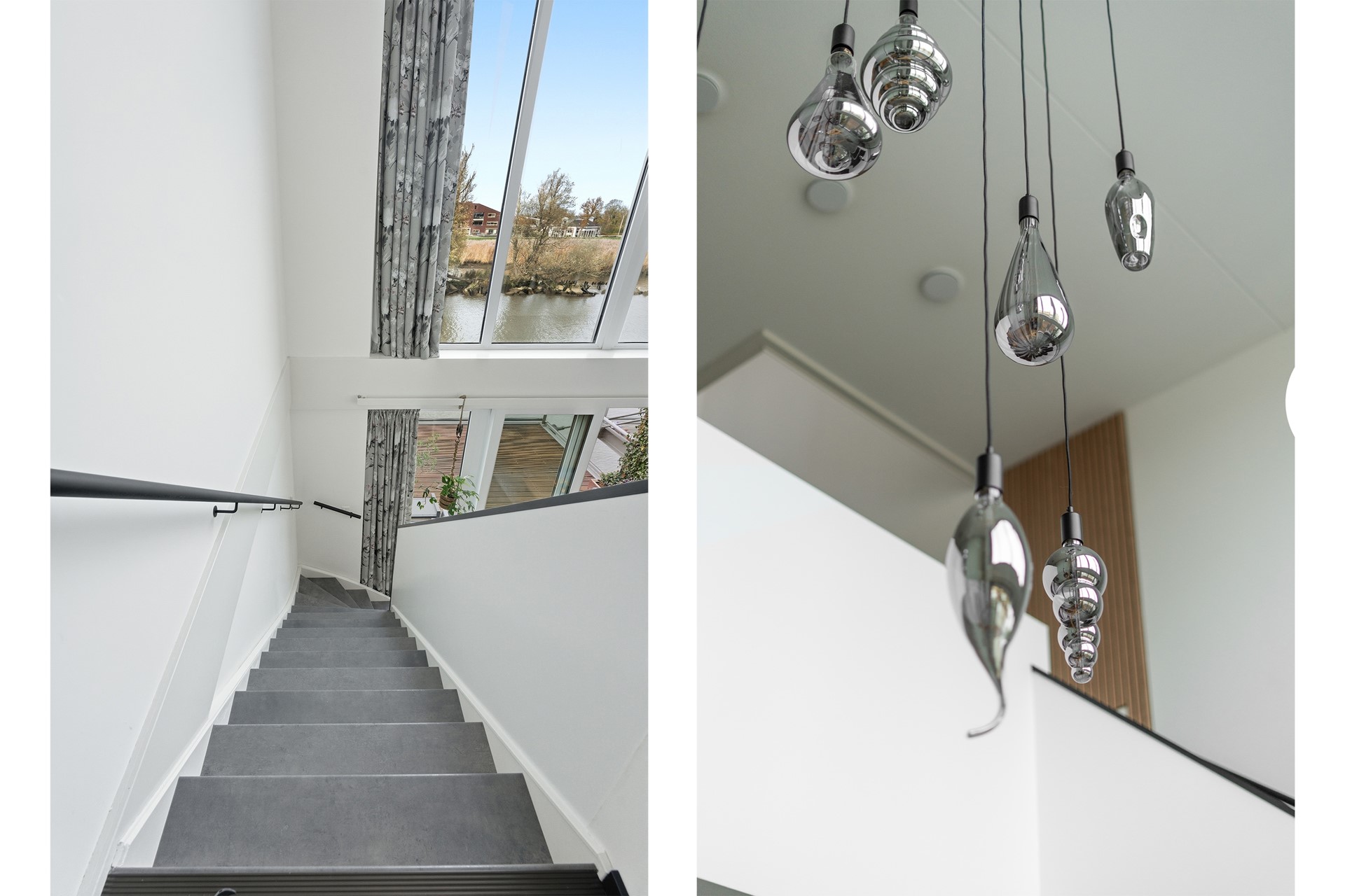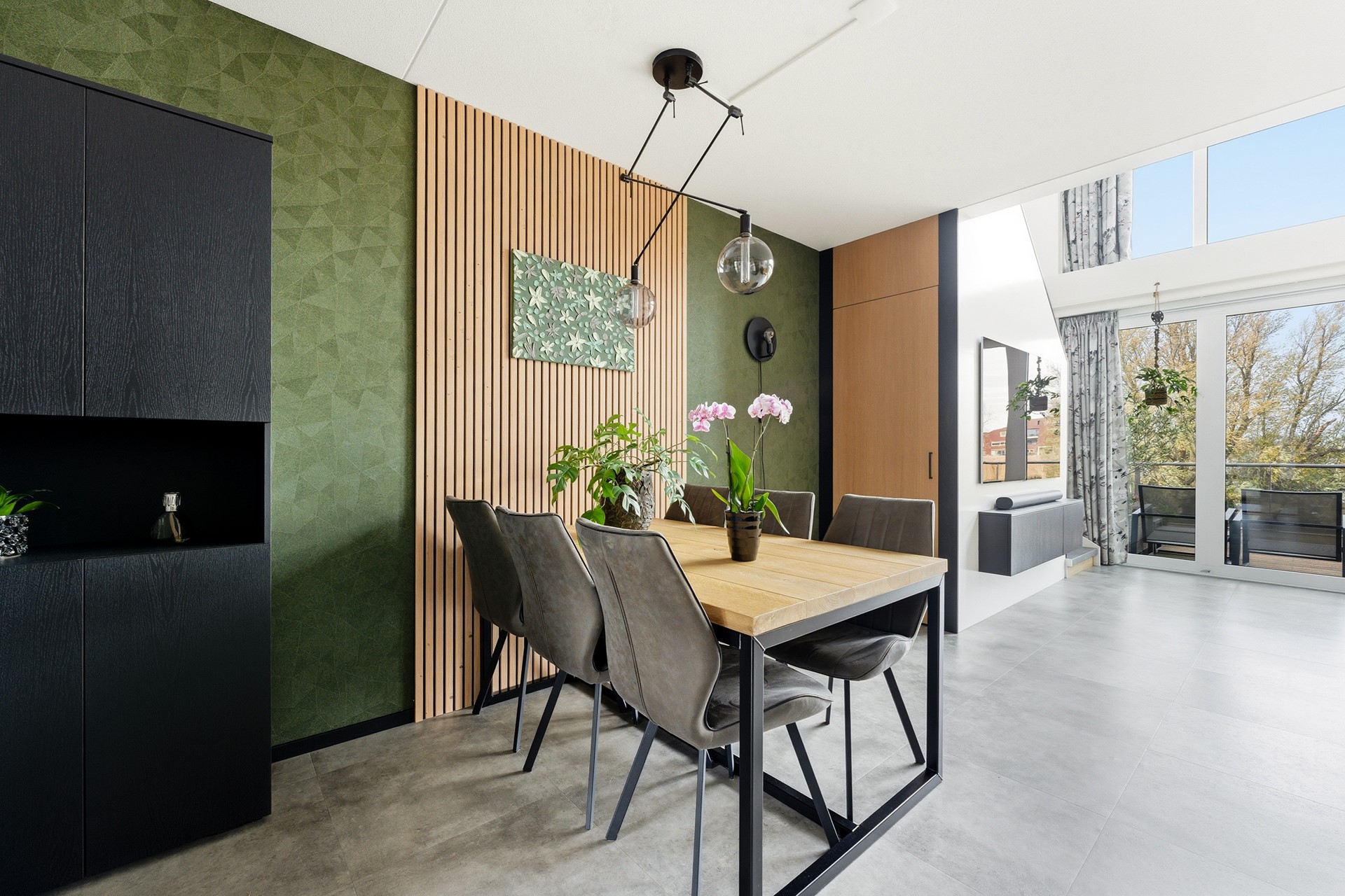Woonkamer: De woonkamer is een echte blikvanger met een hoog plafond, grote glazen pui (triple glas) en schuifpui naar het terras. Dankzij het vele licht en de vloerverwarming en -koeling is dit een heerlijke leefruimte. Er is voldoende plek voor een royale zithoek aan de achterzijde en een eetgedeelte dicht bij de keuken. In de trapkast is extra bergruimte voor al je spullen.