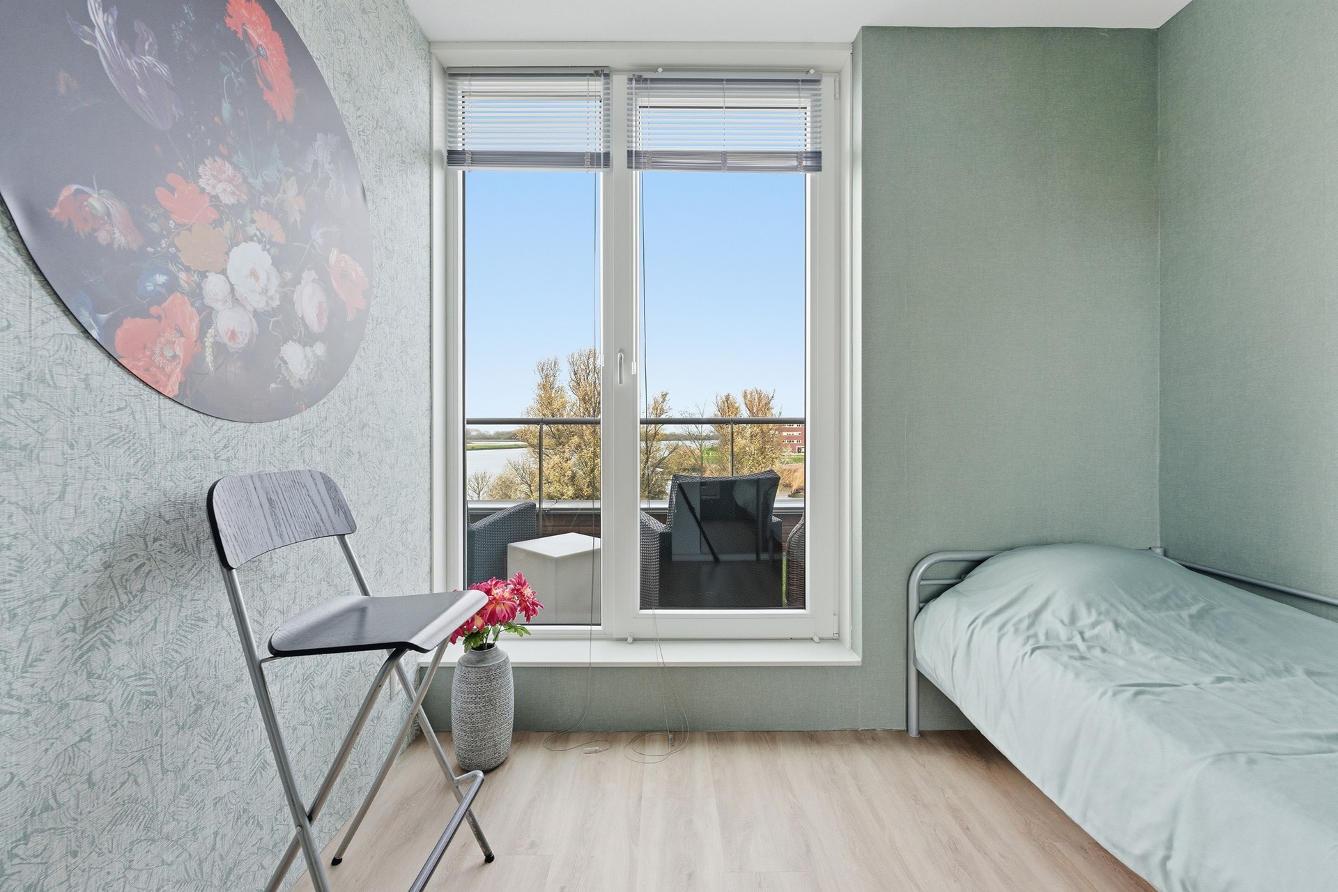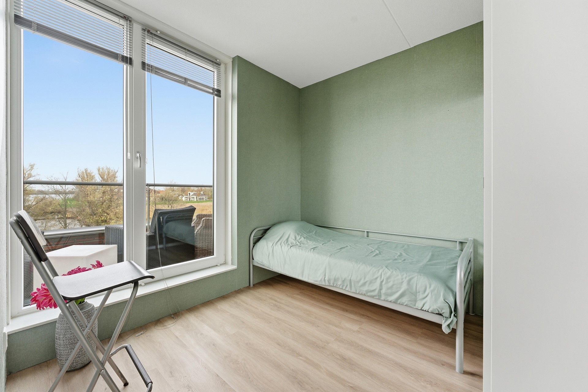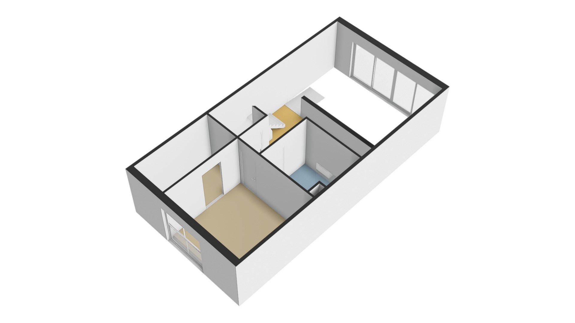Slaapkamer 2: Slaapkamer twee ligt aan de achterzijde van de woning en heeft als groot pluspunt directe toegang tot het dakterras. Hierdoor voelt de kamer extra licht. Het is een fijne, rustige plek waar je een eenpersoonsbed kunt plaatsen. Een ideale kamer voor een kind, logé of als rustige werkruimte.