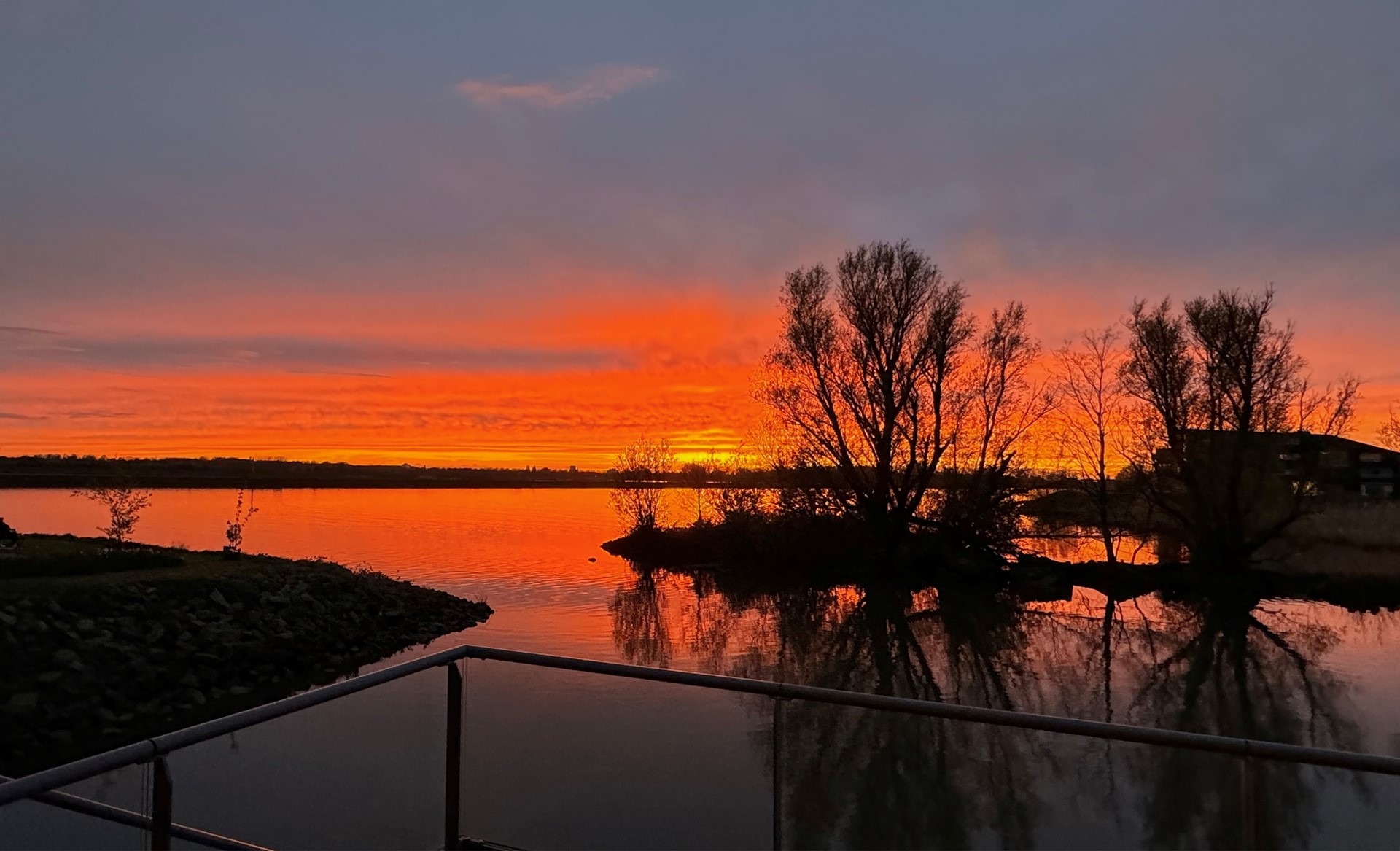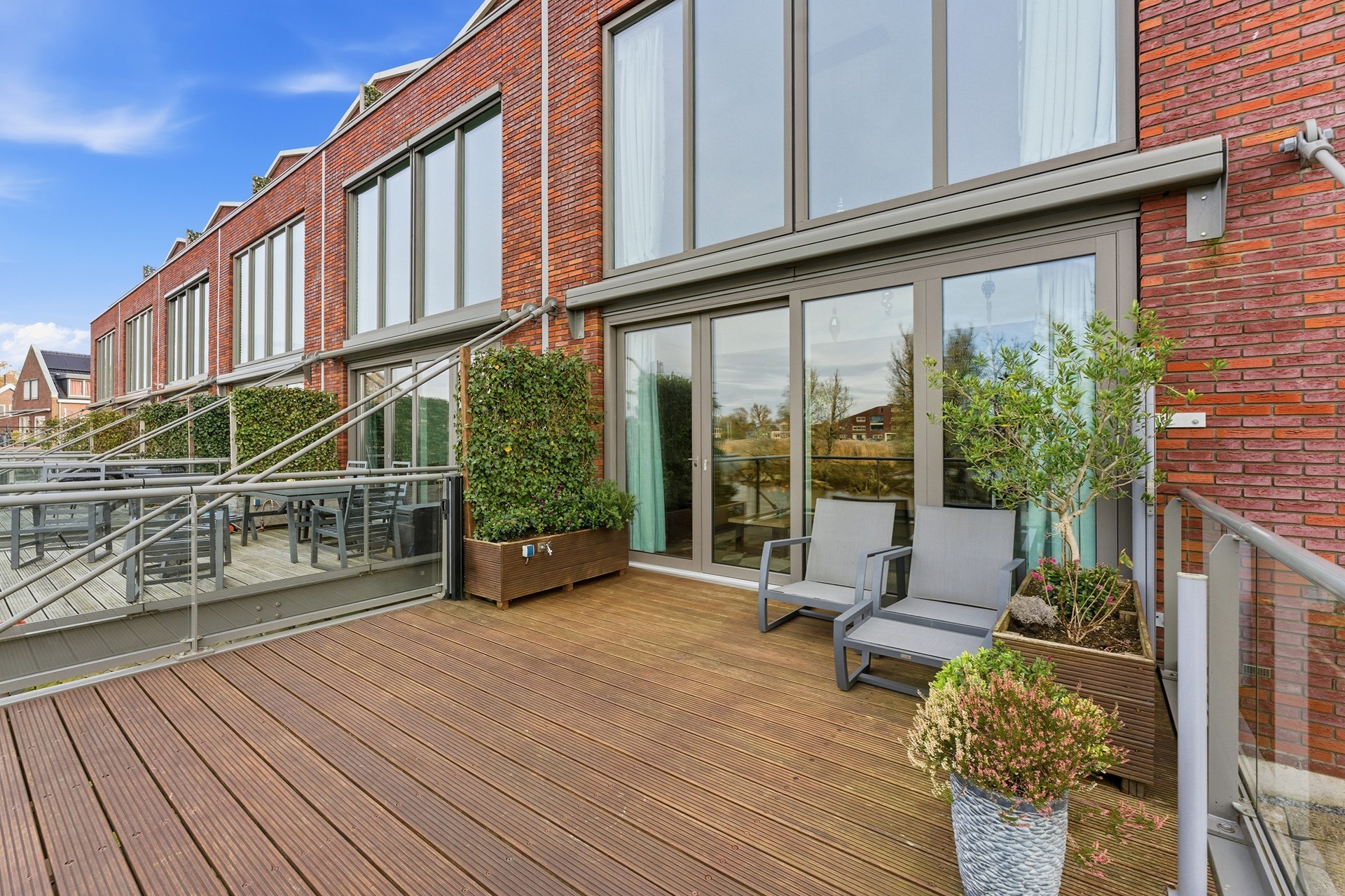 Achtertuin: Het terras (afm. ca. 4.94 x 4.68) is zonder twijfel één van de mooiste plekken van de woning. Gelegen op het noordwesten geniet je hier vanaf ongeveer 15:00 uur tot aan het moment dat de zon echt ondergaat van heerlijk zonlicht. Dat betekent lange zomeravonden, warme temperaturen en een uitzicht dat nooit verveelt. Je kijkt uit over De Noord, waar schepen rustig voorbijvaren, vogels langs de waterkant landen en de lucht elke dag een ander kleurenspel laat zien. Een ideale plek om te ontspannen, te borrelen met vrienden of simpelweg stil te genieten van het buitenleven. De tuin is verder praktisch ingericht met water- en elektra-aansluitingen en een zonnescherm.