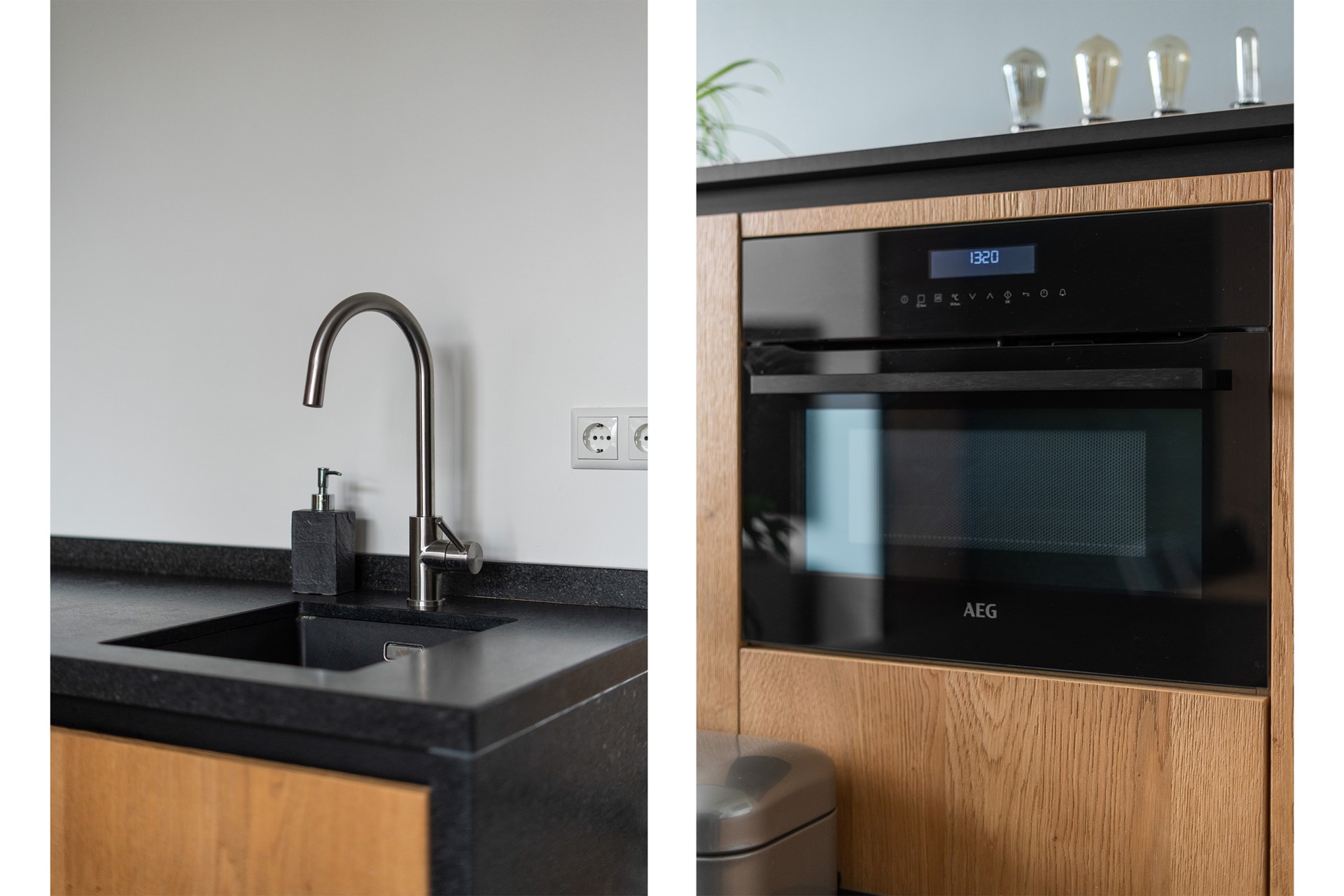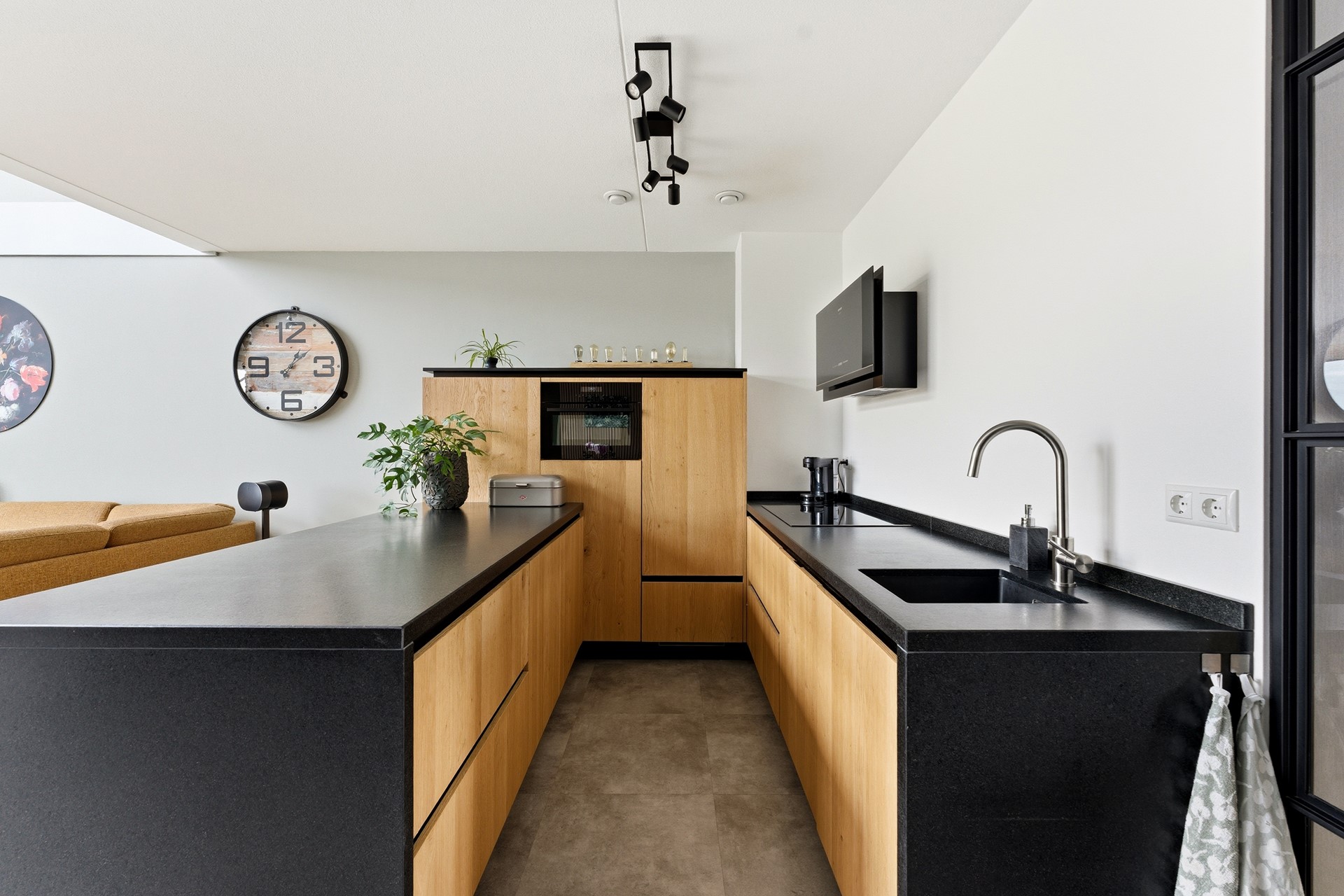 Keuken: De open keuken is modern en strak afgewerkt met een inductiekookplaat, afzuigkap, oven/magnetron-combinatie, koelkast en een vaatwasser. Vanuit de keuken kijk je uit over het terras. Koken wordt hier echt een plezier. De keuken heeft een groot werkeiland en de werkbladen zijn van natuursteen.