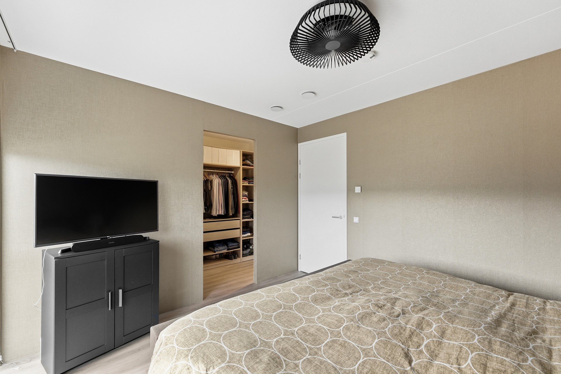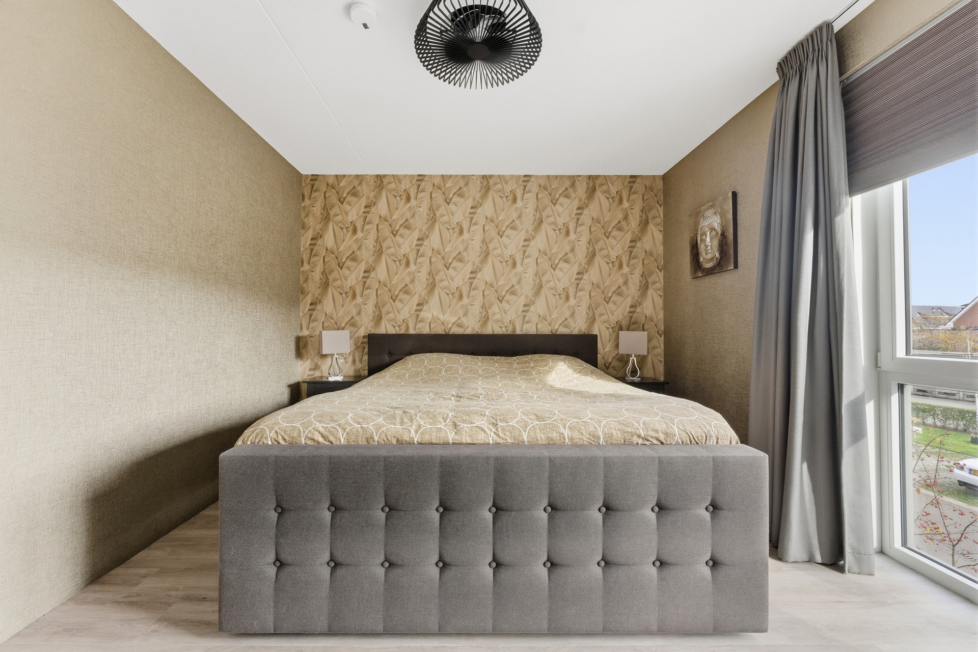 Slaapkamer 1: Een royale slaapkamer aan de voorzijde, voorzien van een walk-in closet. Ideaal als master bedroom. Het grote raam laat veel daglicht binnen en geeft een open gevoel. De kamer is netjes afgewerkt met pvc-vloer, behangwanden en een spuitwerk plafond.
