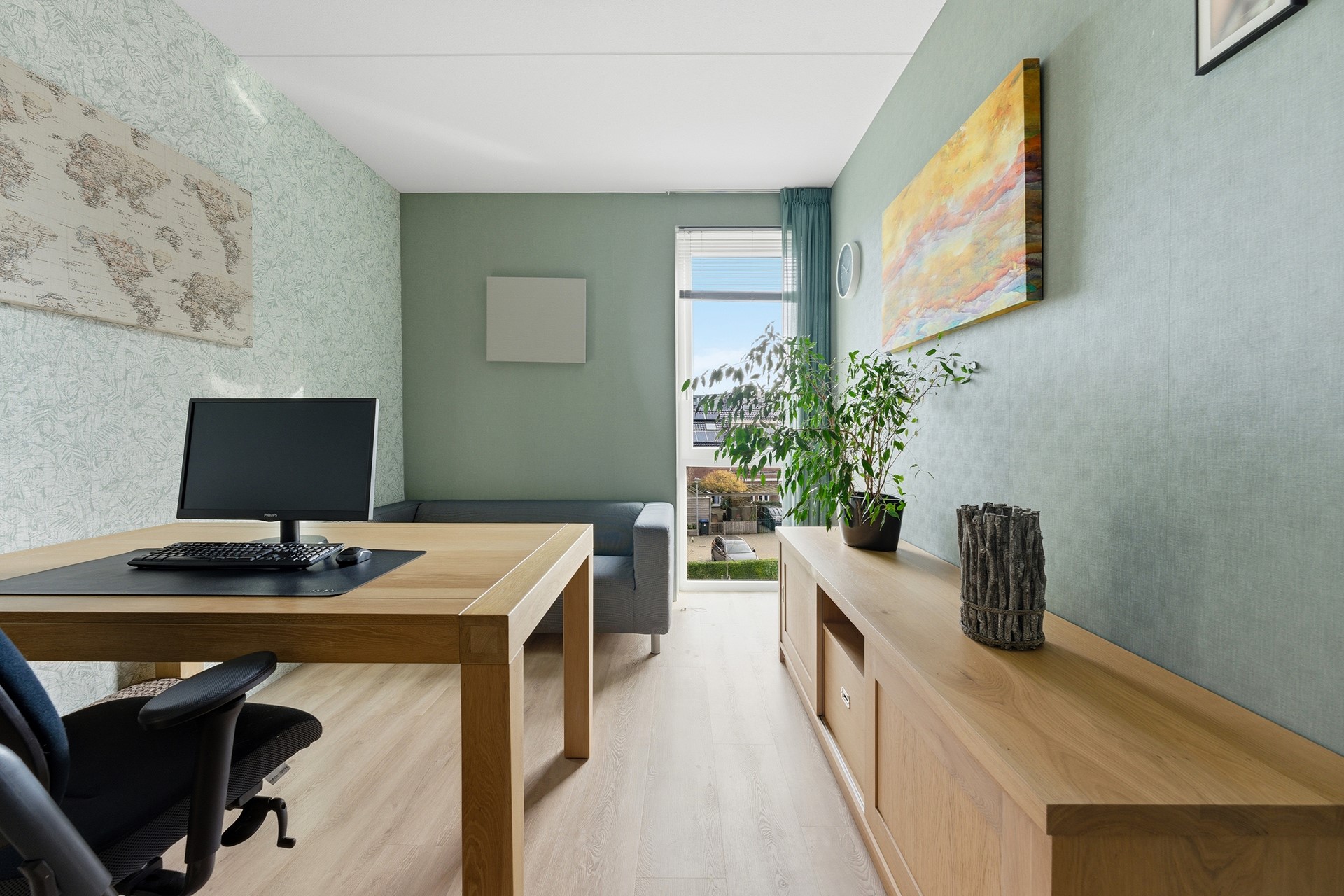 Slaapkamer 4: Slaapkamer vier is gelegen aan de voorzijde van de woning en is keurig afgewerkt. De kamer voelt prettig en functioneel aan, met voldoende ruimte voor een bed, kast en bureau.