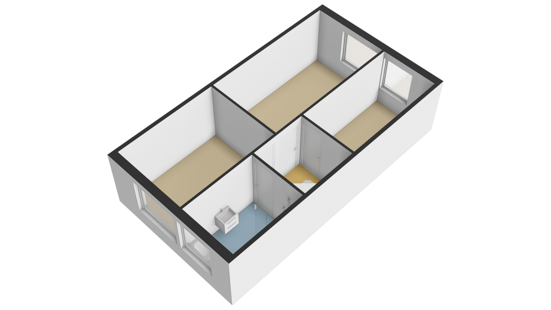 Slaapkamer 3: Deze slaapkamer ligt eveneens aan de achterzijde en is geschikt als knusse kinder- of werkkamer. Ook hier zijn rolluiken aanwezig. De kamer is afgewerkt met behangwanden en een spuitwerkplafond.