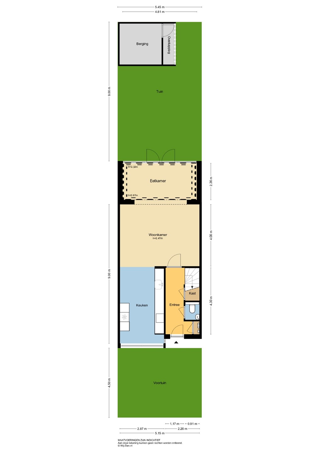 Voortuin: De voortuin (afm. ca. 5,45 x 4,5 m) ligt op het zonnige zuidoosten en vormt een verzorgde entree van de woning. Het geheel is fraai aangelegd met sierbestrating, borders met grind en een boompje dat het voorzicht van de woning compleet maakt.