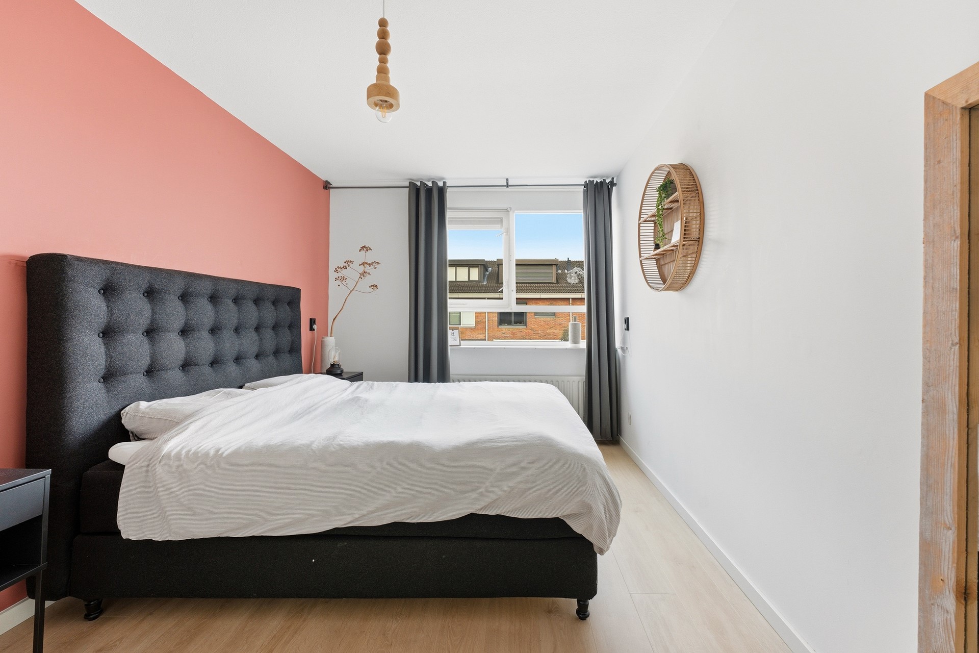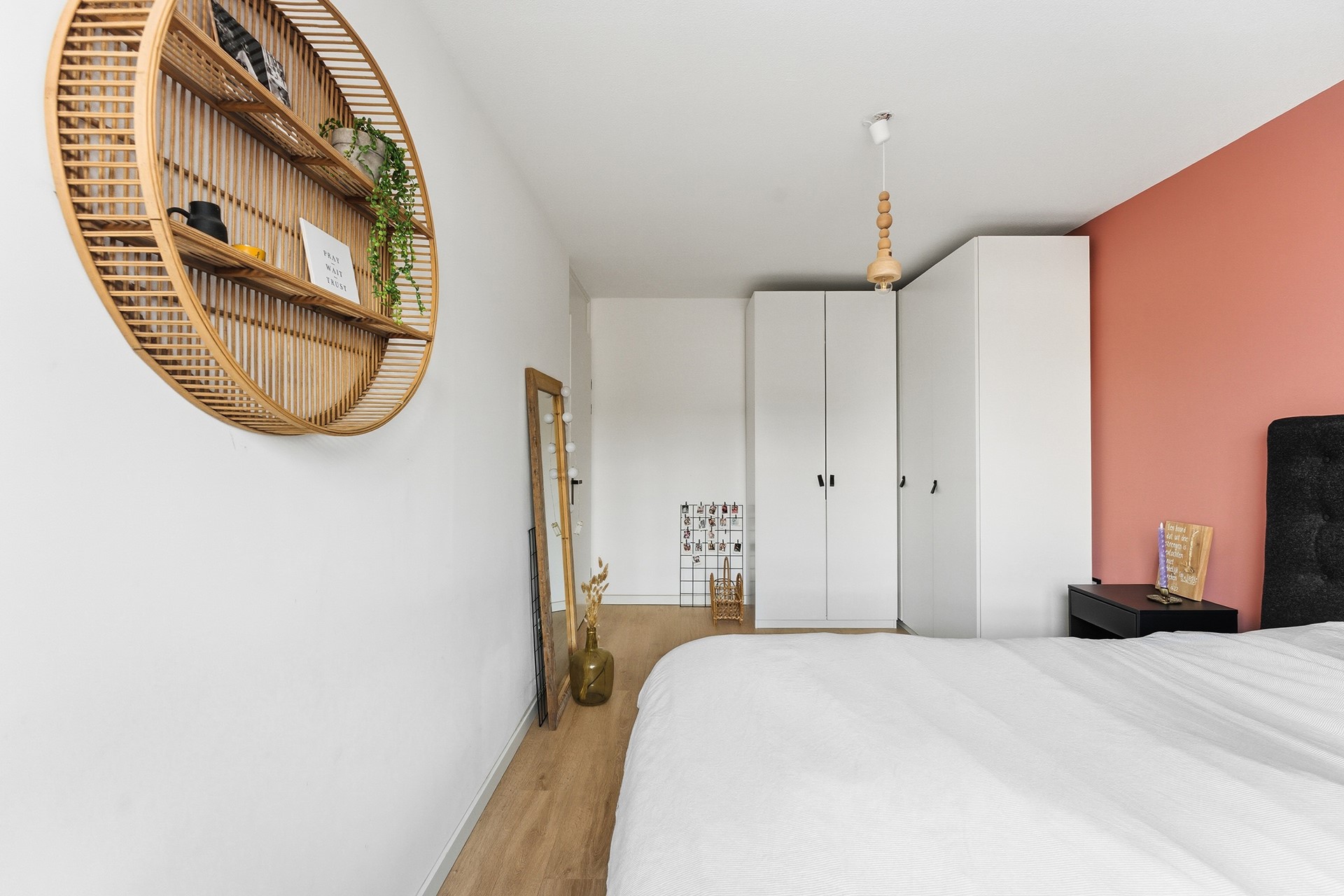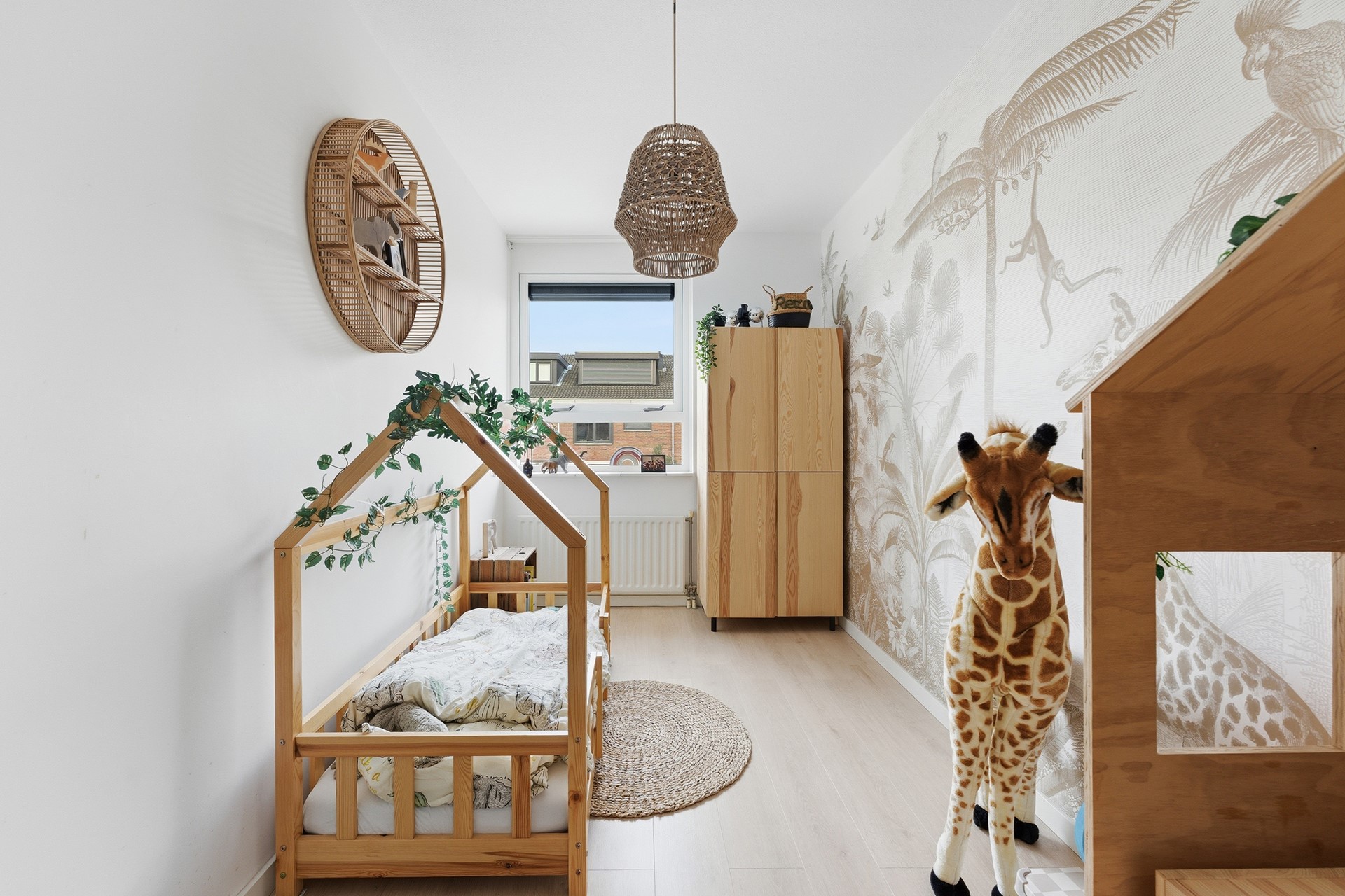 Slaapkamer 1: Deze slaapkamer is voorzien van een groot raam, waardoor er veel licht naar binnen valt. Het rolluik zorgt ervoor dat de kamer goed kan worden verduisterd. Dit maakt de ruimte zeer geschikt als kinderkamer, met voldoende plek voor een bed, bureau en eventueel een speelhoek. De kamer is afgewerkt met behangwanden en een spuitwerkplafond.