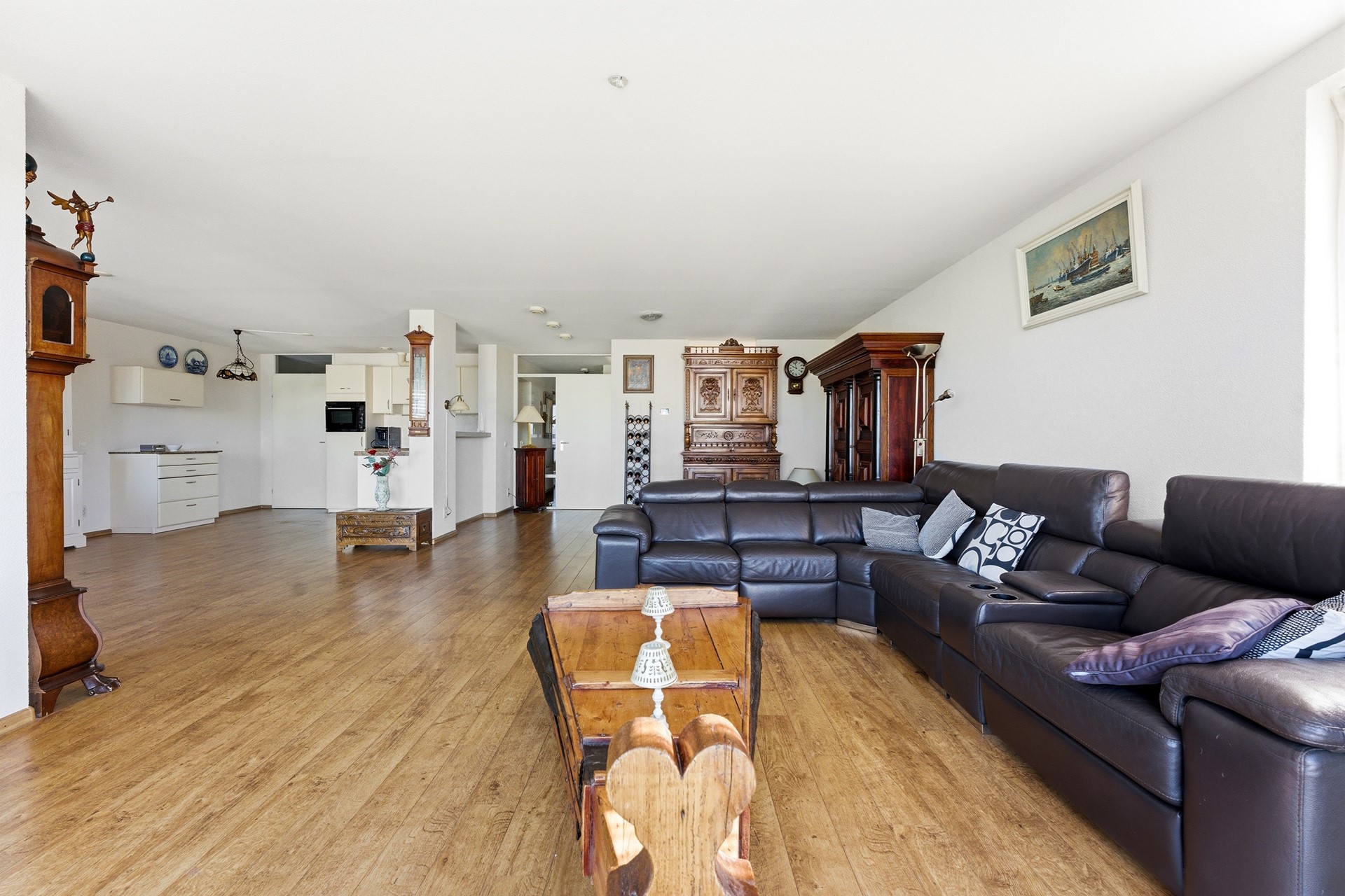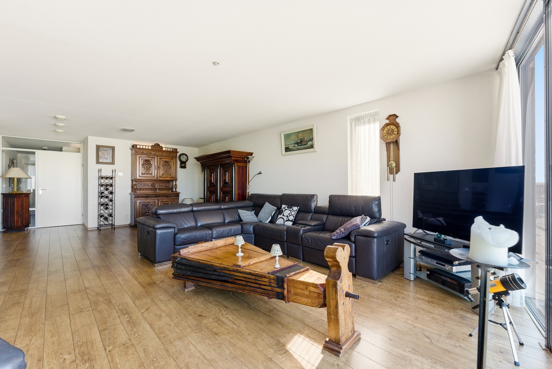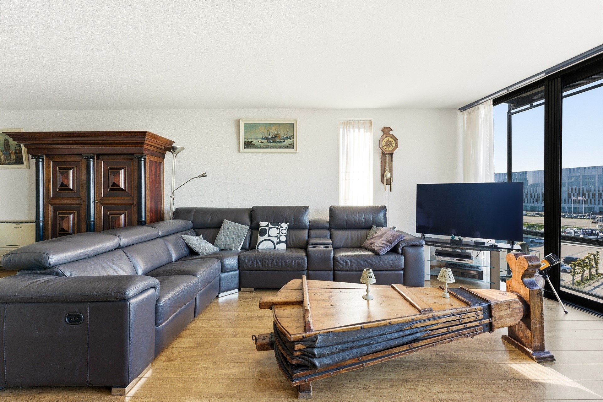 Woonkamer: Welkom in deze bijzonder royale leefruimte. Door de vele ramen rondom is de kamer zeer licht en biedt deze u een fantastisch uitzicht over de haven en de iconische jachtbouw van Oceanco. Of u nu aan de eettafel zit of in uw fauteuil ontspant, het uitzicht blijft boeien. Voor extra comfort tijdens warme dagen is de woonkamer uitgerust met airconditioning. De schuifpui geeft toegang tot de loggia.