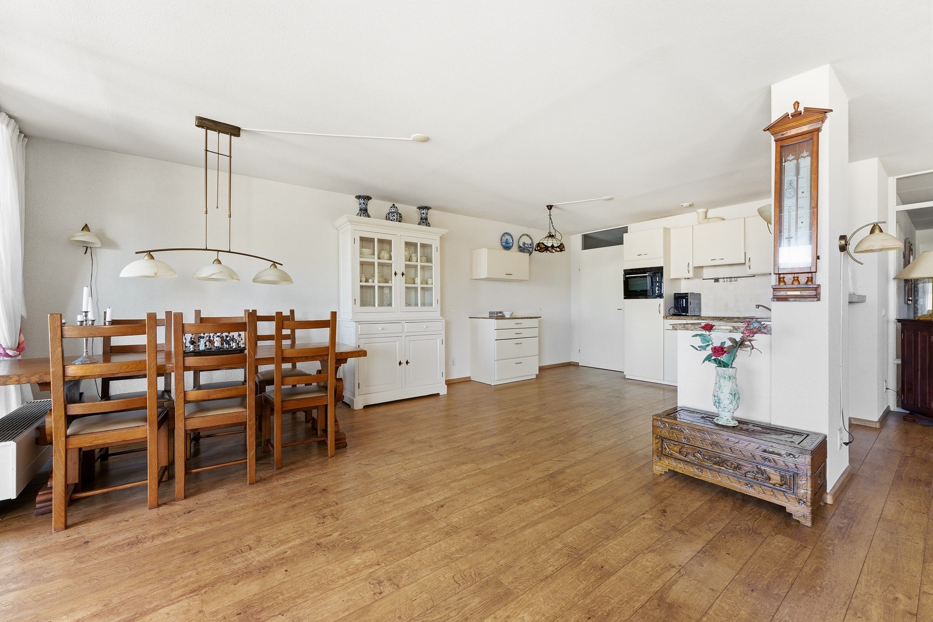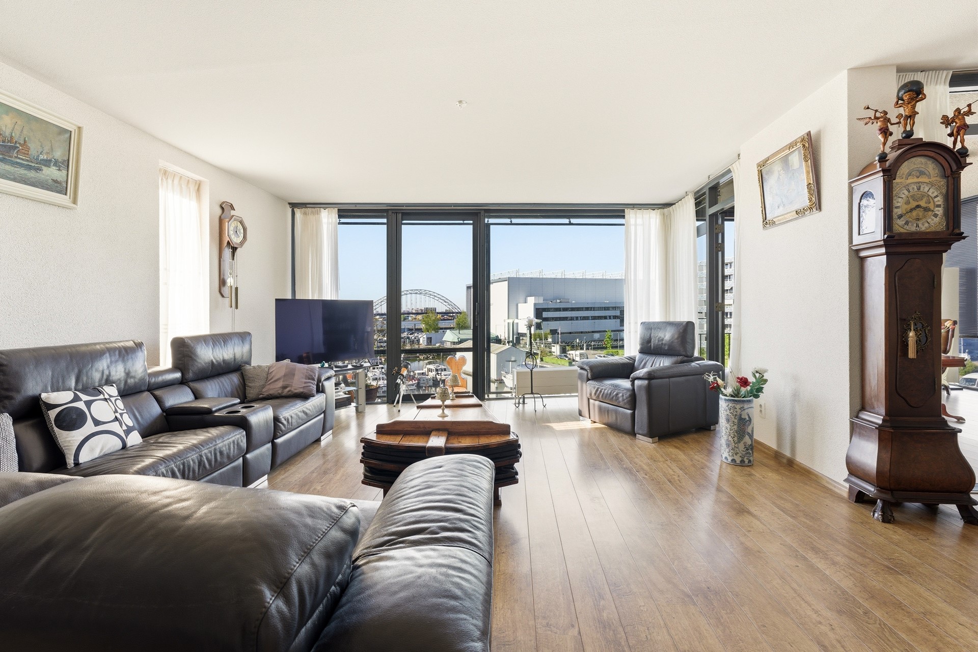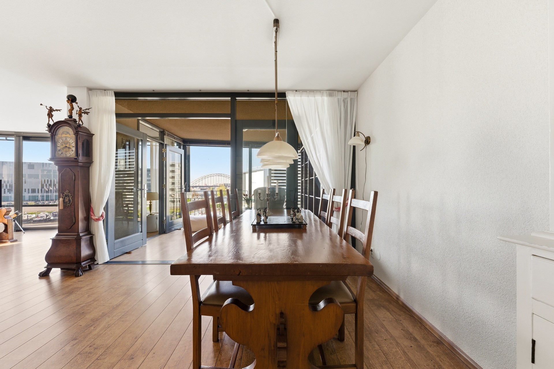 Woonkamer: Welkom in deze bijzonder royale leefruimte. Door de vele ramen rondom is de kamer zeer licht en biedt deze u een fantastisch uitzicht over de haven en de iconische jachtbouw van Oceanco. Of u nu aan de eettafel zit of in uw fauteuil ontspant, het uitzicht blijft boeien. Voor extra comfort tijdens warme dagen is de woonkamer uitgerust met airconditioning. De schuifpui geeft toegang tot de loggia.