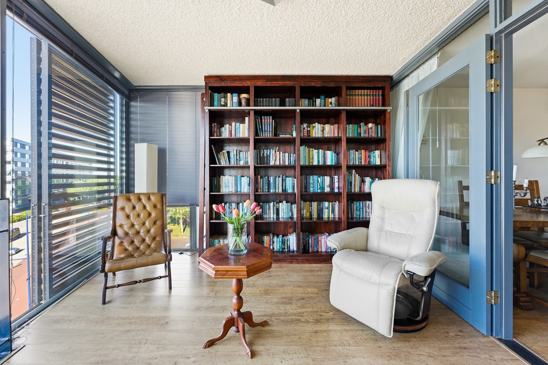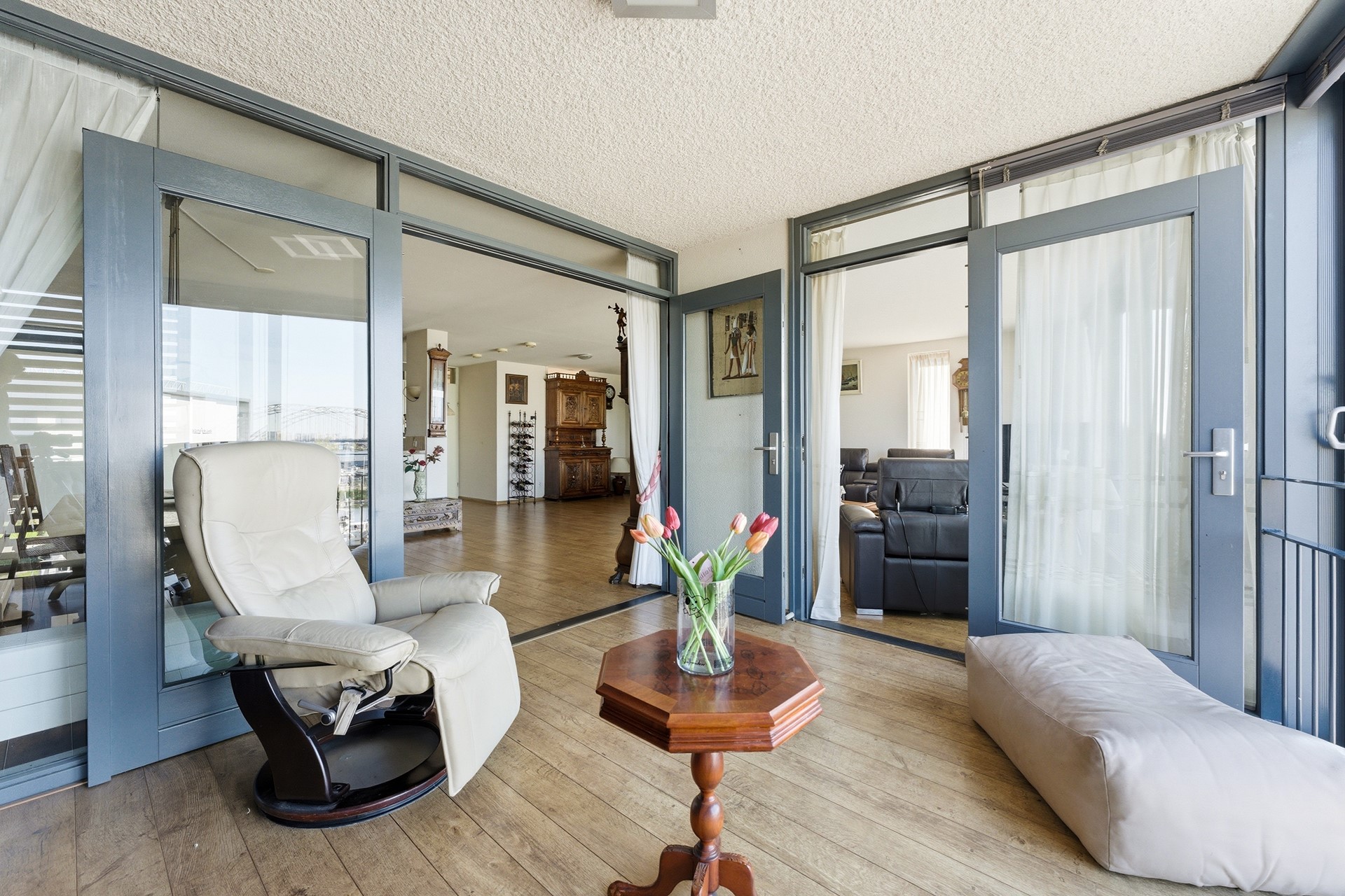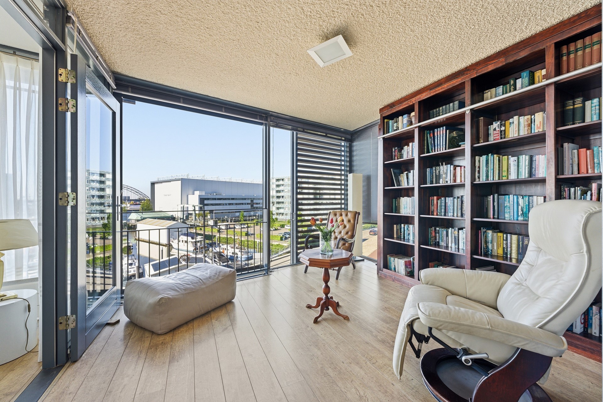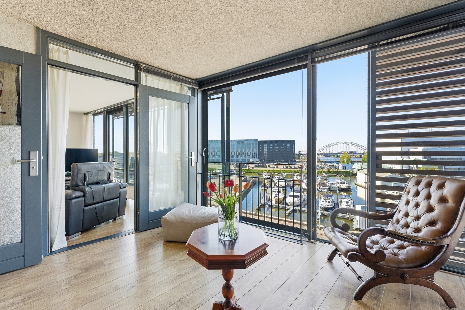 Loggia: Via de schuifpui in de woonkamer stapt u de loggia op. Deze inpandige buitenruimte is een absolute meerwaarde van het appartement. Doordat de loggia beschut is gelegen, kunt u hier al vanaf het vroege voorjaar heerlijk buiten zitten, ongeacht de wind. Het is de ideale plek voor een kopje koffie in de ochtend of om in de middag rustig een boek te lezen, terwijl u geniet van het levendige schouwspel in de haven. Dankzij de glazen pui behoudt u ook vanuit hier het contact met de omgeving, maar geniet u wel van volledige privacy en comfort.