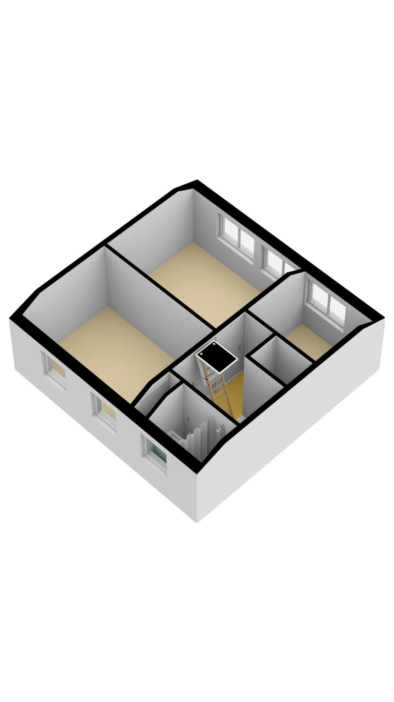 Vliering: Grote bergzolder met opstelplaats voor de Cv-ketel en ruimte voor opslag, bereikbaar middels een losse trap.