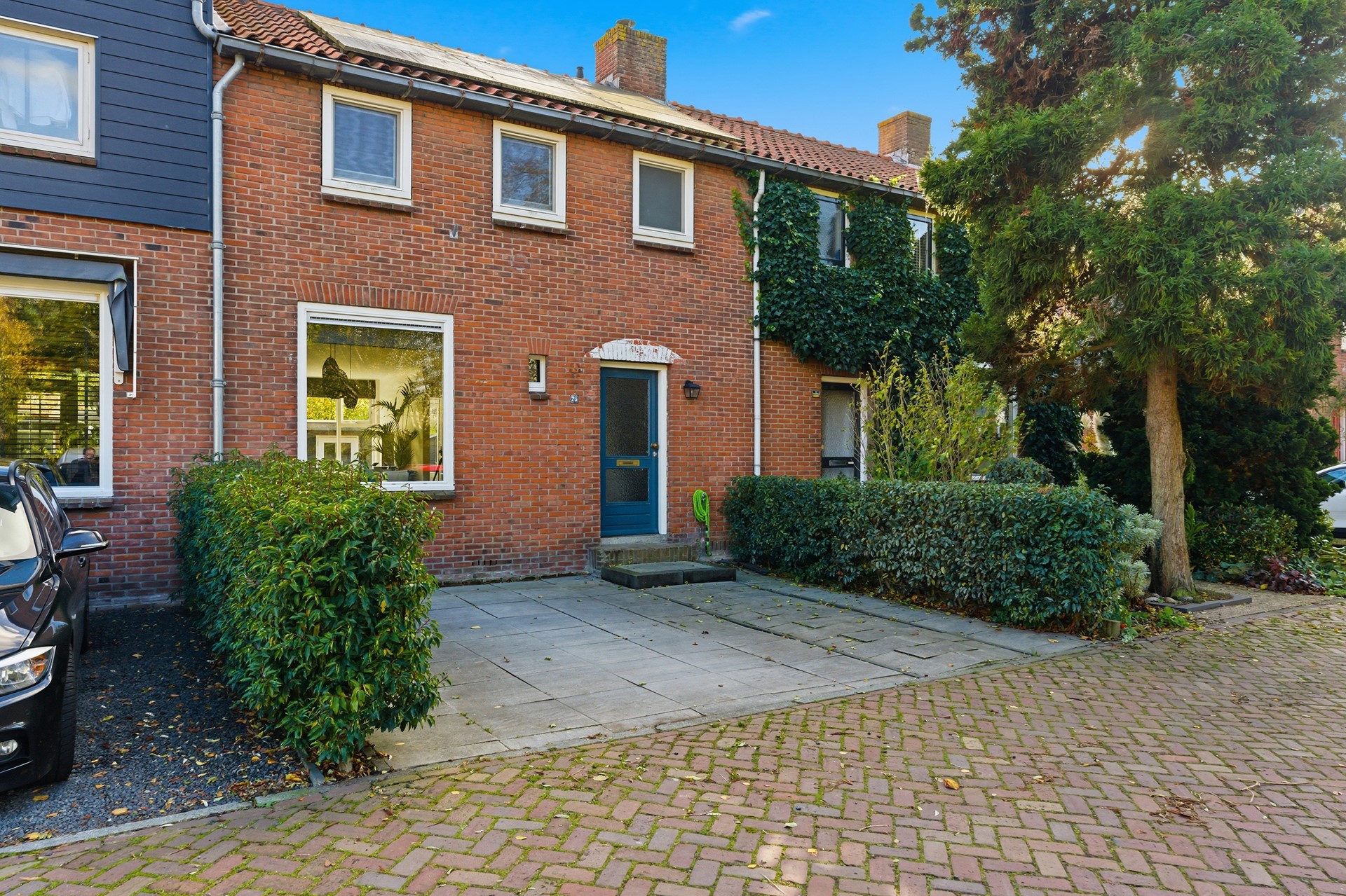 Voortuin: De voortuin (ca. 5,18 x 5,95 m) ligt op het noordwesten en is betegeld, waardoor deze onderhoudsvriendelijk is. Er is een wateraansluiting aanwezig en er is voldoende ruimte om de auto te parkeren op eigen terrein.