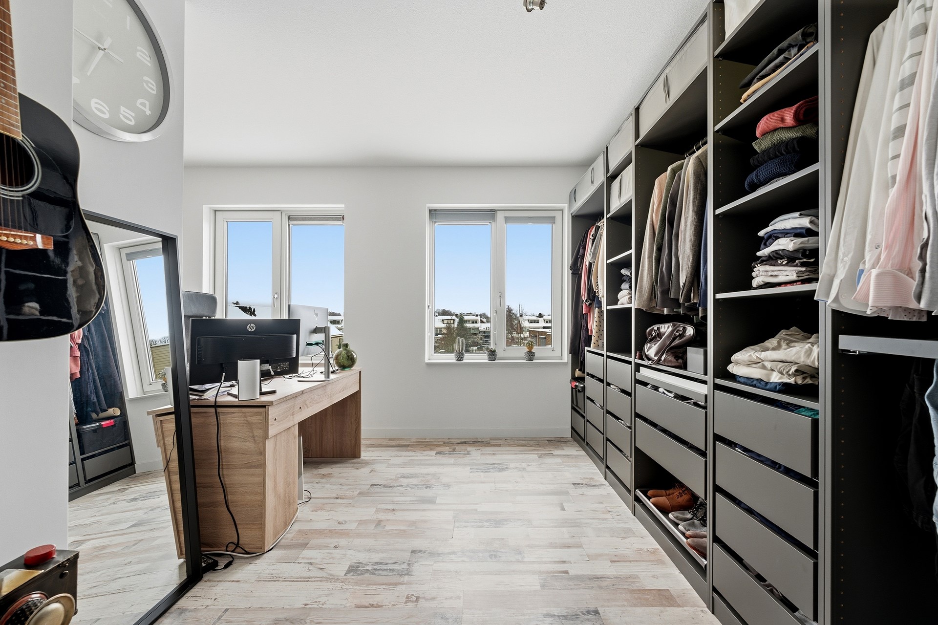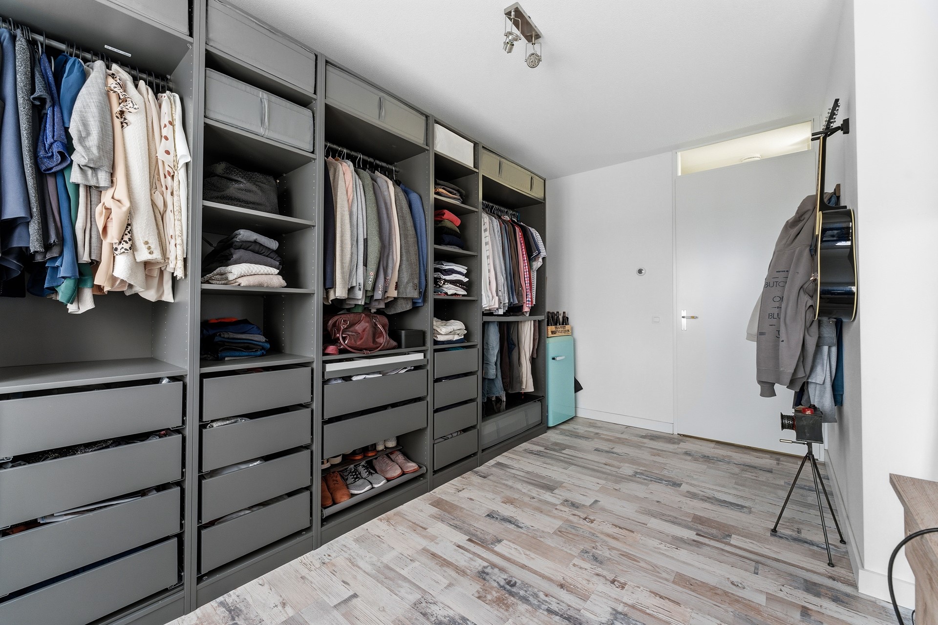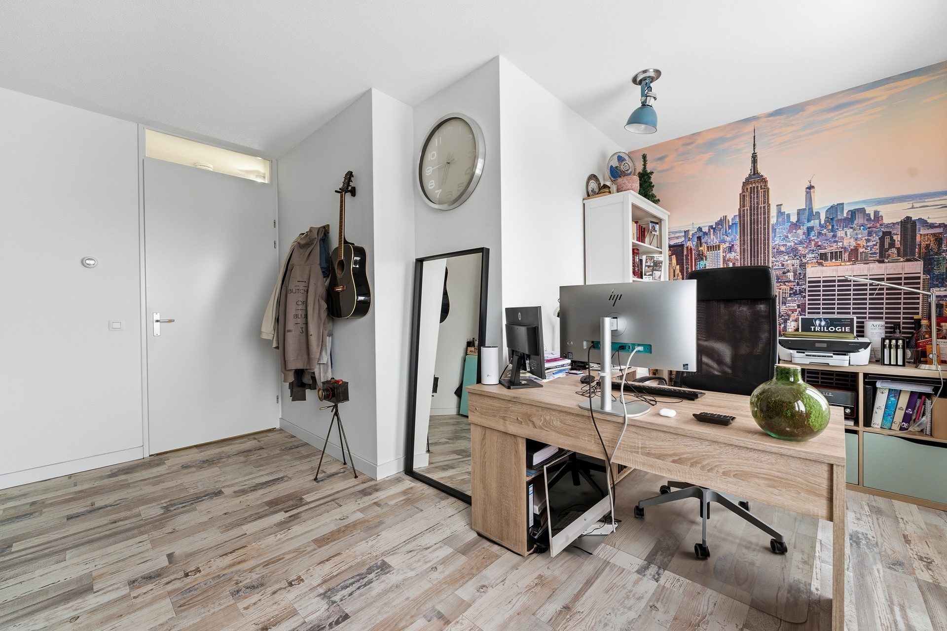 Slaapkamer 1: Deze ruime slaapkamer aan de achterzijde wordt momenteel gebruikt als kastenkamer en werkkamer, maar biedt volop mogelijkheden om te veranderen in een royale master bedroom. Vanuit de kamer kijk je uit op de rustige achterzijde van de woning.