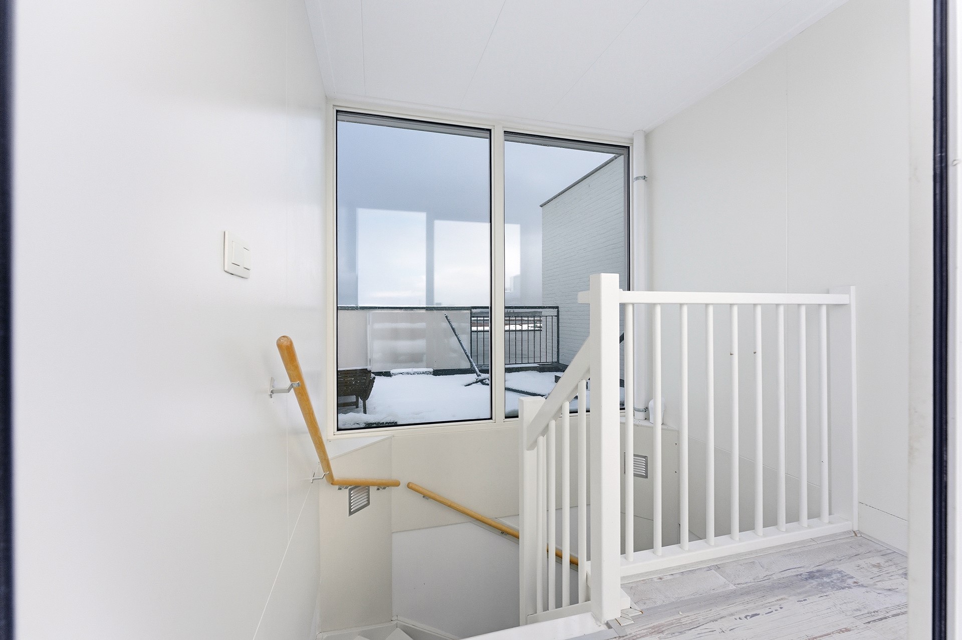 Overloop: Vanaf de overloop heb je toegang tot een slaapkamer, de badkamer en de technische ruimte. De verdieping is netjes afgewerkt met een laminaatvloer, gestuukte wanden en een spuitwerkplafond, waardoor het geheel een frisse en verzorgde uitstraling heeft.