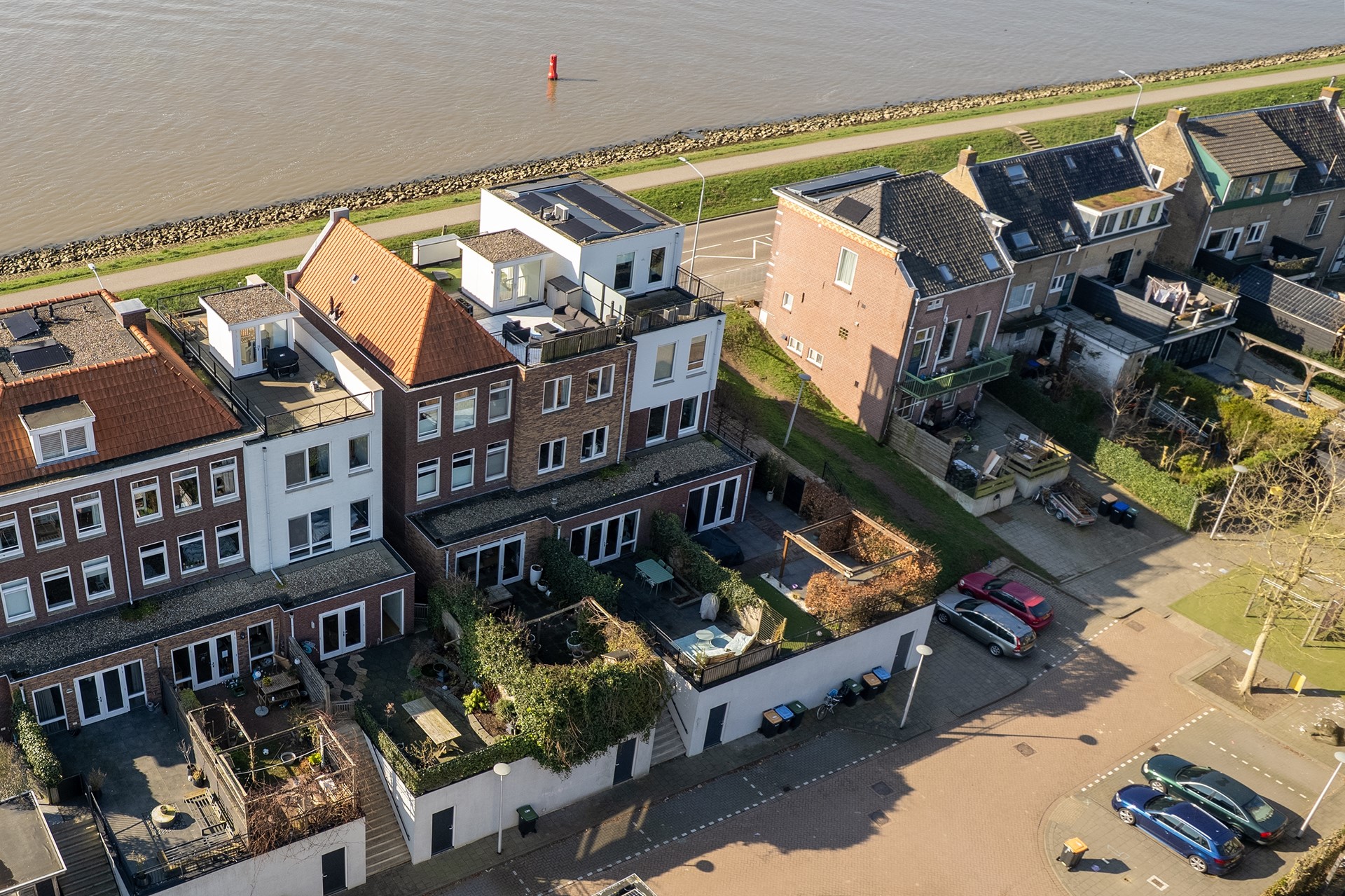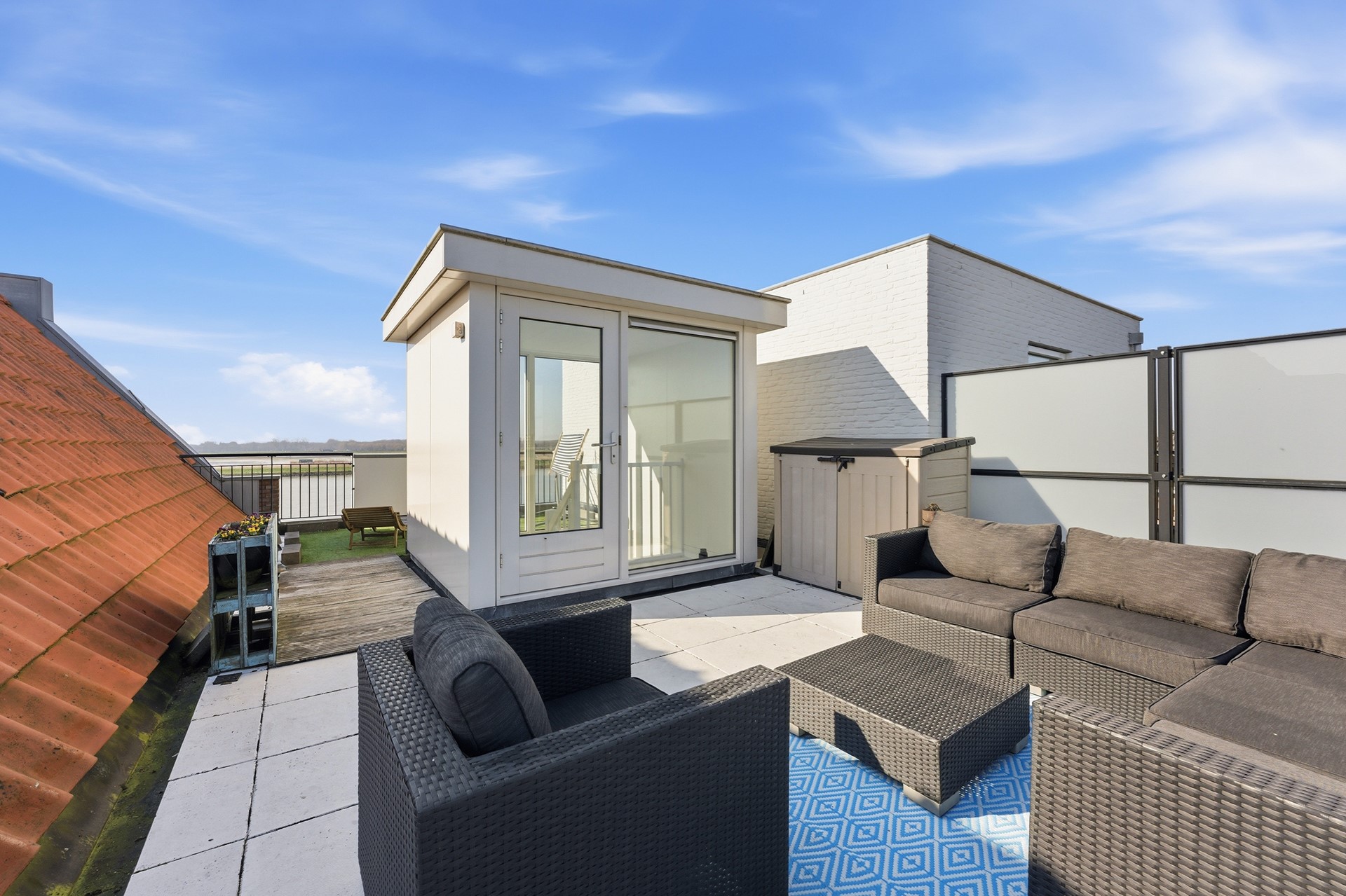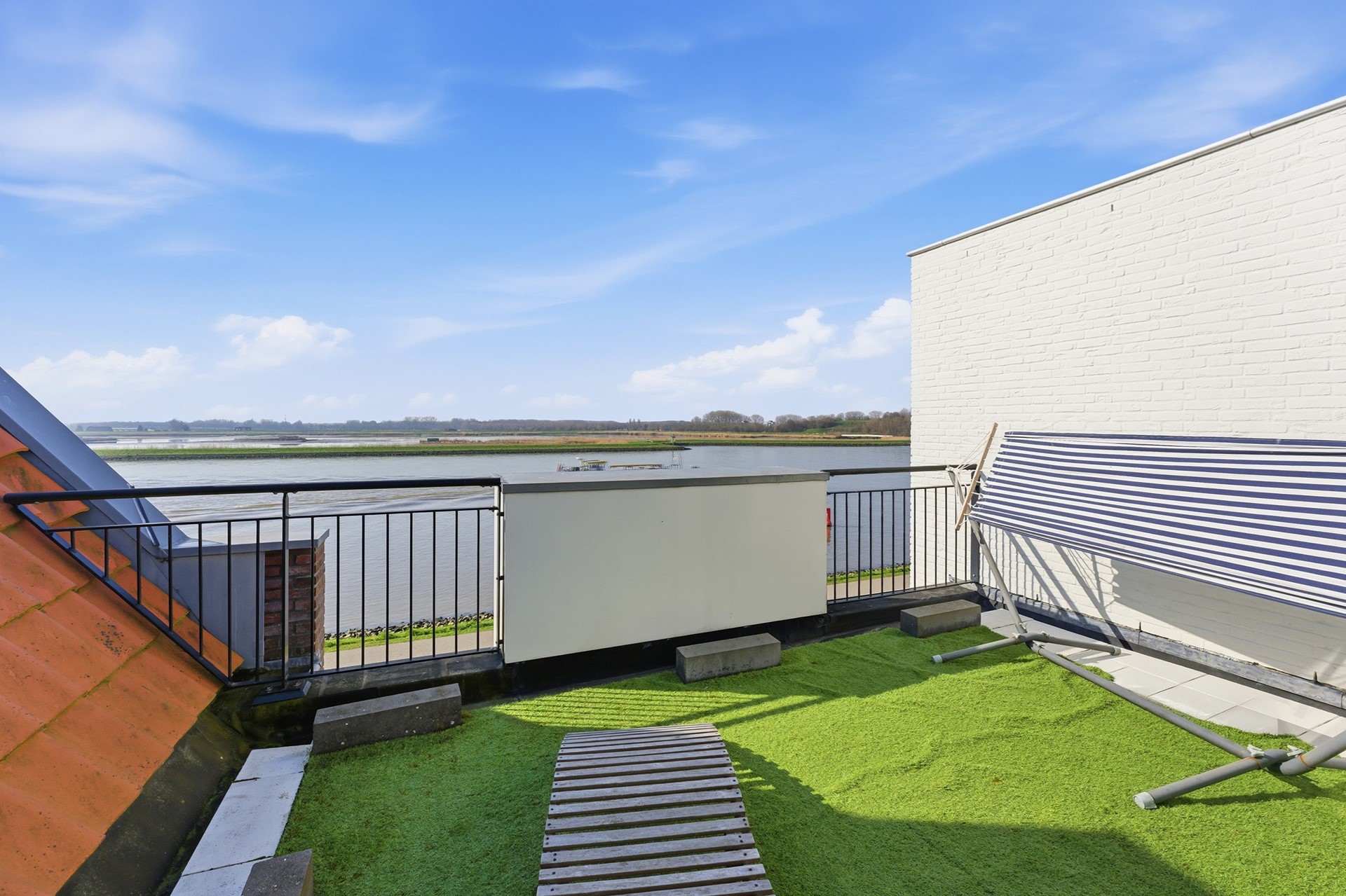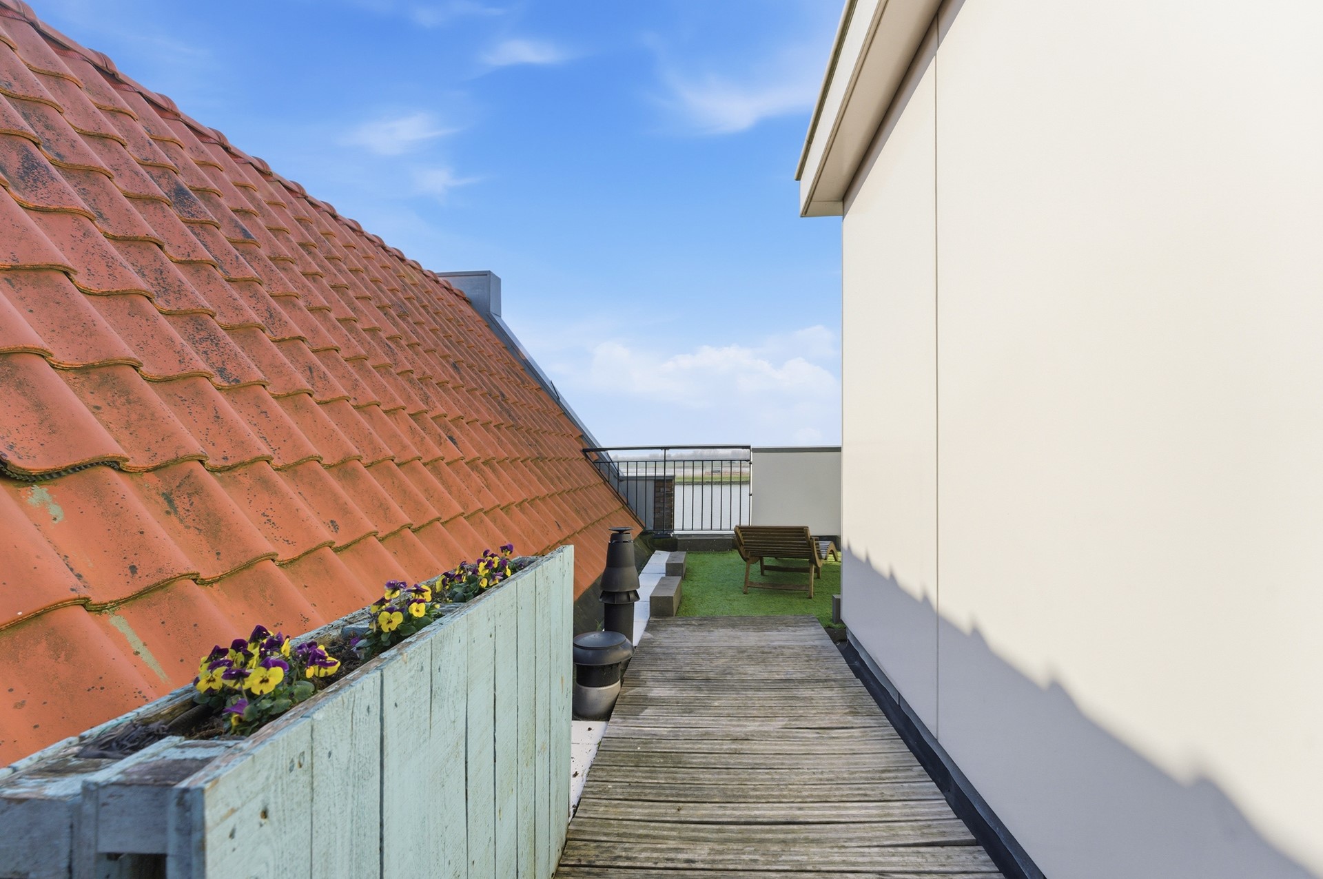 Op de derde verdieping heb je toegang tot dakterrassen aan zowel de voor- als achterzijde. Deze buitenruimtes bieden volop mogelijkheden om te genieten van zon of schaduw, terwijl je uitkijkt over de uitgestrekte Crezéepolder. Een heerlijke plek om even te ontspannen, een boek te lezen of te genieten van het buitenleven.