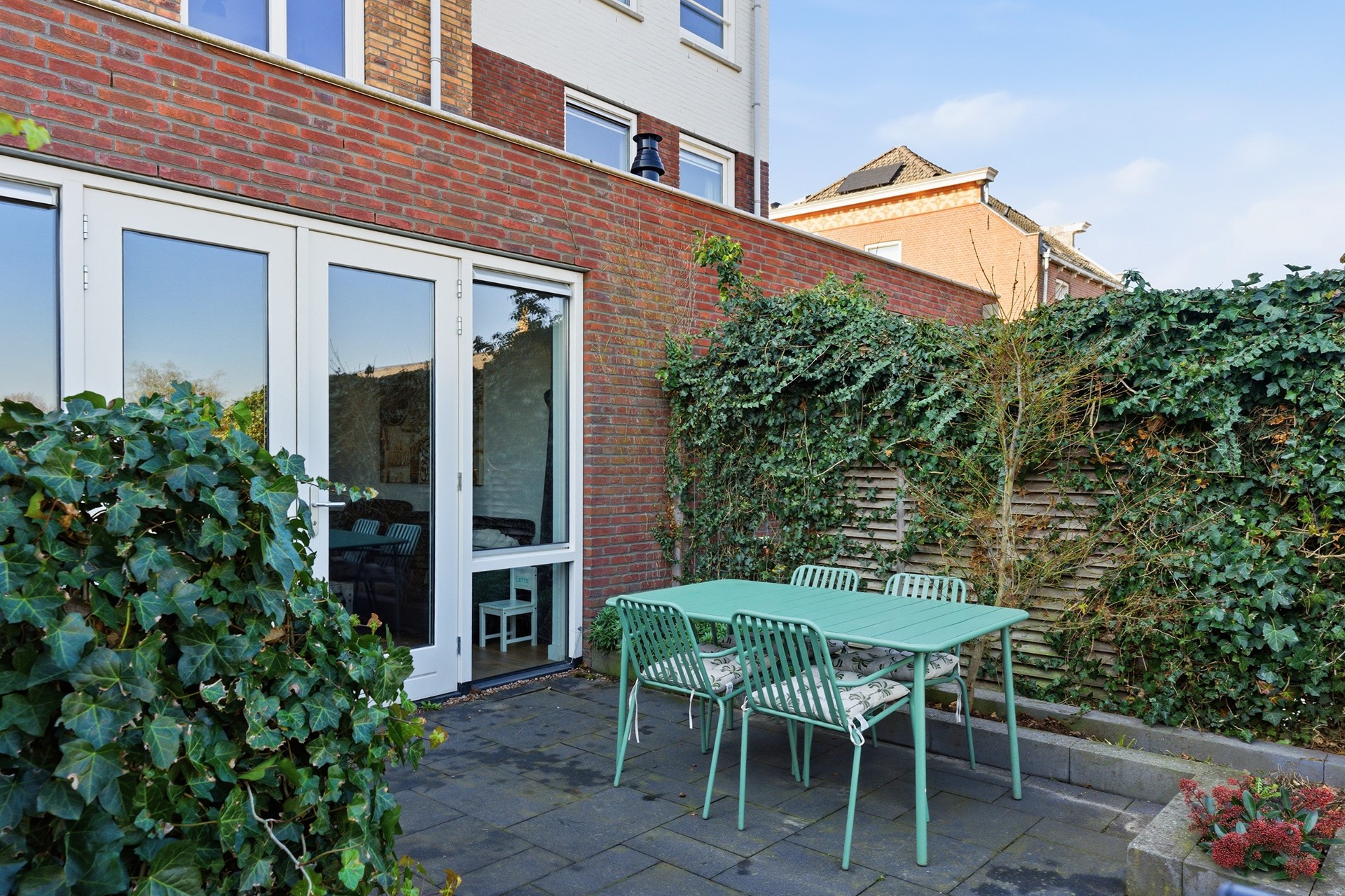 Tuin: De achtertuin, gelegen op het noordoosten, geniet heerlijk van het ochtendzonnetje. Vanuit de woonkamer loop je rechtstreeks de tuin in, waar je een ruime en sfeervolle buitenruimte vindt van ca. 8,10 x 5,00 meter. Er is volop plek om een gezellige loungeset of een eettafel met stoelen neer te zetten, ideaal voor ontspannen momenten, een ontbijt in de zon of gezellige borrels met vrienden en familie.