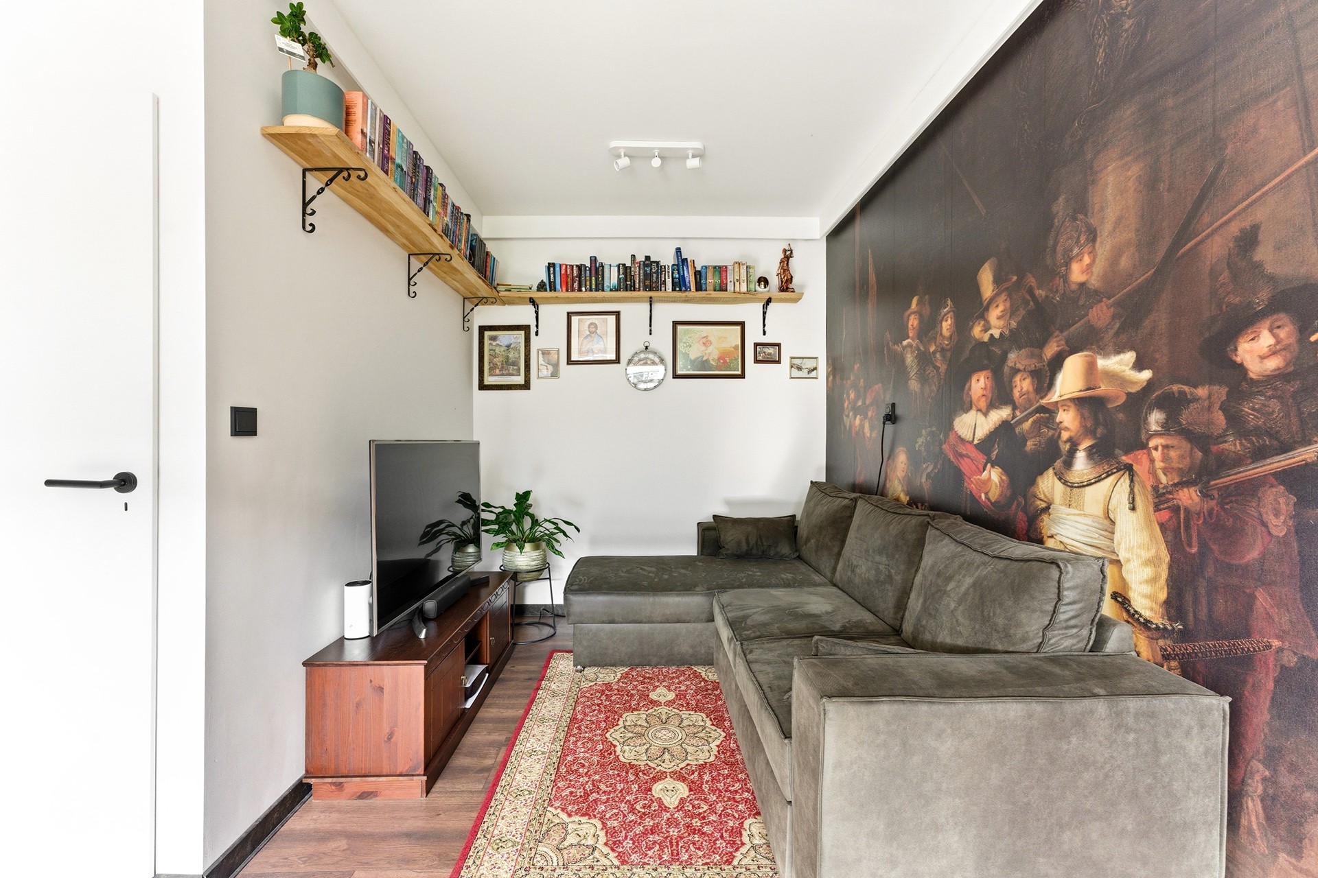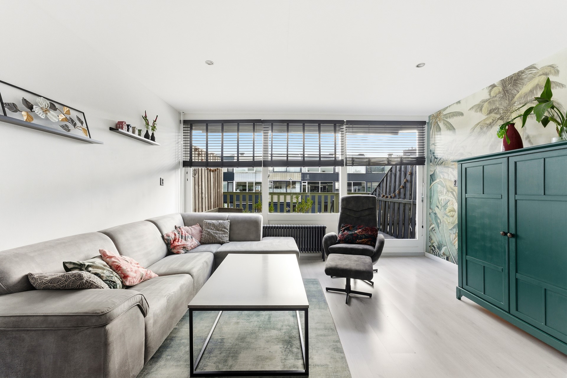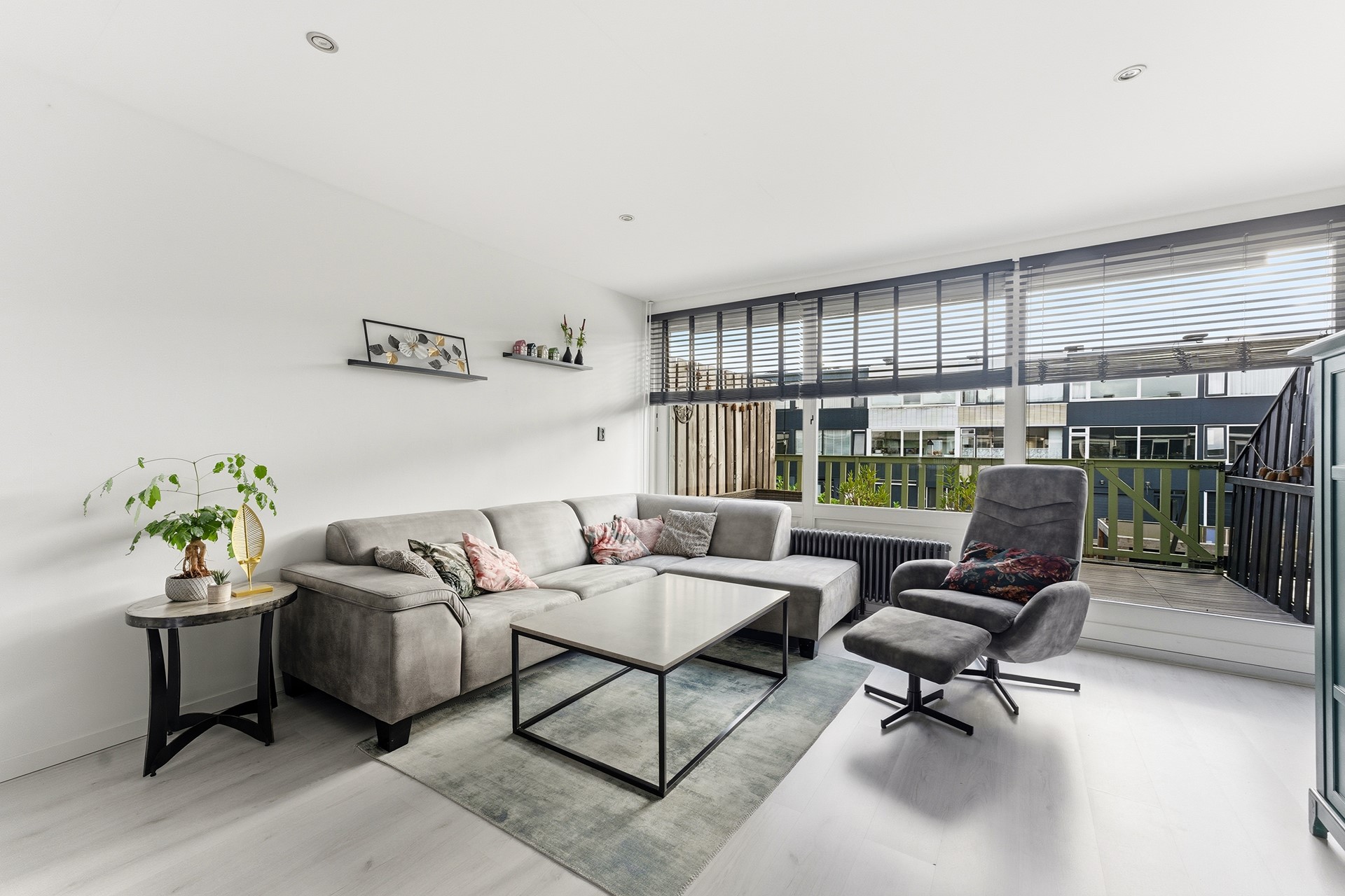 Woonkamer: De ruime woonkamer ligt op de eerste verdieping en biedt veel licht dankzij de grote schuifpui aan de achterzijde. Via deze schuifpui stap je het balkon op, met een trap die leidt naar de tuin. De woonkamer is verzorgd afgewerkt en beschikt over een praktische inbouwkast. De trap naar de tweede verdieping bevindt zich in de woonkamer. De afwerking bestaat uit laminaat, behang en glasvliesbehang, met een gips plafond.