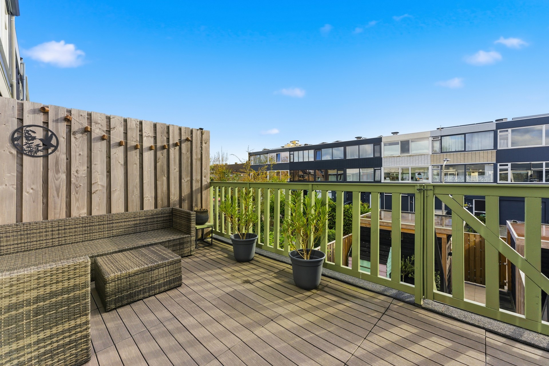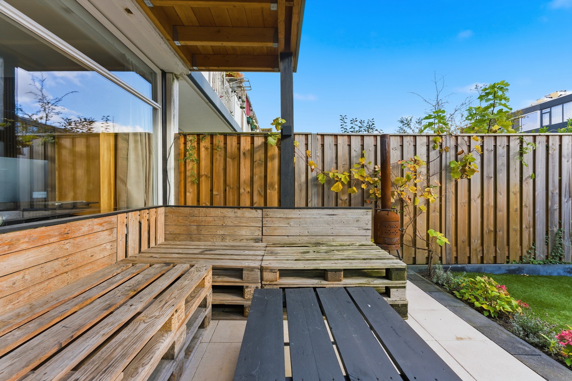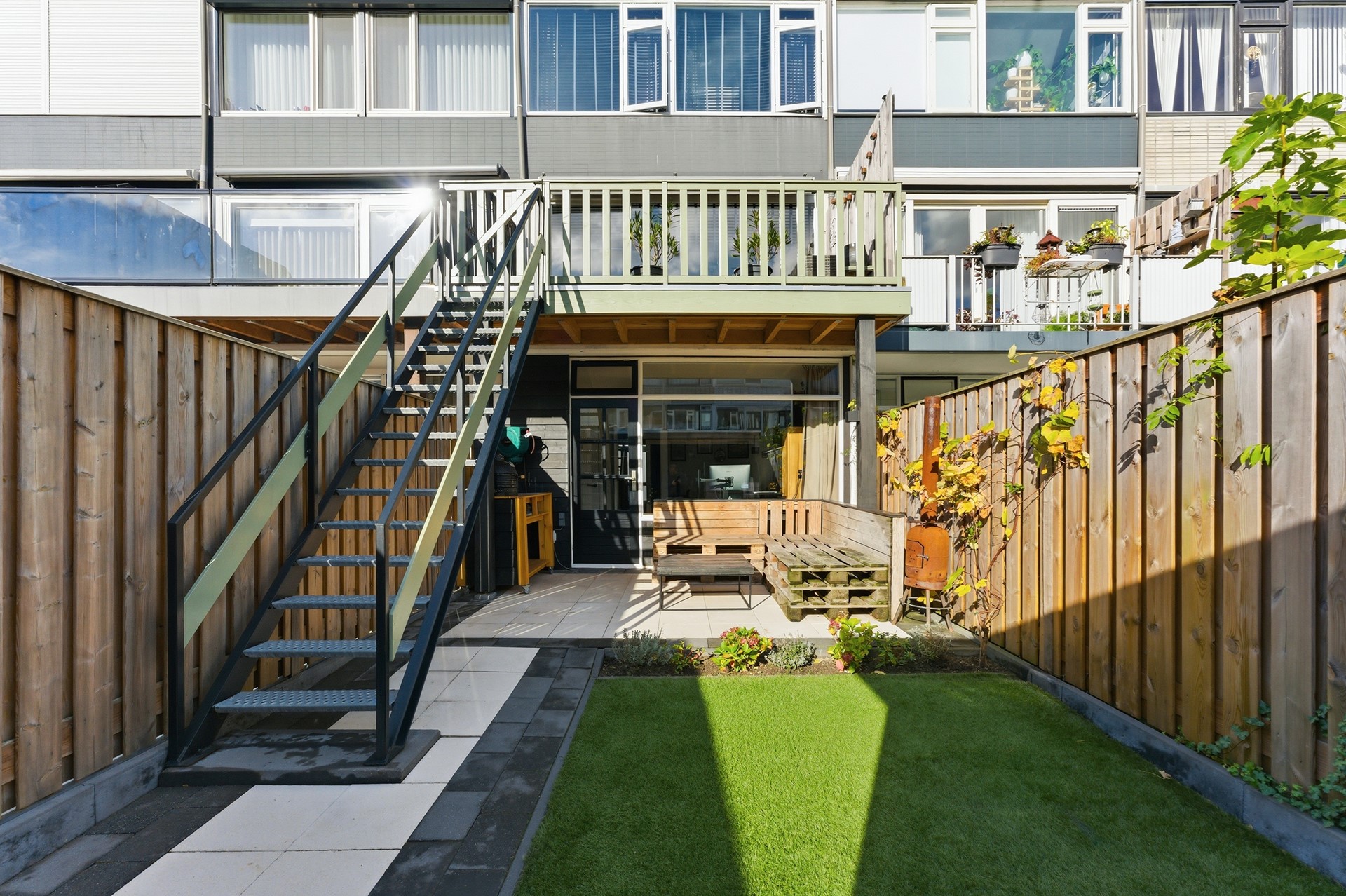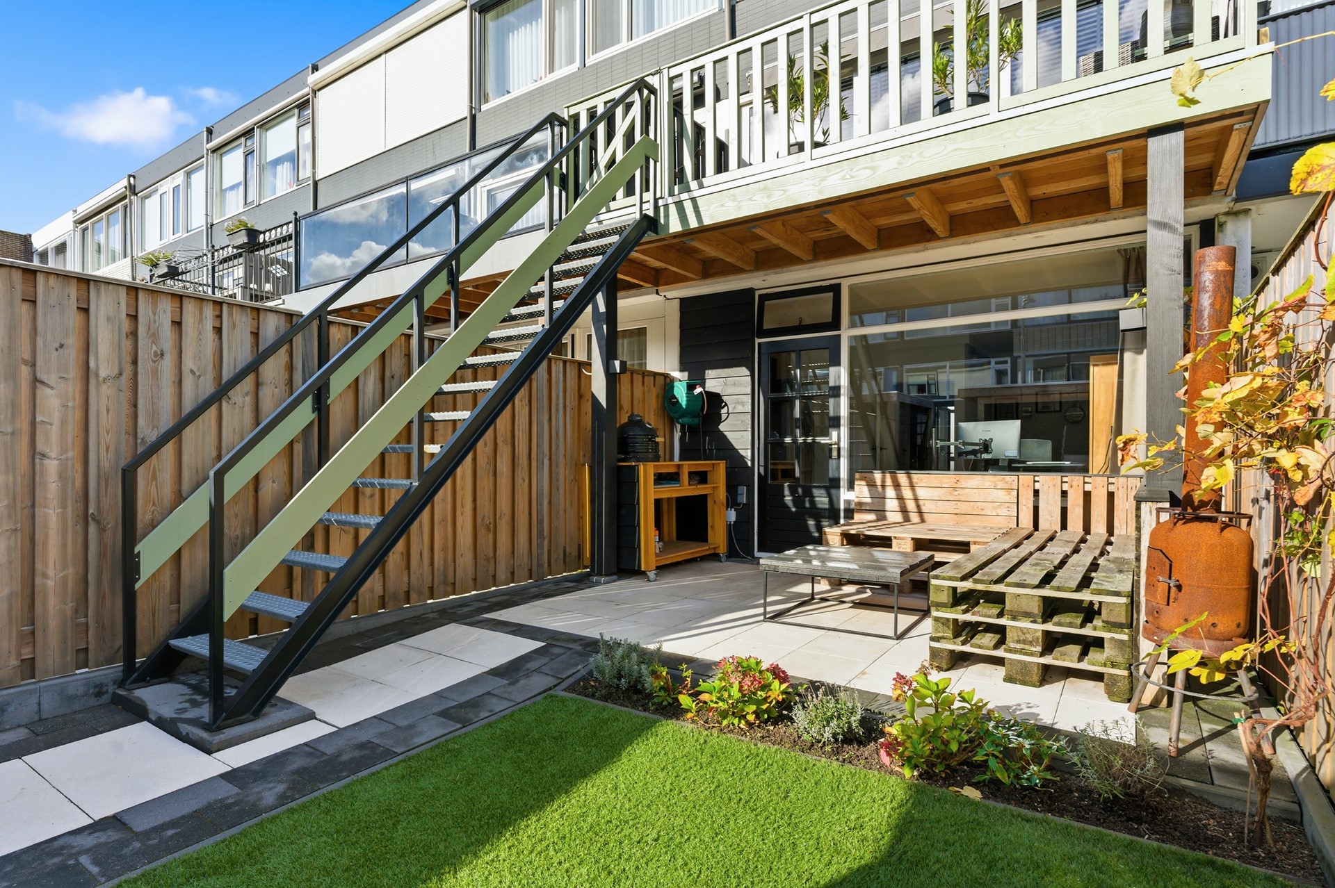 Achtertuin: De verzorgde achtertuin, met een diepte van ruim 11 meter en gelegen op het zuiden, biedt volop zon en ruimte. Er ligt een goed onderhouden gazon, er staat een keurige houten schuur en sfeervolle buitenverlichting maakt de tuin ook ’s avonds aantrekkelijk. Daarnaast is de tuin voorzien van zowel water als elektra aansluiting. Vanuit de tuin is direct toegang tot de multifunctionele ruimte en via een trap bereik je het balkon/terras bij de woonkamer.