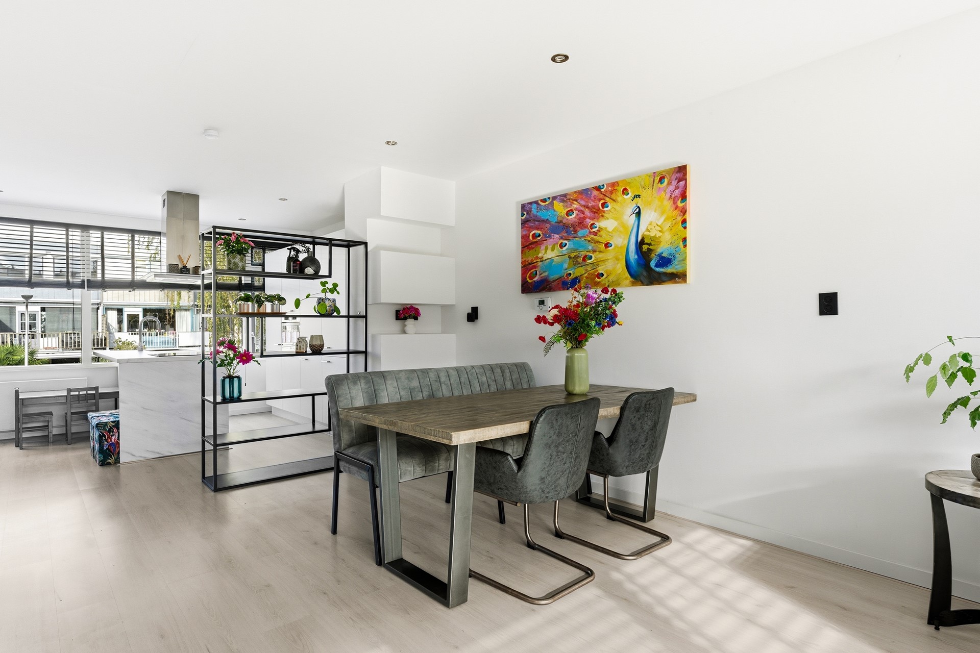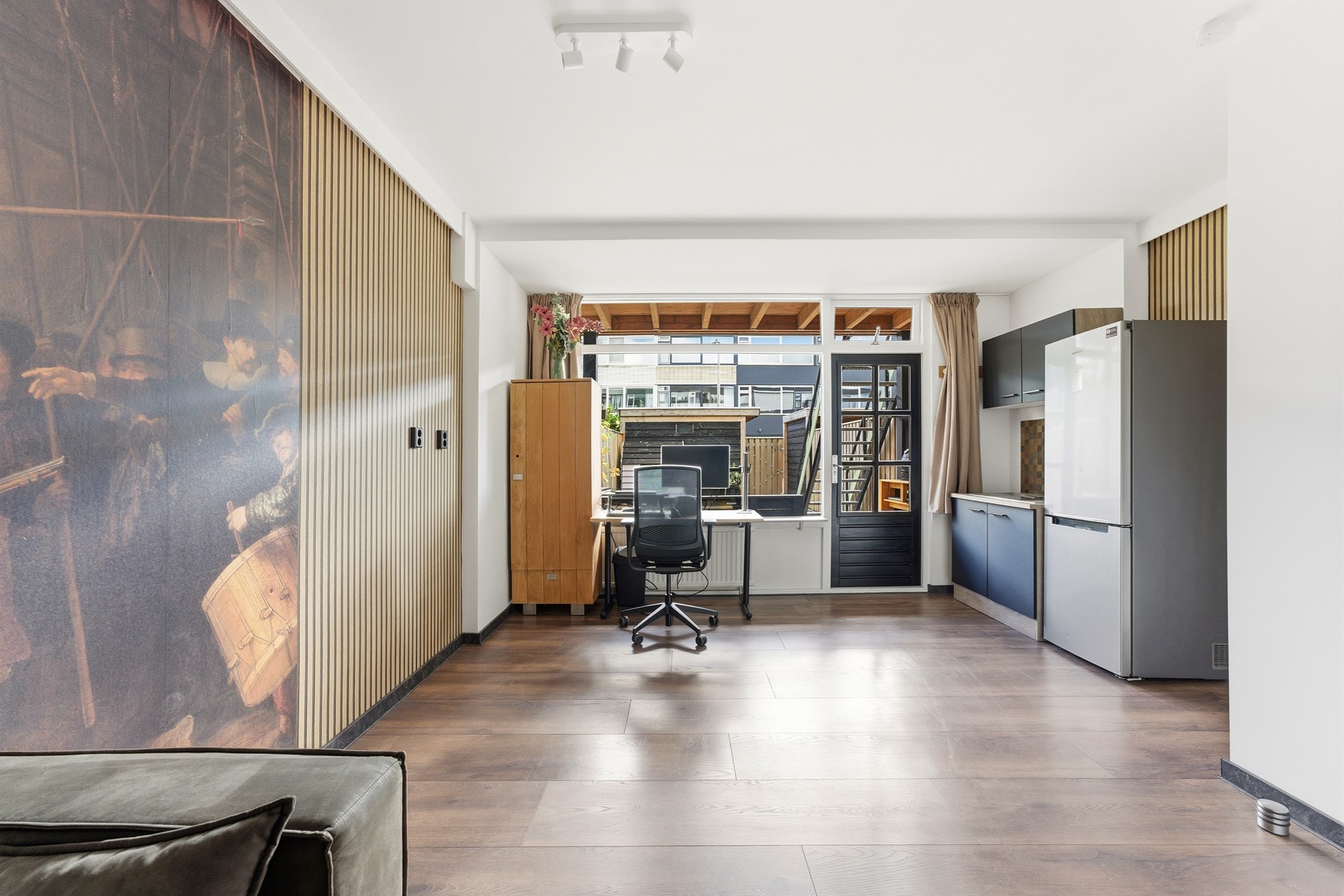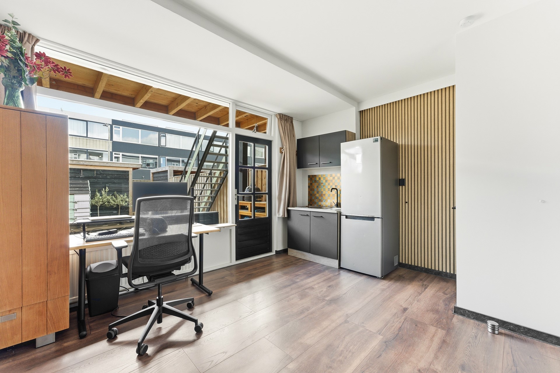 Multifunctionele ruimte: Een heerlijke extra ruimte aan de achterzijde van de woning, recent (2024) gerealiseerd. Hier is ook een keukenblok aanwezig en een doucheruimte, wat deze ruimte multifunctioneel maakt. Maak er bijvoorbeeld een comfortabele slaapkamer van, ideaal voor gasten of een gezinslid dat graag beneden slaapt. Of kies juist voor een kantoor aan huis, een hobbyruimte of een stoere mancave waar je na een drukke dag even kunt ontspannen. Via een deur is er direct toegang tot de tuin. De afwerking is strak en modern, een nette laminaatvloer, houten akoestische panelen en een gestuukt plafond.