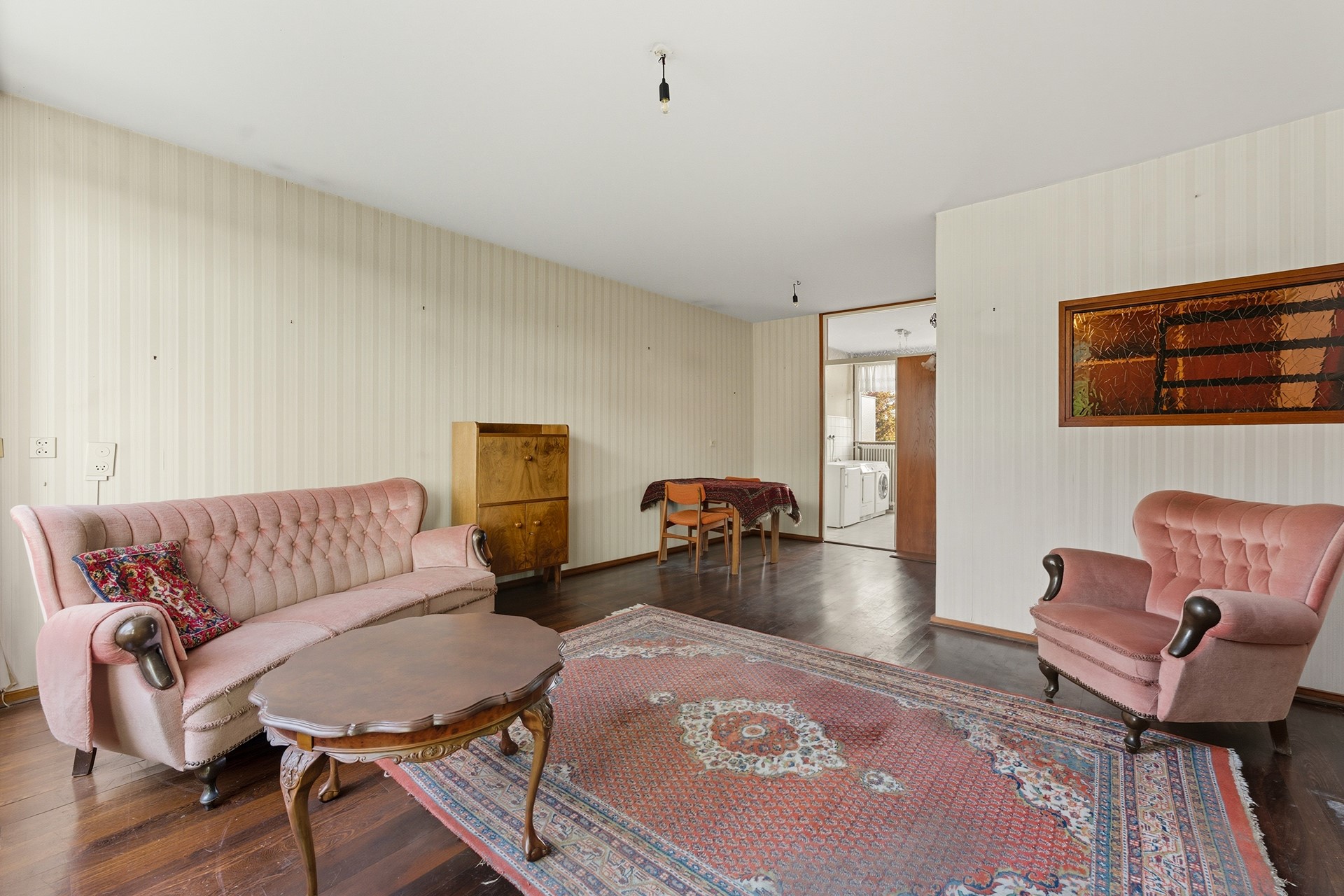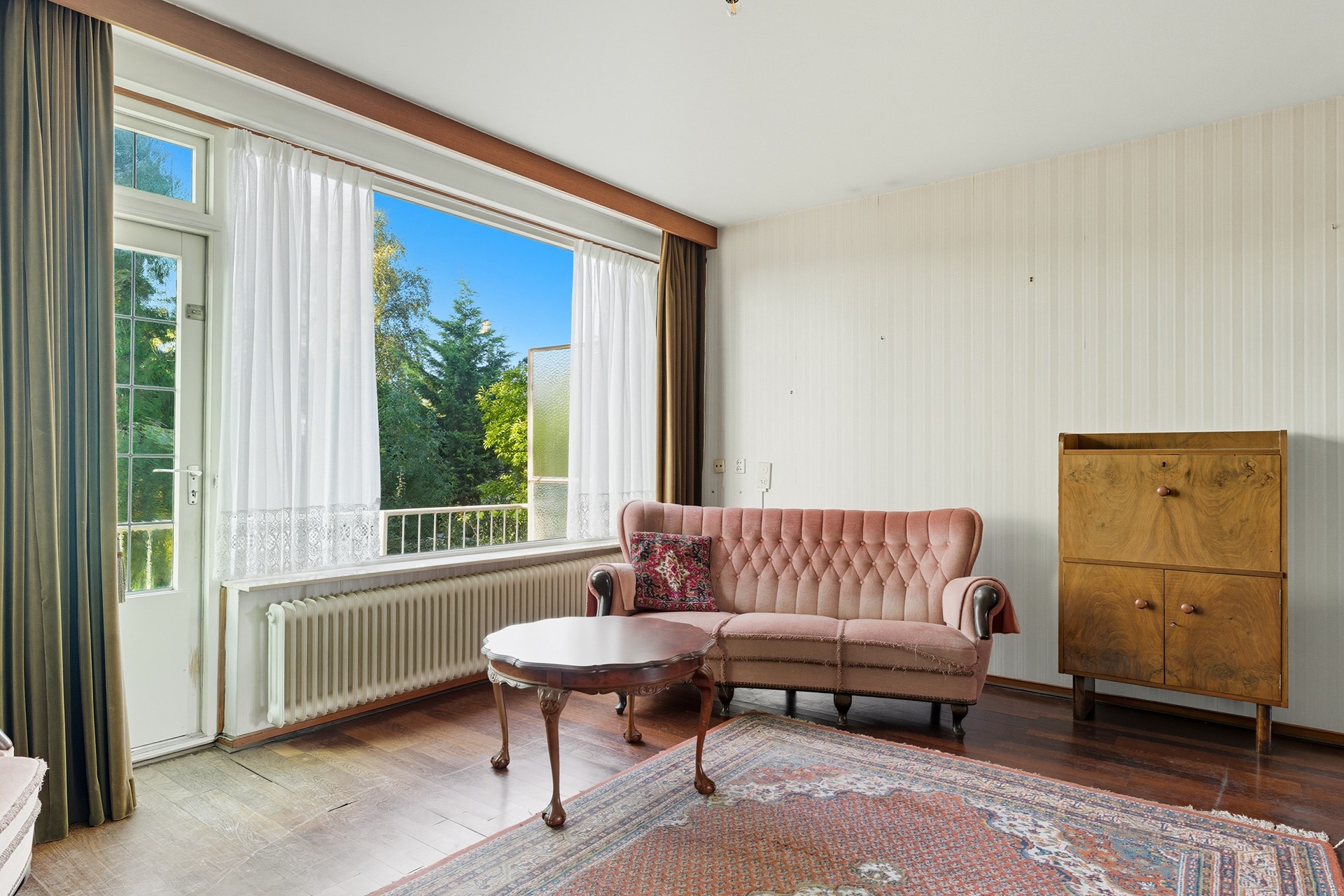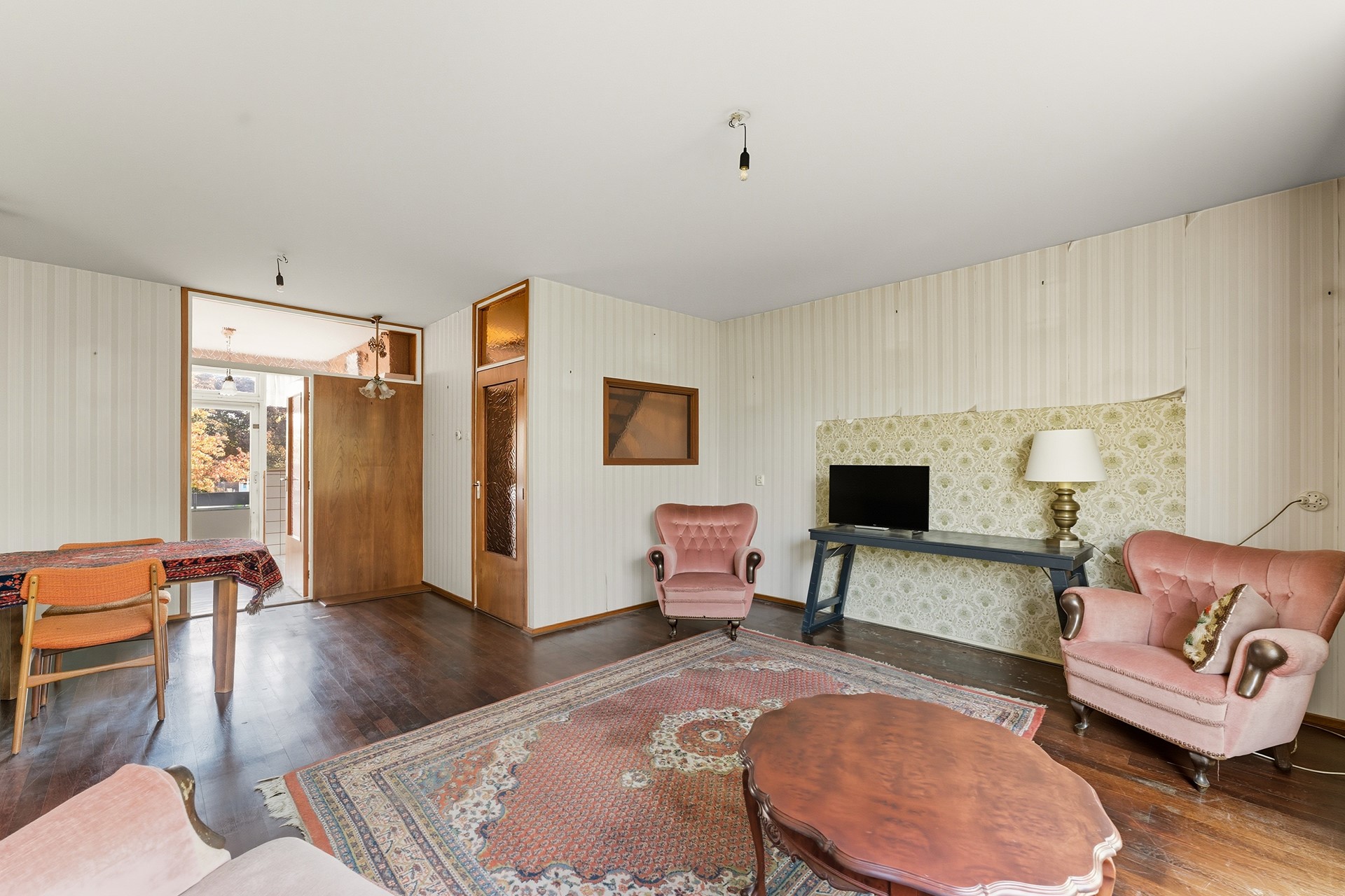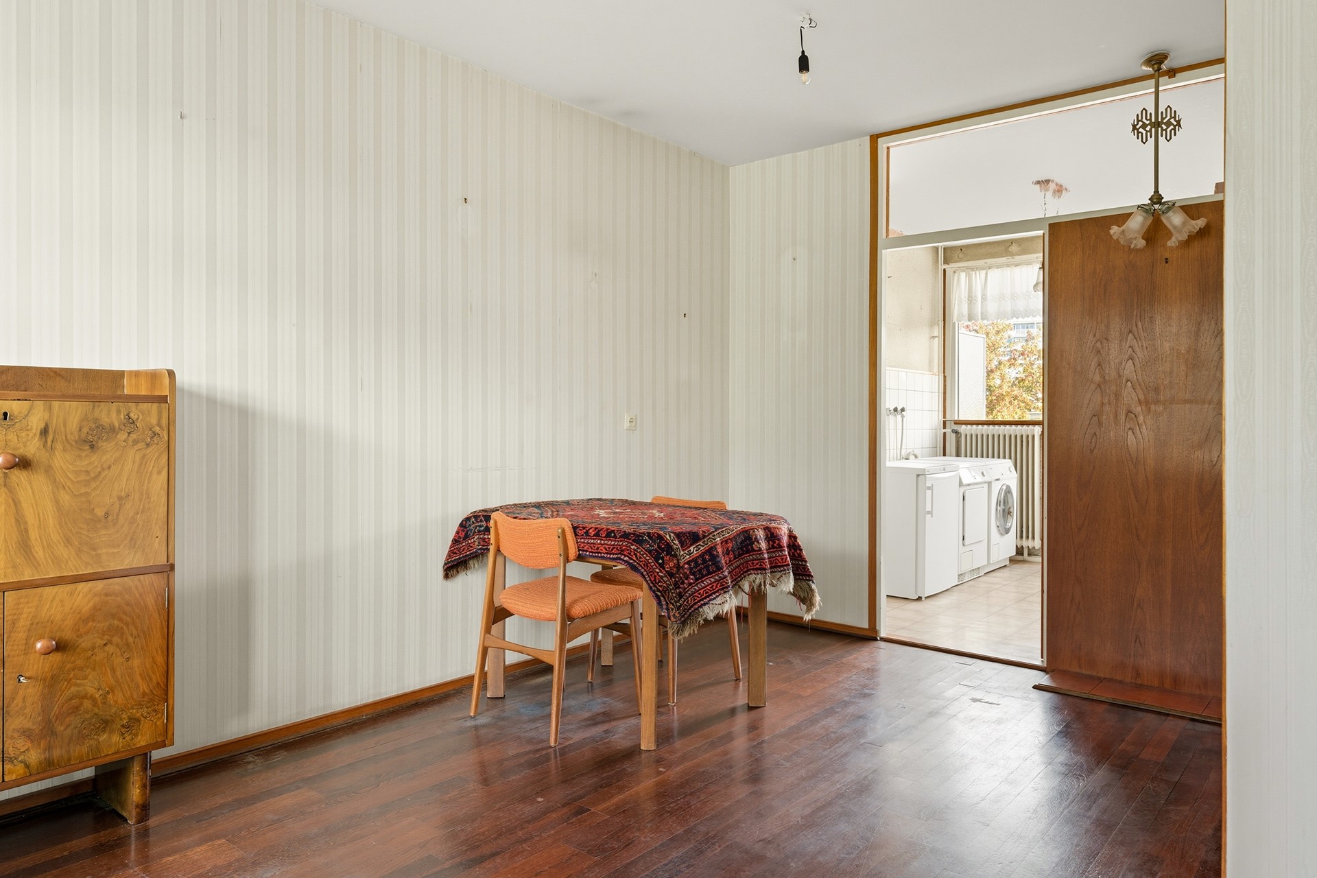Woonkamer: De doorzoonwoonkamer is ruim en heeft aan de voor- en achterzijde een balkon. De woonkamer heeft een fijn formaat met voldoende ruimte voor je zit- en eethoek. Wanden stuken, nieuwe vloer erin, plafond witten en je zit er weer fris bij. De kozijnen op deze verdieping zijn van hout, dus die moet je wel af en toe wel een likje verf geven. De ruimte is afgewerkt met een houten vloer, behangwanden en een gestuukt plafond.