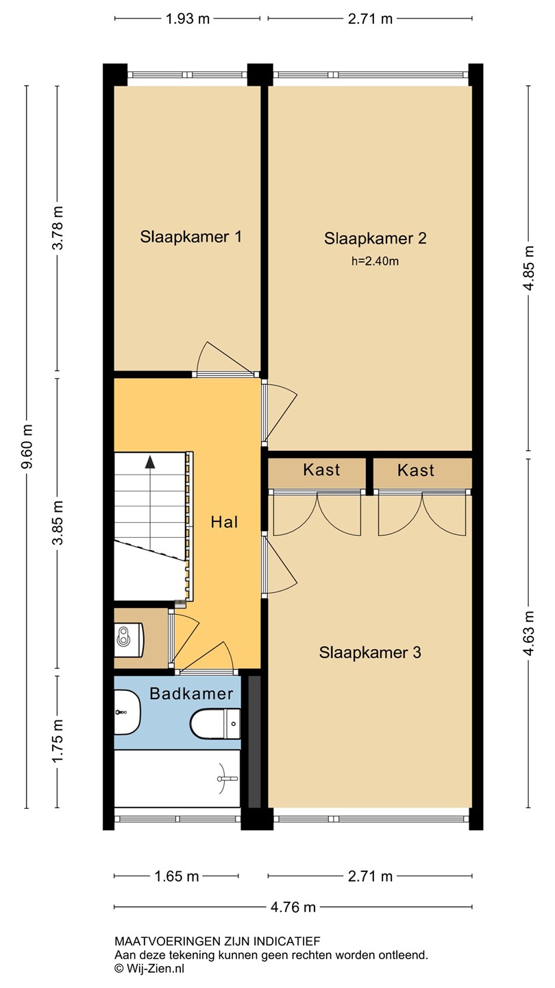 Slaapkamer 2: Slaapkamer twee is een grote slaapkamer aan de achterzijde van de woning en is voorzien van een rolluik. Het is de master bedroom van de woning en biedt veel ruimte en mogelijkheden om de indeling helemaal naar eigen wens te maken.