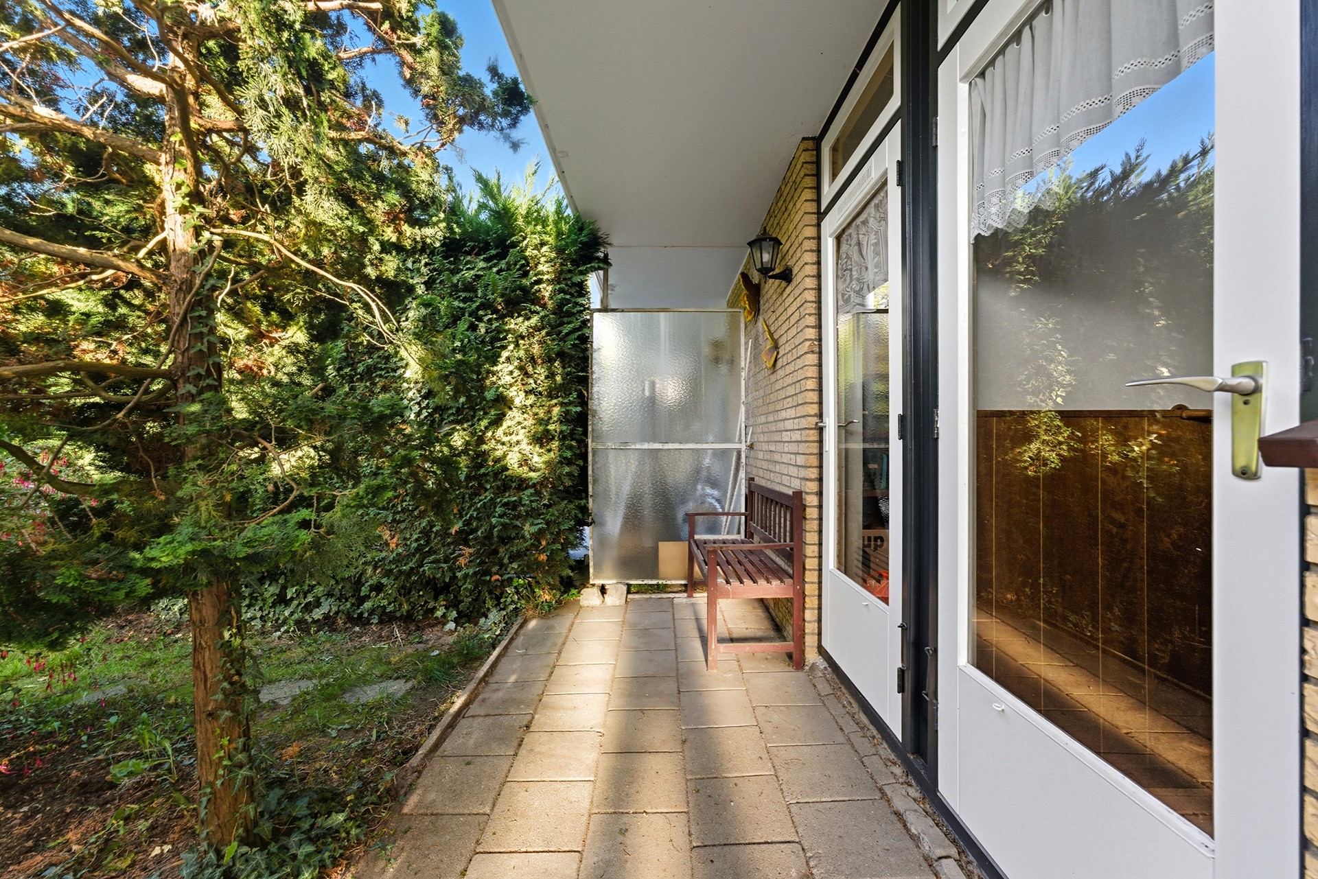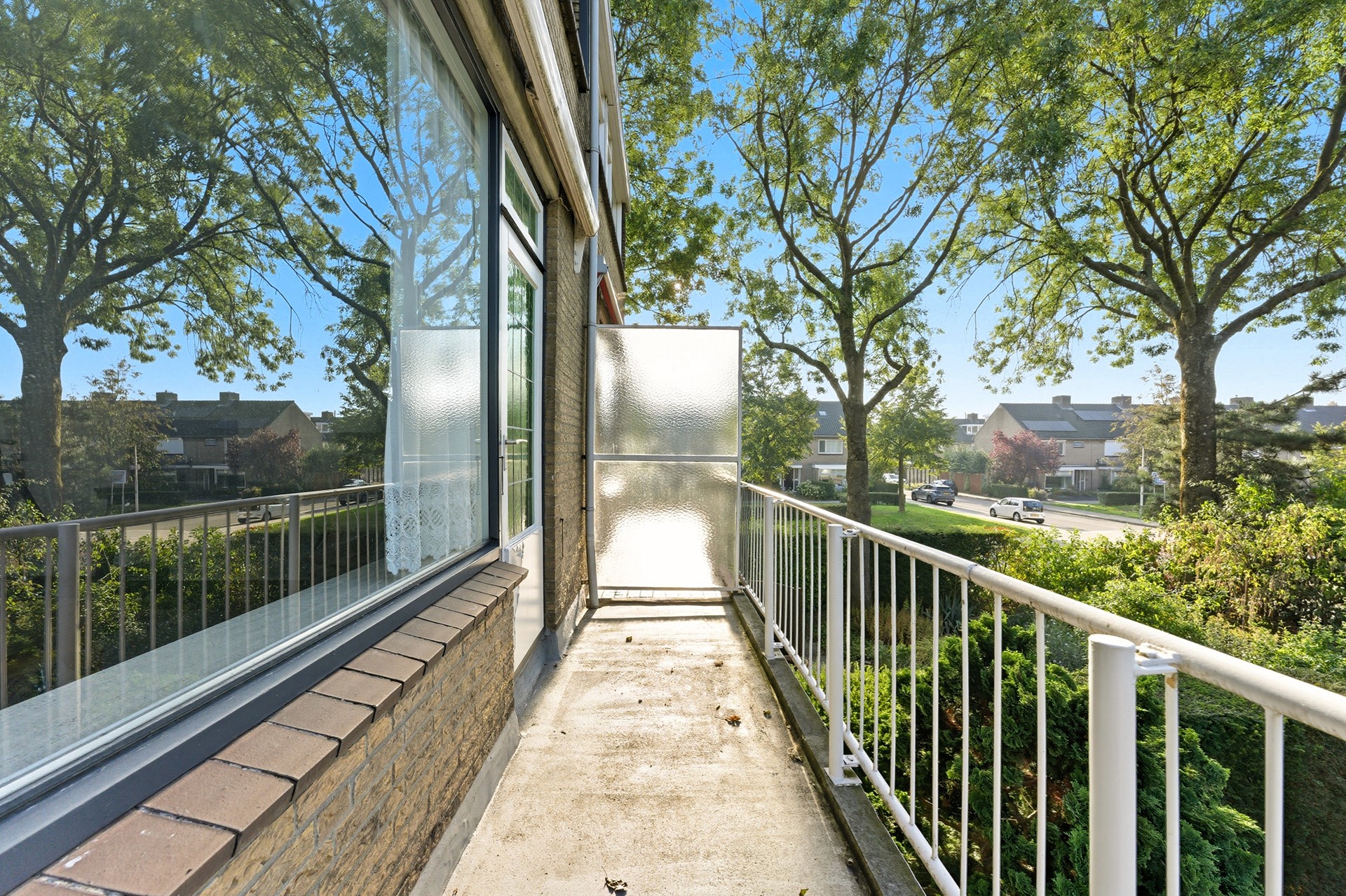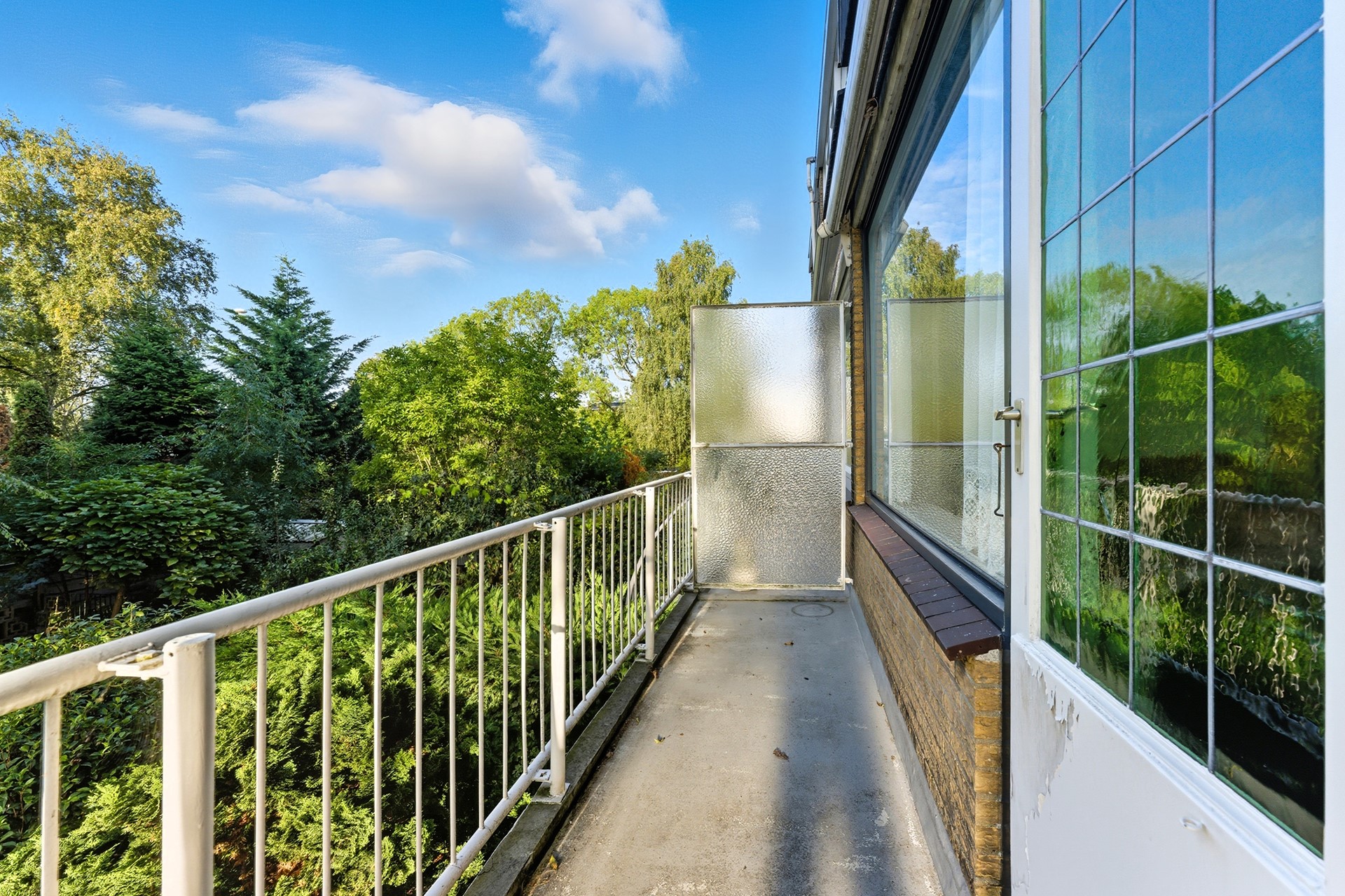 Balkon 2: Zonnig balkon (afm. ca. 1.35 x 5.00) gelegen aan de achterzijde van de woning. Het balkon kijkt uit op de groene achtertuin.