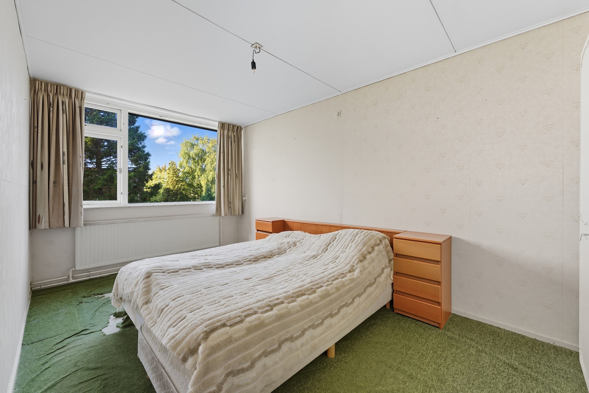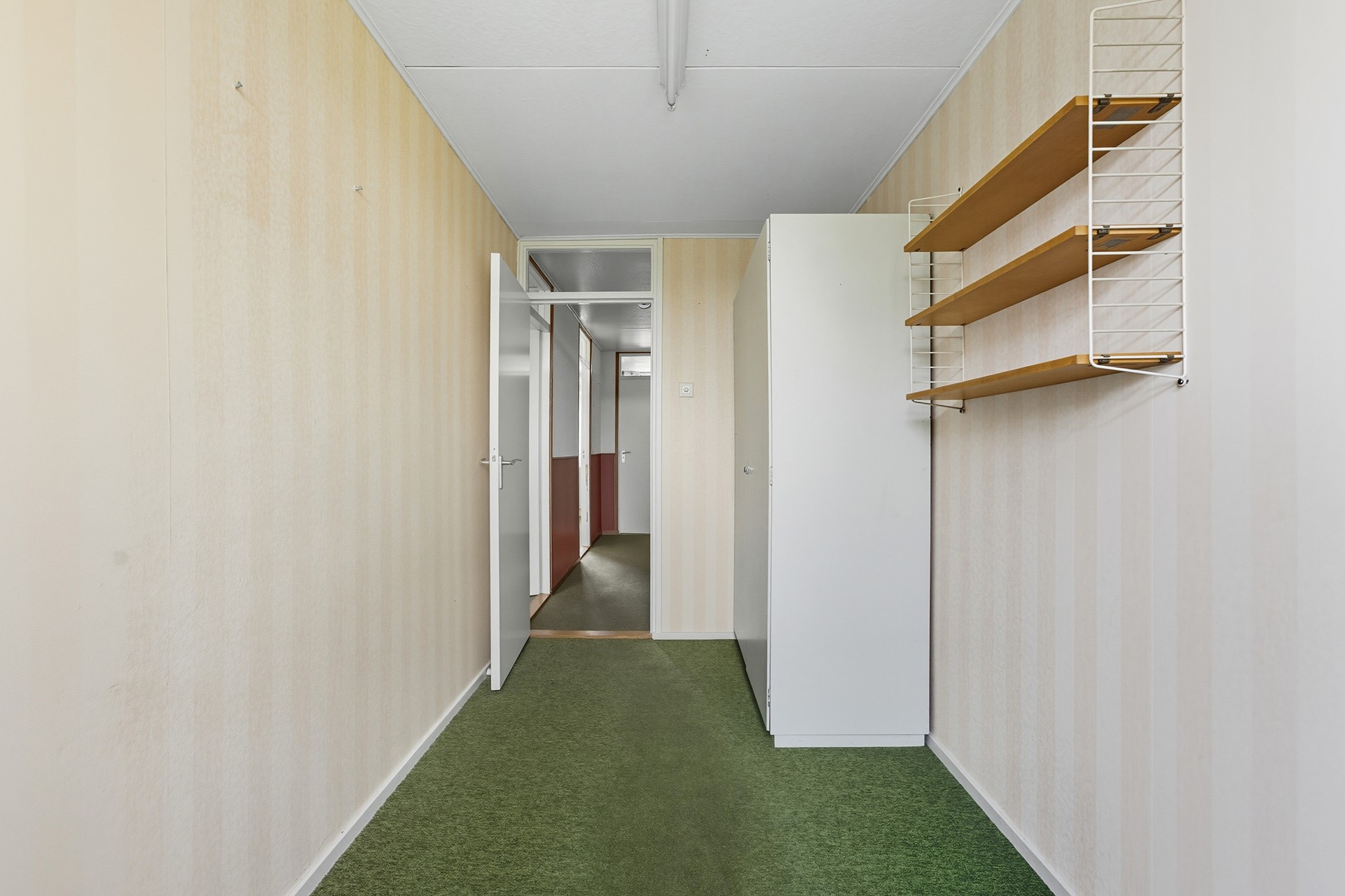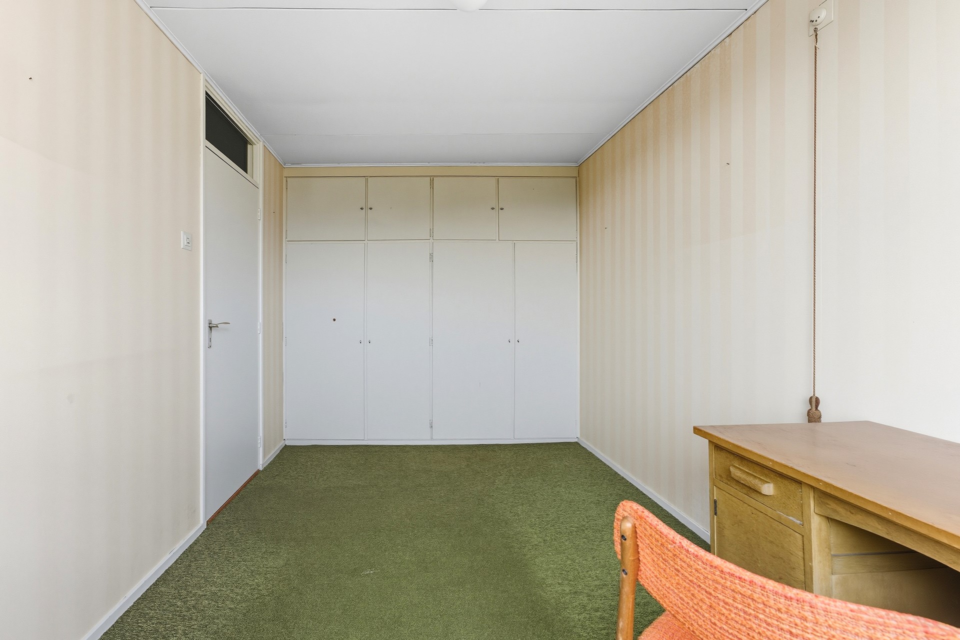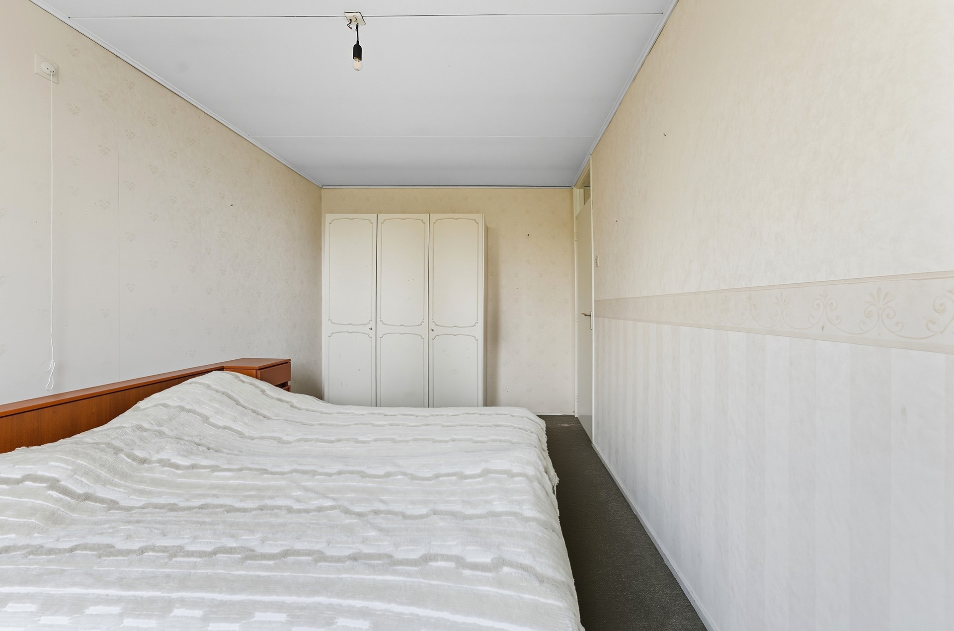 Slaapkamer 1: Slaapkamer één ligt aan de achterzijde van de woning en is voorzien van een rolluik. Het is een praktische ruimte die prima kan dienen als kinder- of tienerkamer, maar ook als hobbykamer of kantoortje. Er past eenvoudig een eenpersoonsbed in, waardoor de kamer goed te benutten is en helemaal naar eigen wens kan worden ingericht. De slaapkamers zijn afgewerkt met vloerbedekking, behangwanden en een zachtboard plafond.
