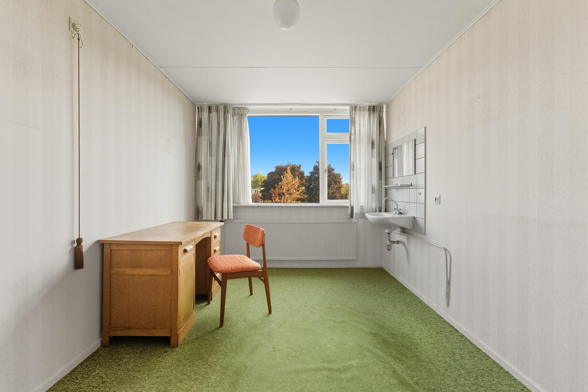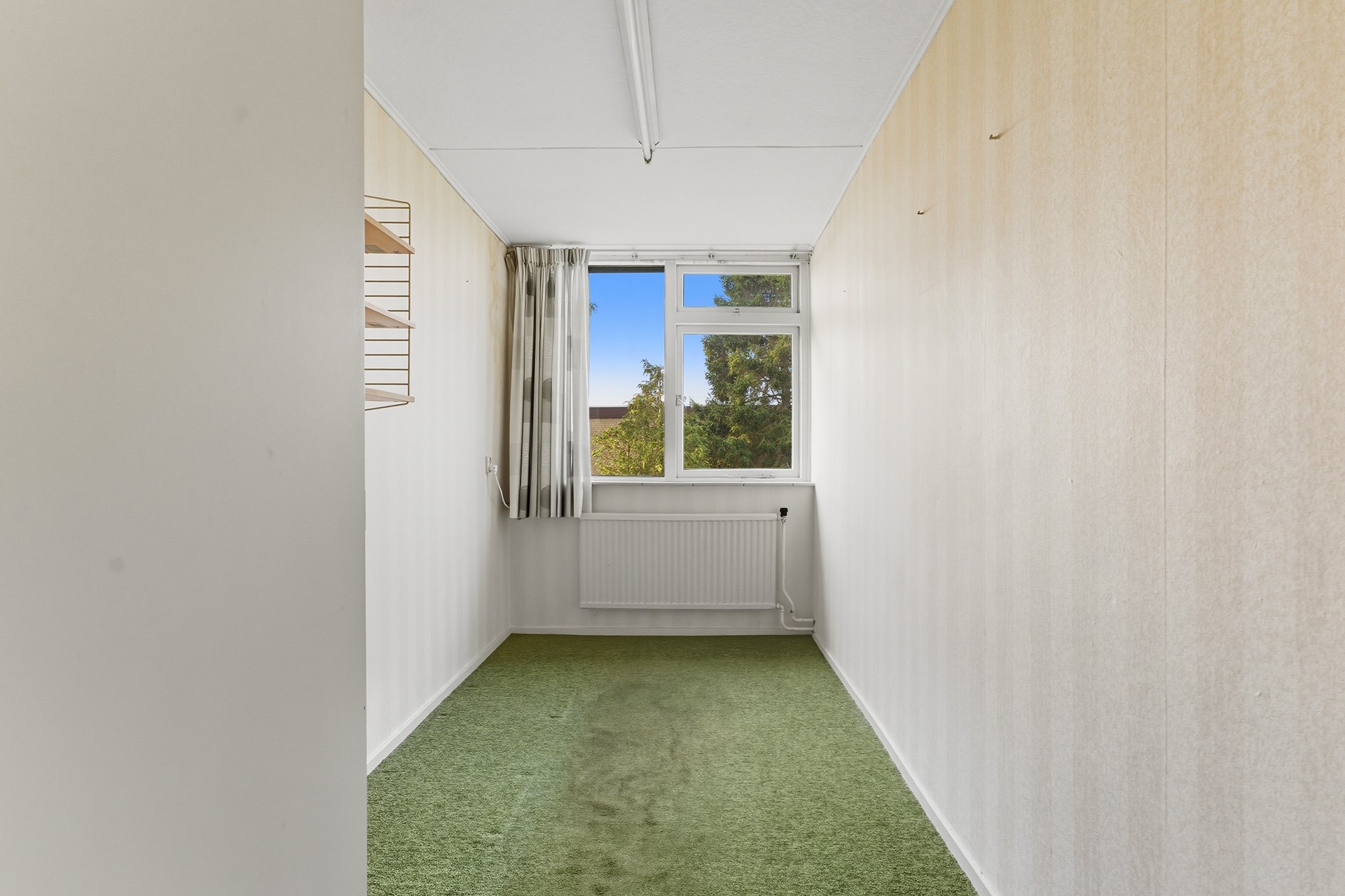 Slaapkamer 3: Deze ruime slaapkamer ligt aan de voorzijde van de woning en beschikt over een vaste kast en een eigen wastafel. Het is een grote, lichte kamer met volop mogelijkheden. Met een frisse verflaag, nieuwe vloer en een beetje styling kun je hier echt een fijne slaapkamer van maken.
