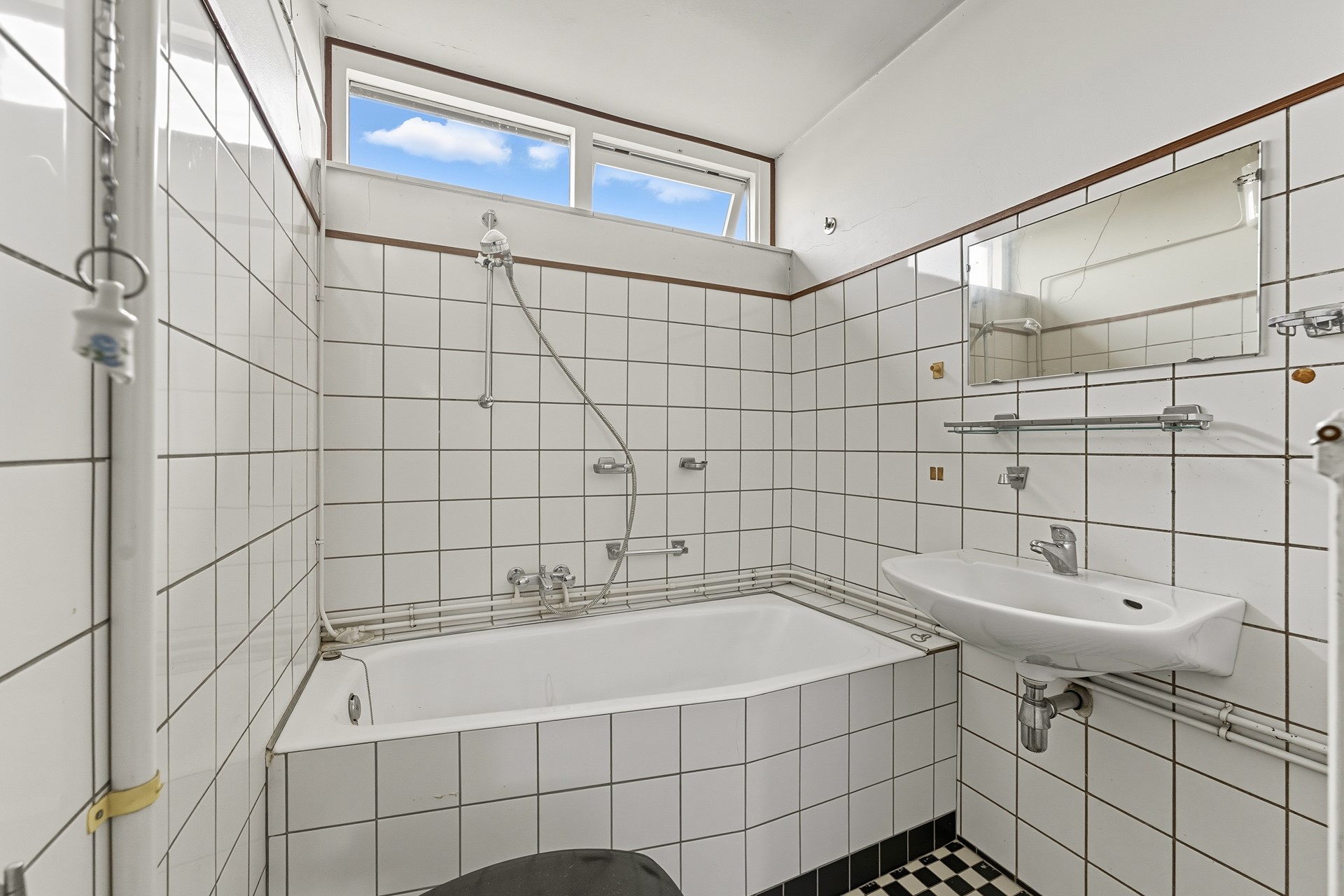 Badkamer: De badkamer is gedateerd en zal waarschijnlijk geheel worden vernieuwd. Op dit moment is de ruimte voorzien van een wastafel, ligbad en toilet. Er zijn volop mogelijkheden om de badkamer naar eigen smaak en wens in te richten. Wil je opnieuw een ligbad of liever een moderne inloopdouche? Ook is er voldoende ruimte om een toilet opnieuw te plaatsen.