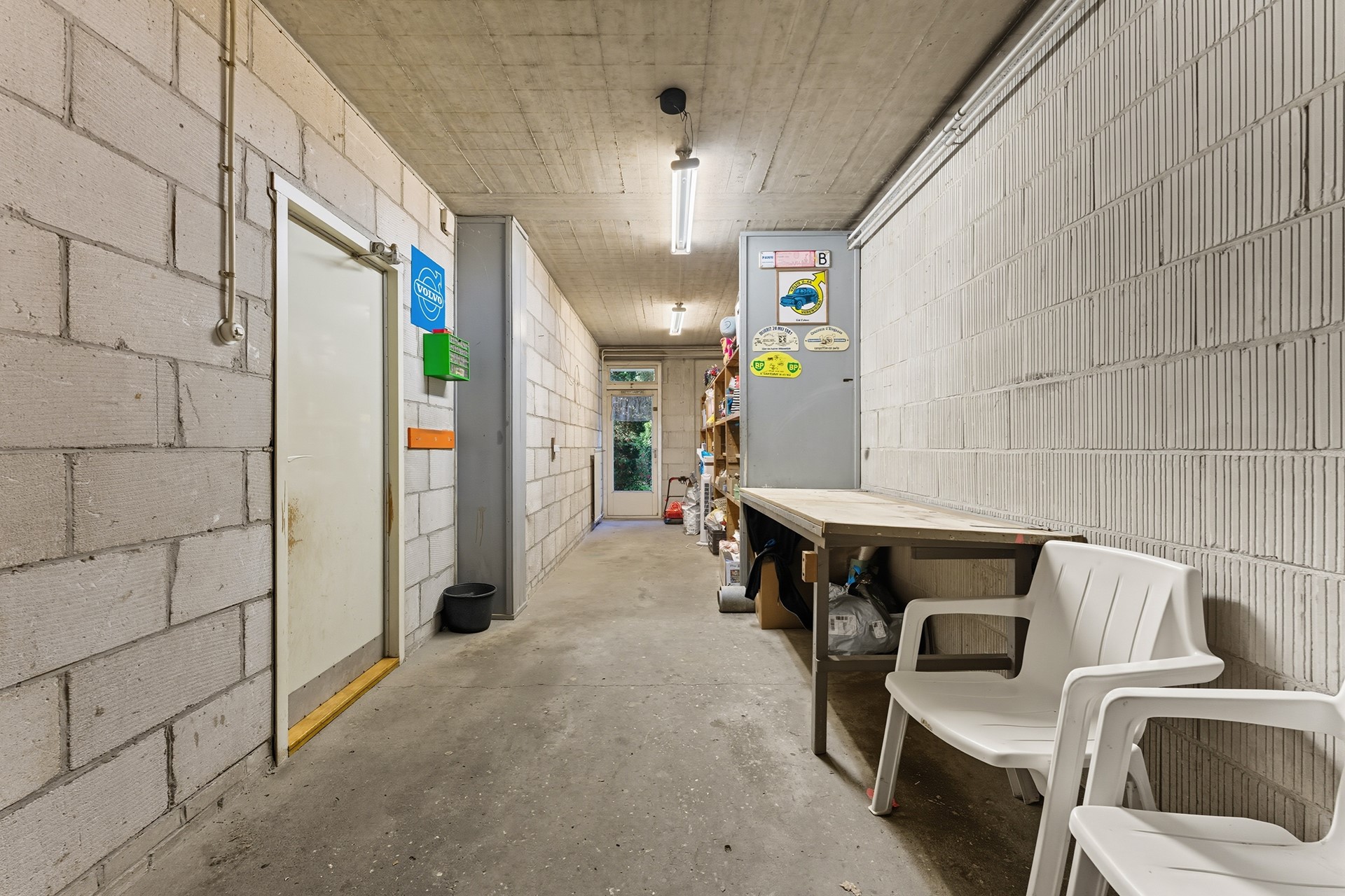 Garage: Handige garage met voldoende ruimte voor het plaatsen van je auto. De garage is voorzien van een handmatige roldeur, elektra, water en heeft een betonnen vloerafwerking. Maak er een werkbank en je hebt hier een fijne klusruimte aan.