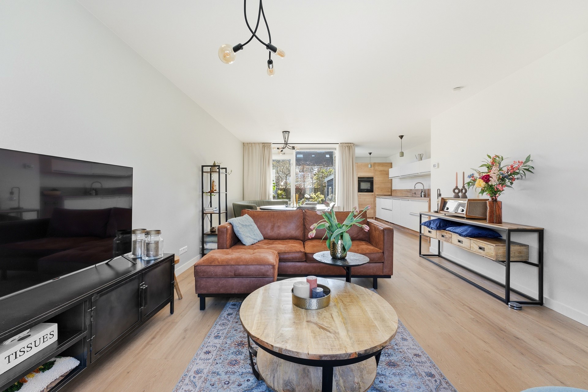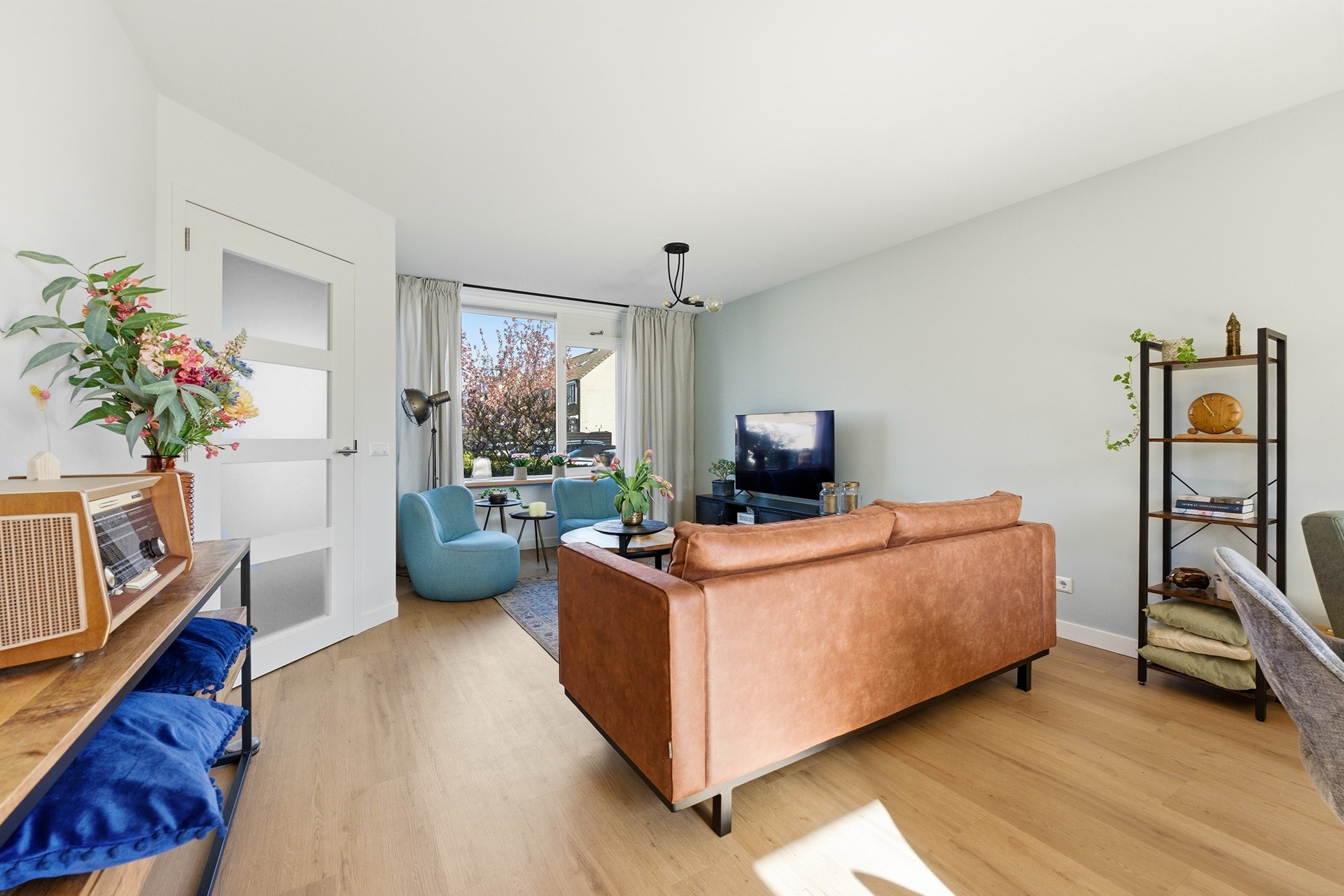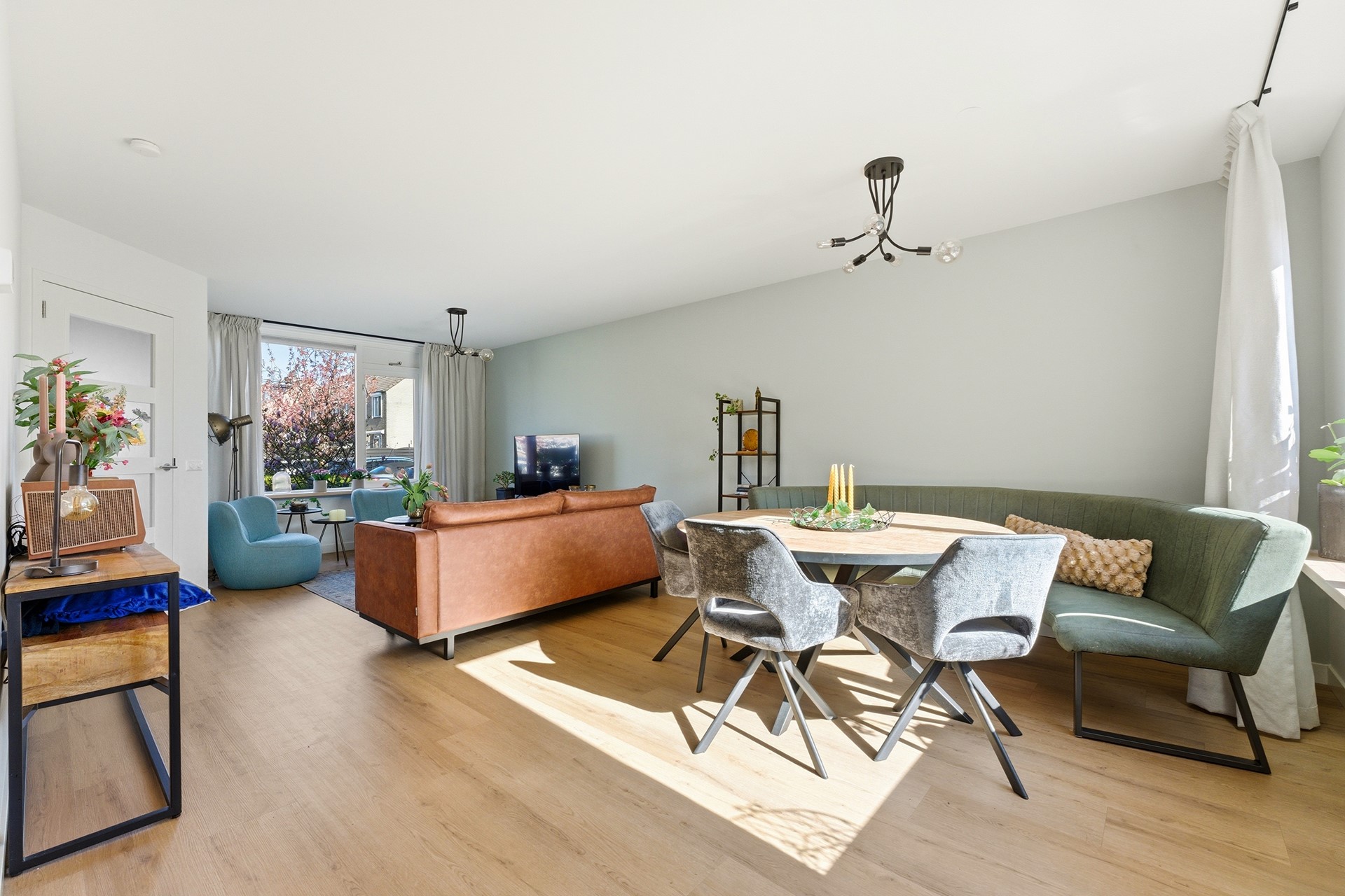 Woonkamer: De doorzonwoonkamer vormt het hart van de begane grond. Je ziet direct dat de gehele ruimte in 2024 volledig is gerenoveerd met oog voor kwaliteit en detail. Dankzij de nieuwe vloerverwarming die over de gehele verdieping ligt, geniet je hier van een comfortabel binnenklimaat. De grote raampartijen, nu volledig voorzien van nieuwe HR++ beglazing, zorgen voor een prachtige lichtinval. Een praktische trapkast biedt bovendien slimme opbergruimte uit het zicht. De open verbinding met de keuken creëert een ruimtelijk effect en een fijne flow in huis. Deze ruimte is strak afgewerkt met een PVC-vloer, glad gestuukte wanden en een spuitwerkplafond.