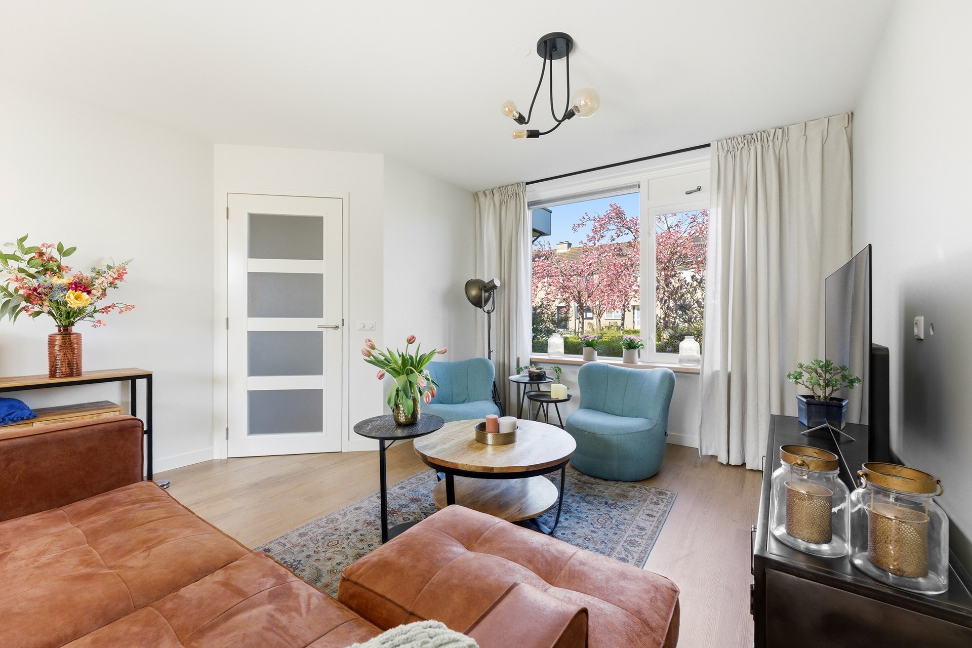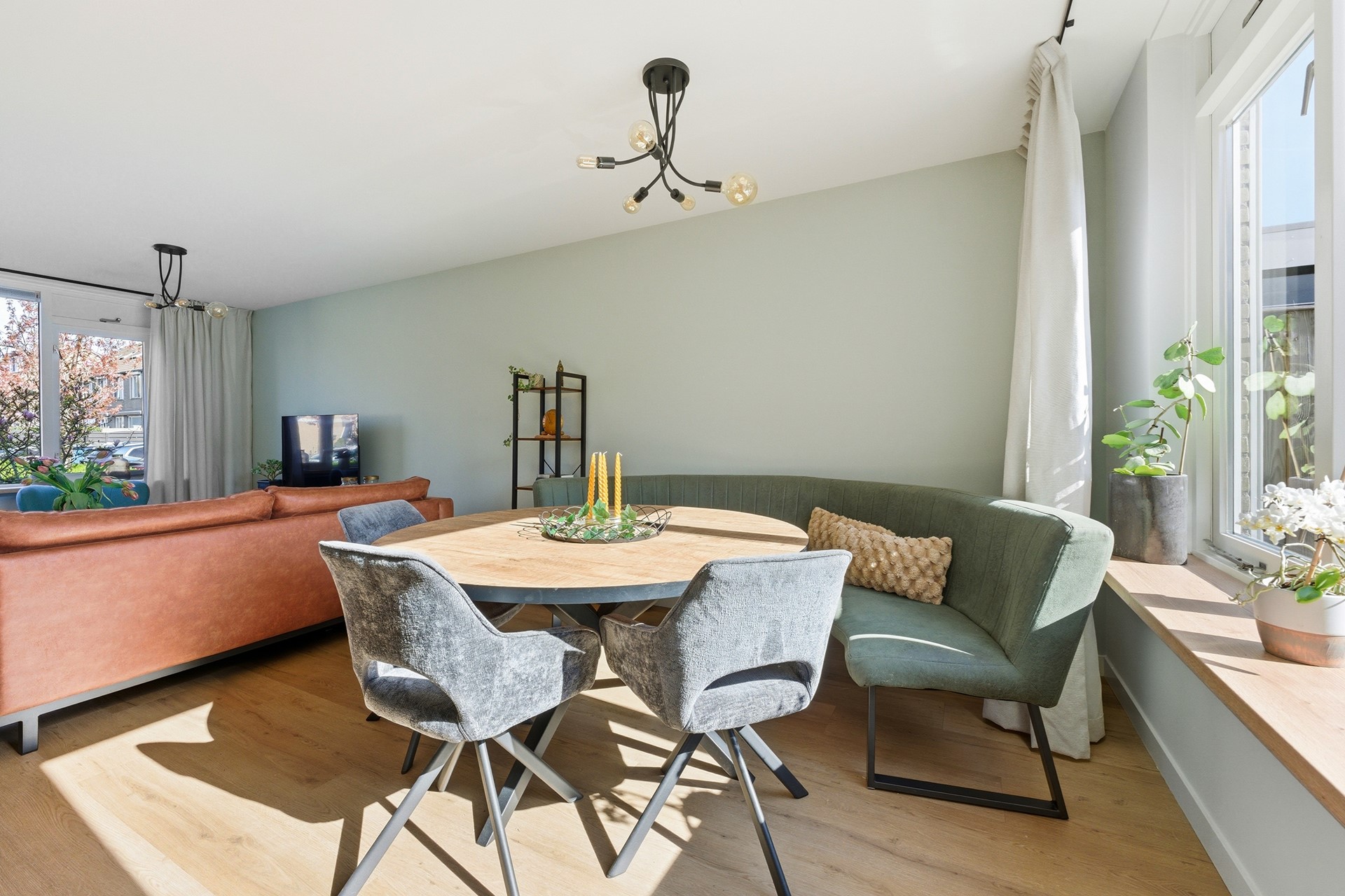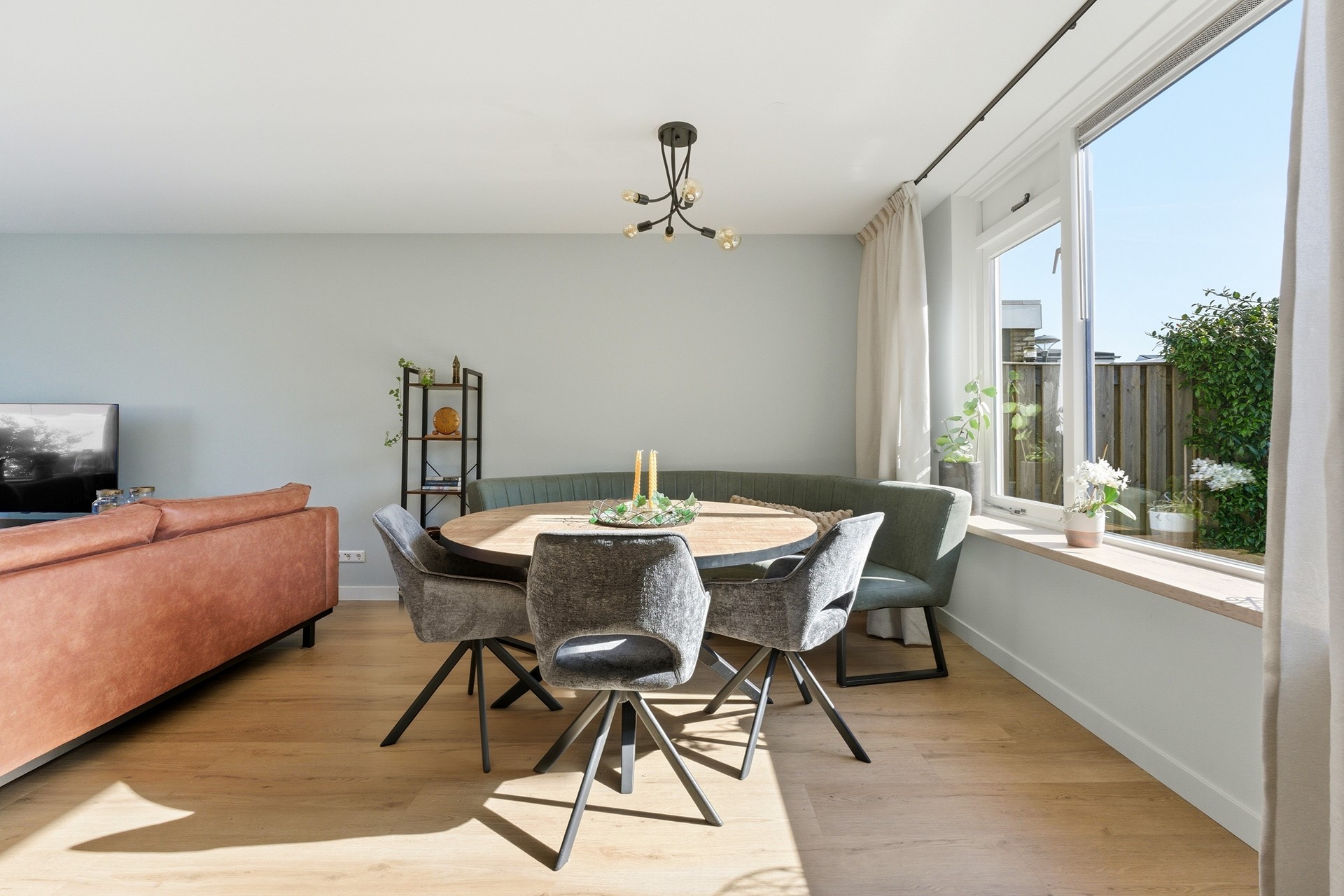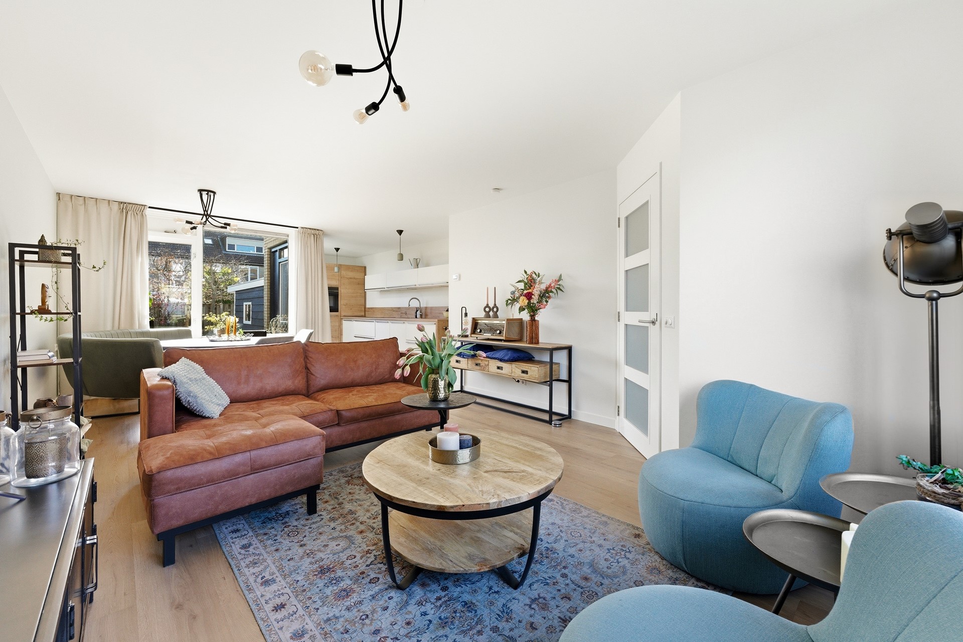 Woonkamer: De doorzonwoonkamer vormt het hart van de begane grond. Je ziet direct dat de gehele ruimte in 2024 volledig is gerenoveerd met oog voor kwaliteit en detail. Dankzij de nieuwe vloerverwarming die over de gehele verdieping ligt, geniet je hier van een comfortabel binnenklimaat. De grote raampartijen, nu volledig voorzien van nieuwe HR++ beglazing, zorgen voor een prachtige lichtinval. Een praktische trapkast biedt bovendien slimme opbergruimte uit het zicht. De open verbinding met de keuken creëert een ruimtelijk effect en een fijne flow in huis. Deze ruimte is strak afgewerkt met een PVC-vloer, glad gestuukte wanden en een spuitwerkplafond.