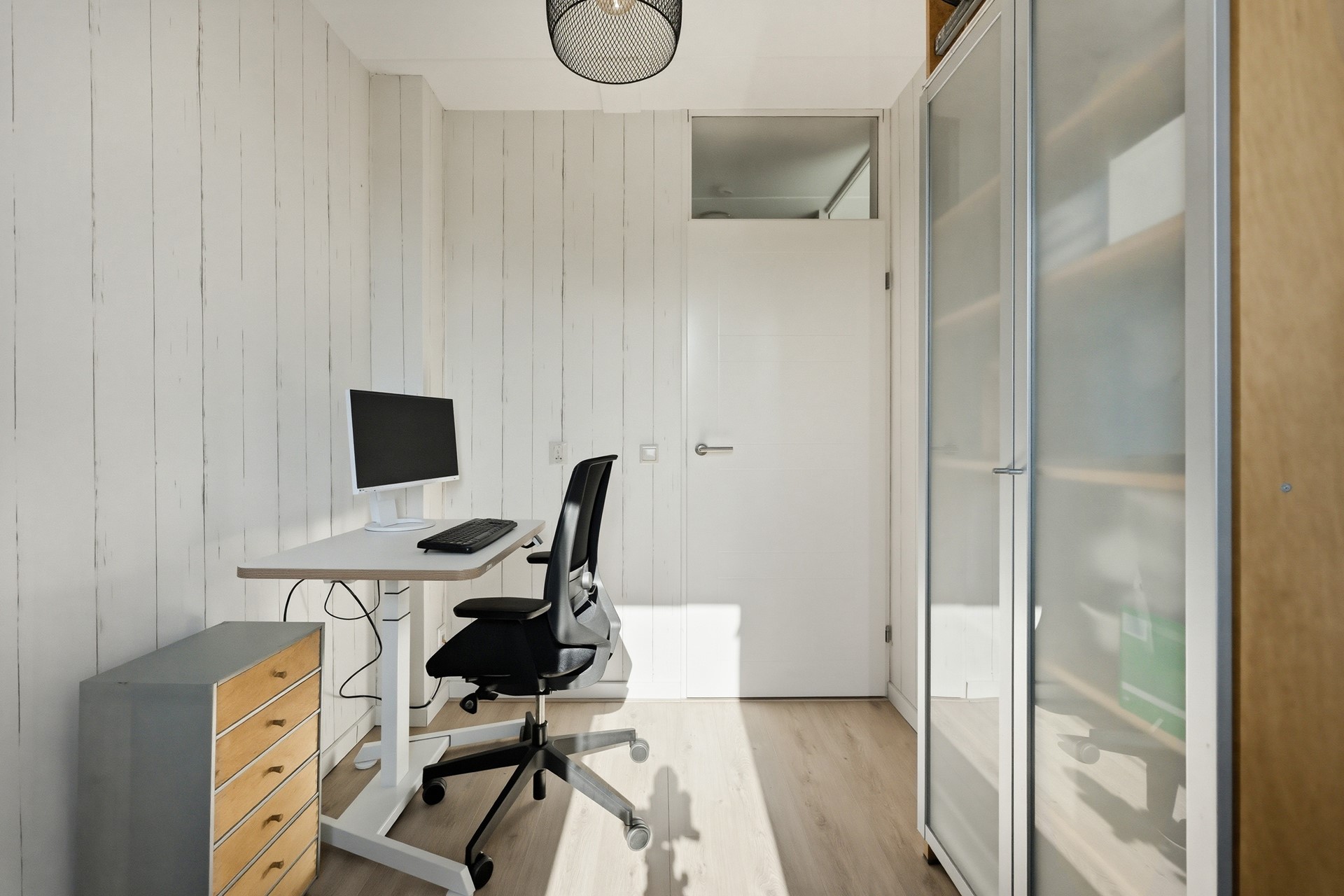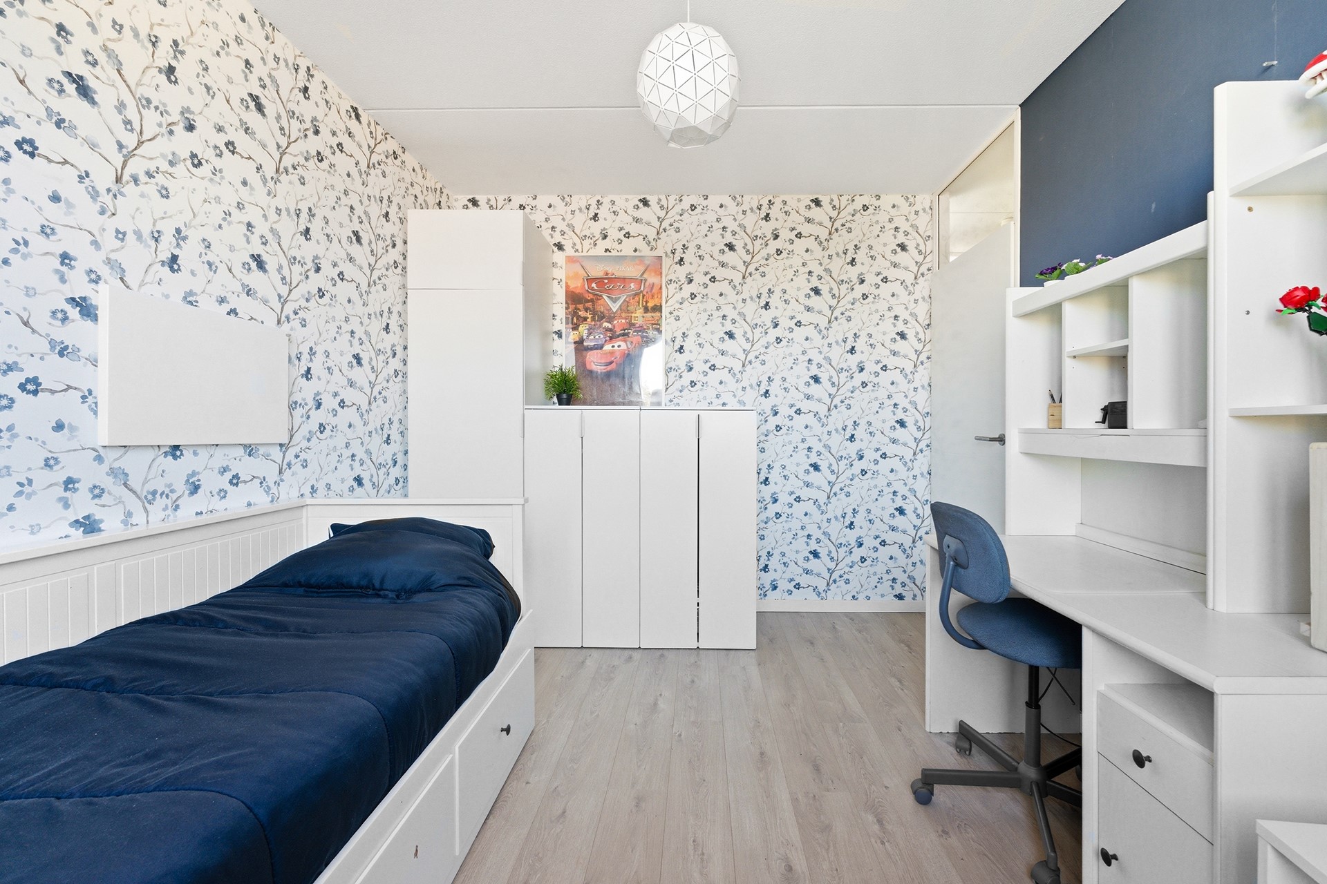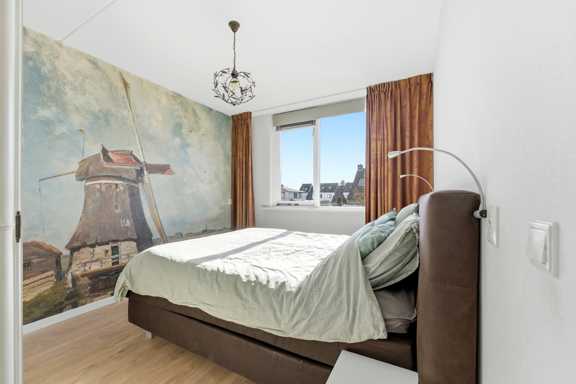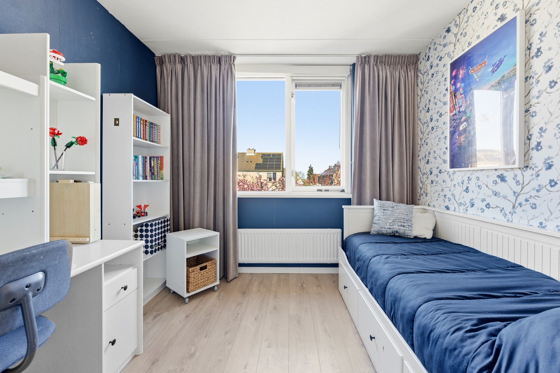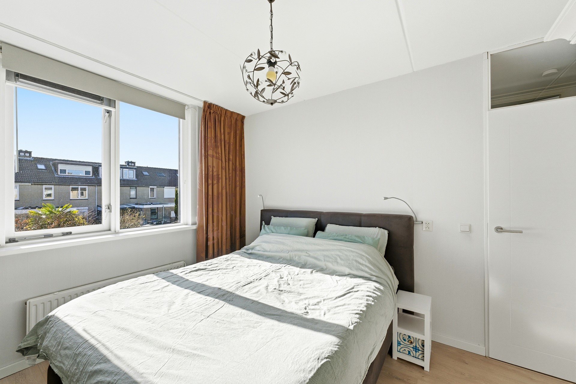 Slaapkamer 1: Deze kamer ligt aan de voorzijde van de woning en geniet van een prettige, natuurlijke lichtinval. Je kunt de zoninval hier eenvoudig naar wens reguleren dankzij de aanwezige screen. Het is een ideale kinder- of tienerkamer met meer dan voldoende ruimte voor zowel een bed als een bureau.