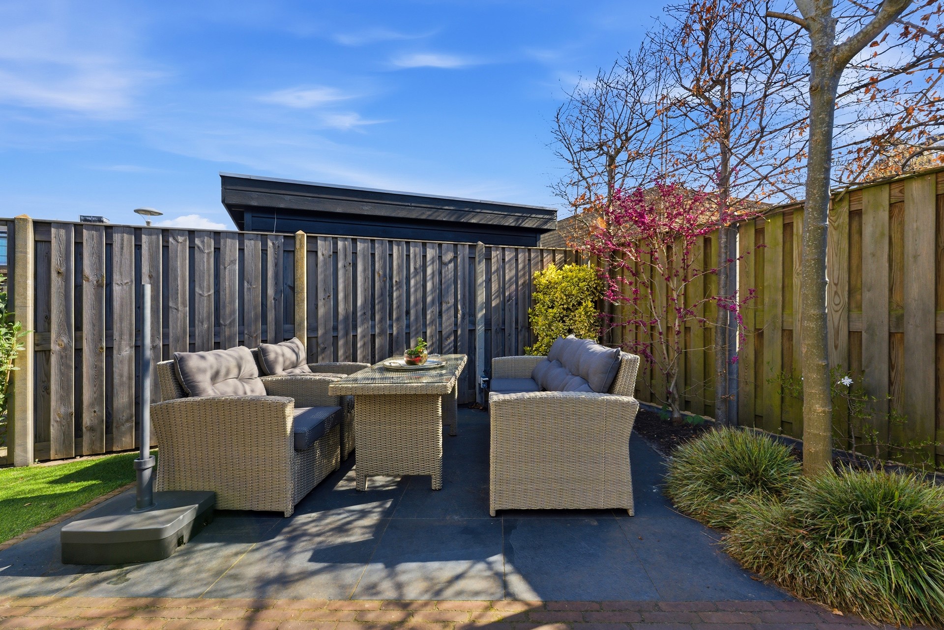Schuur: Achter in de tuin staat een mooie, vrijstaande houten schuur die voorzien is van elektra. Het is de ideale, praktische ruimte voor het stallen van fietsen of het opbergen van tuingereedschap.