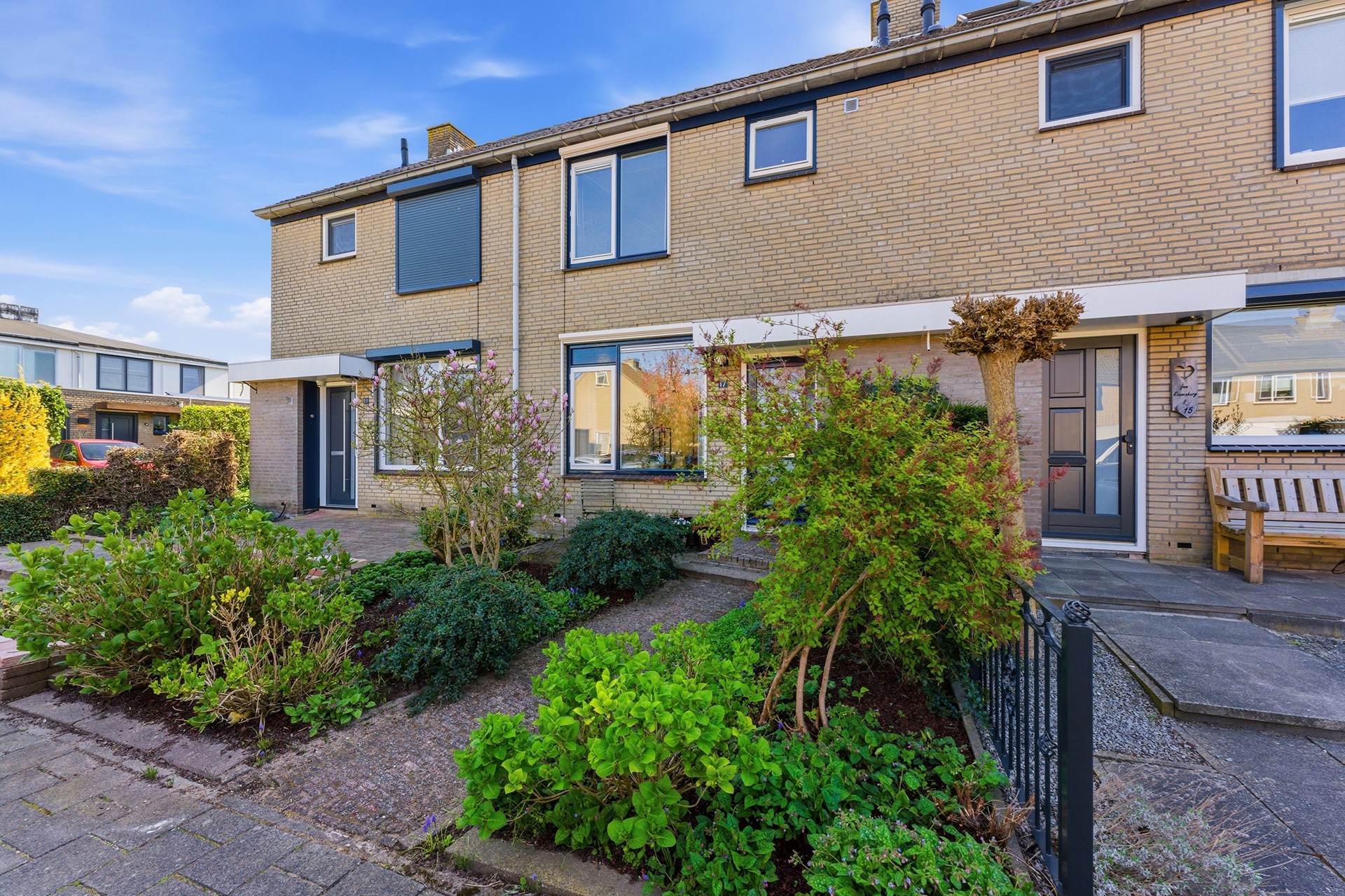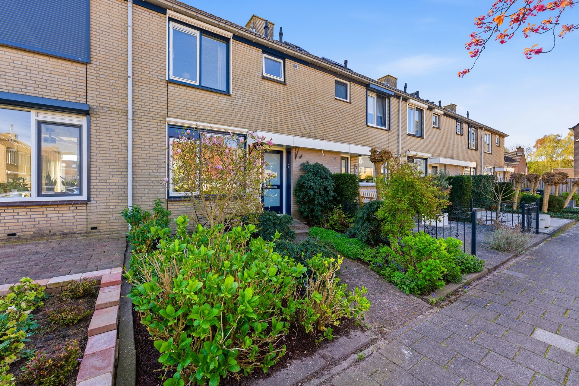 Voortuin: De voortuin (afm. ca. 5,00 x 5,20 m) is gelegen op het noordwesten en maakt een verzorgde, groene indruk. De eyecatcher is de prachtige magnolia. De tuin is ingericht met een combinatie van sierbestrating en diverse plantenborders. Ook is hier elektra en een watervoorziening aanwezig.