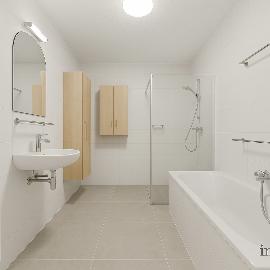 Badkamer: De inpandige badkamer is functioneel ingericht en voorzien van een wastafel, ligbad, inloopdouche en mechanische ventilatie. Hoewel u wellicht kiest voor modernisering, is de ruimte netjes onderhouden en biedt deze een prima basis om geheel naar eigen smaak te vernieuwen.