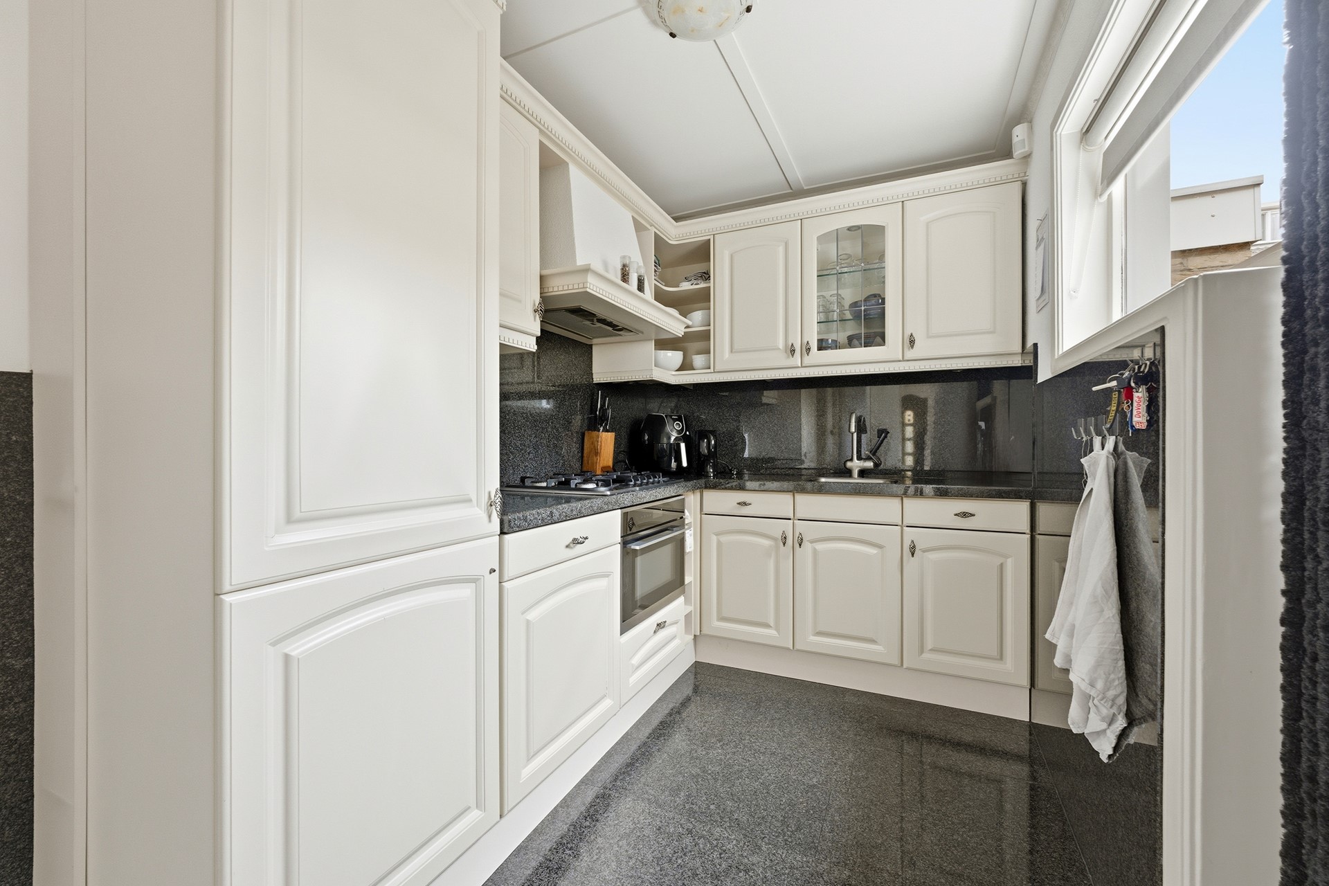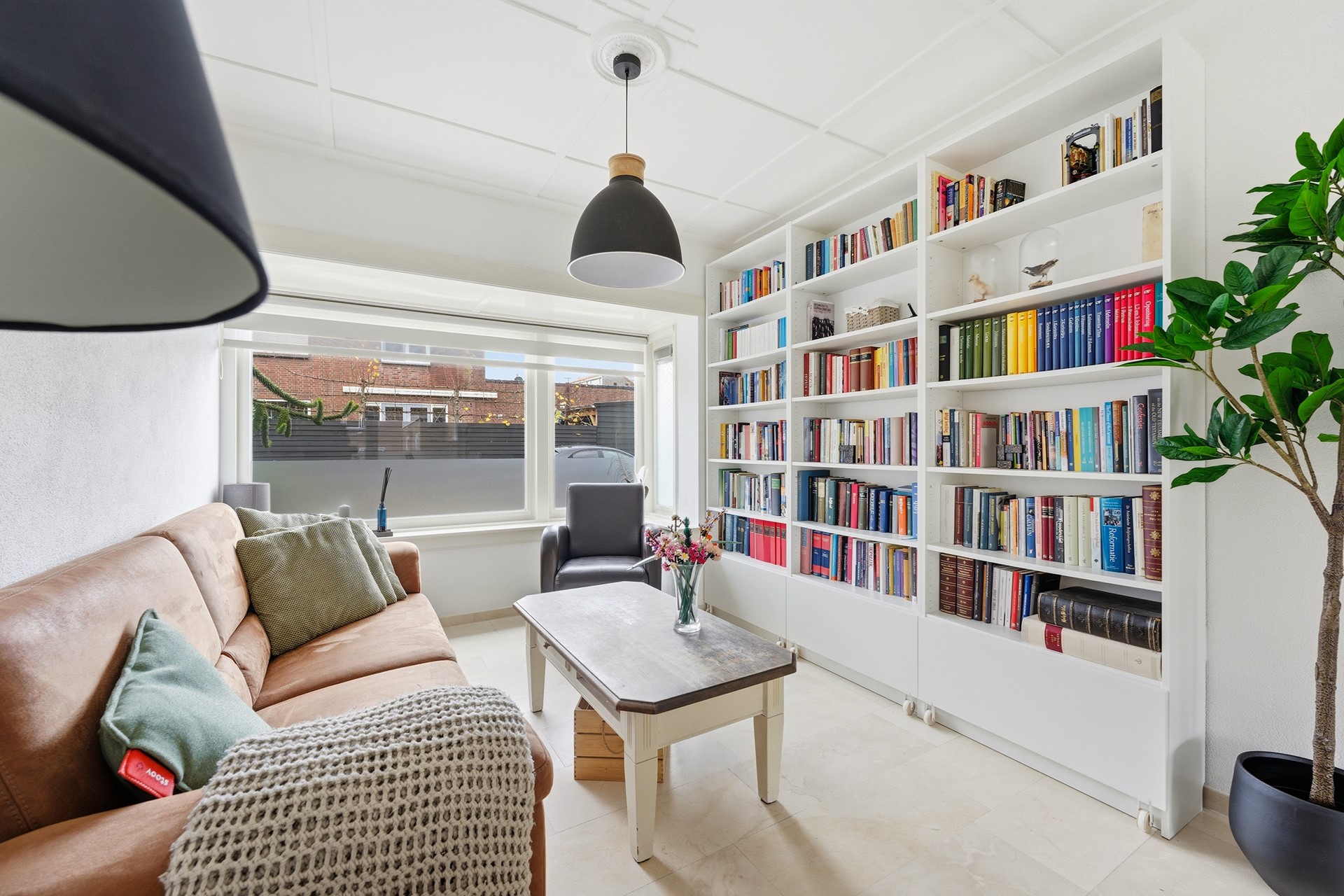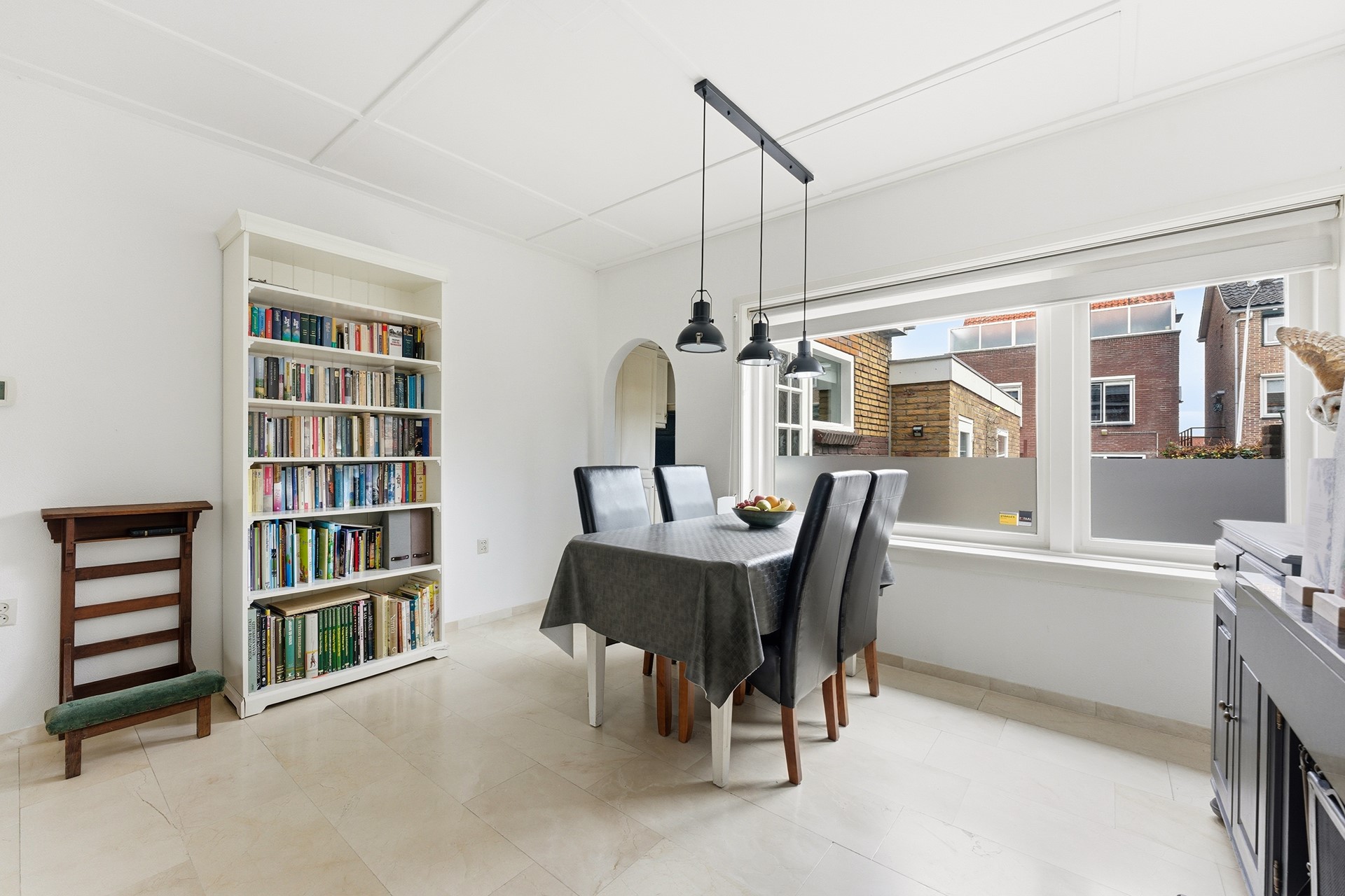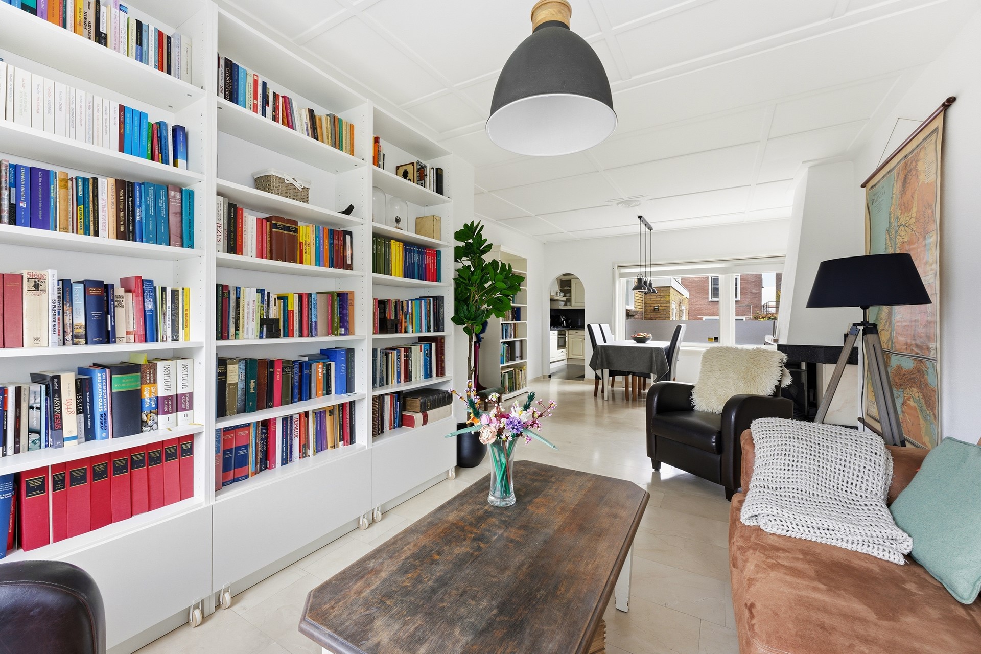 Woonkamer: De doorzonwoonkamer heeft een fijne lichtinval dankzij de leuke erker aan de voorzijde en het raam aan de achterzijde, waar een rolluik aanwezig is. In de winter kun je gezellig de open haard aansteken. De ruimte loopt mooi door richting de keuken en biedt verschillende indelingsmogelijkheden. De woonkamer is afgewerkt met natuursteen op de vloer, spachtelputz wanden en een ornamentenplafond.