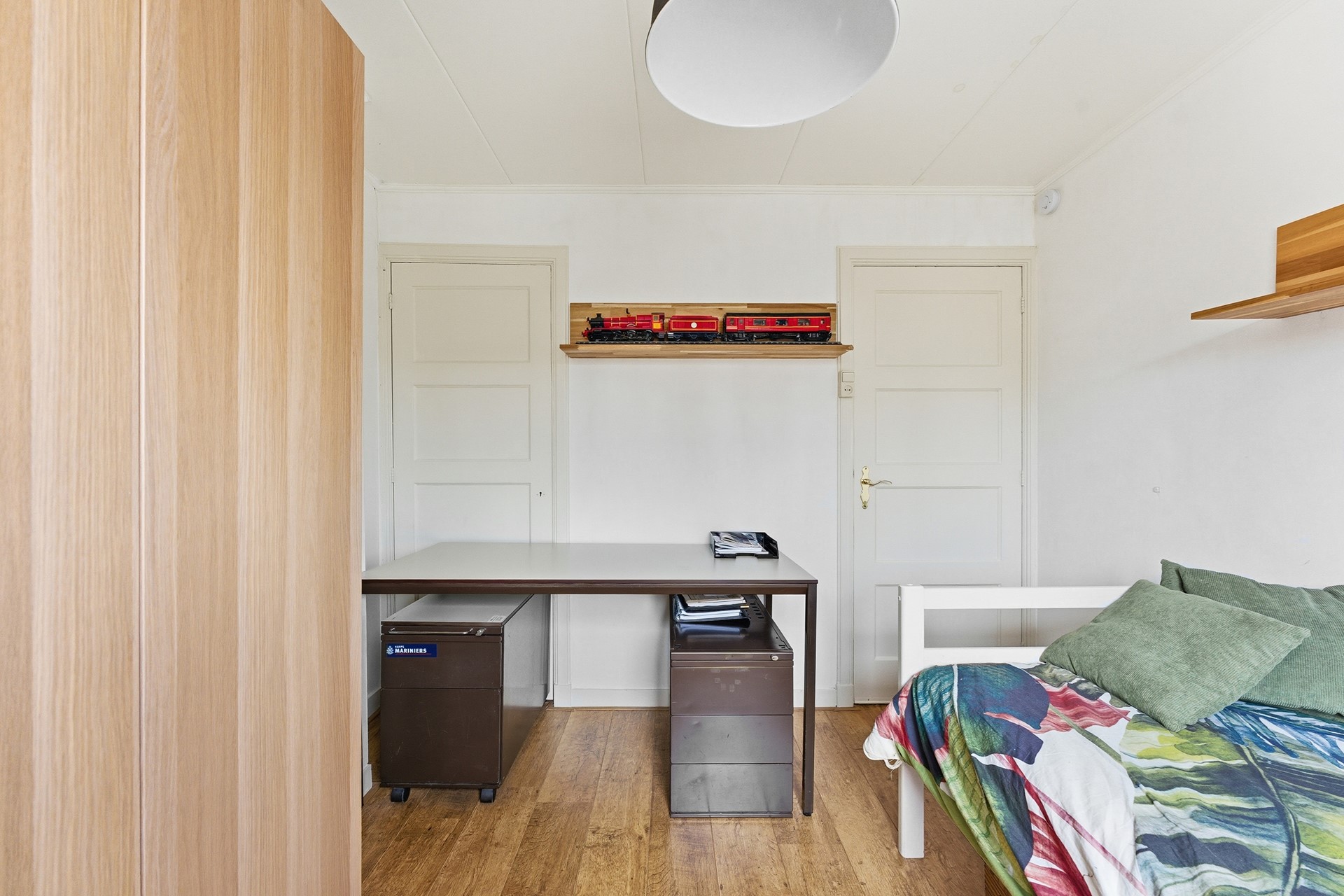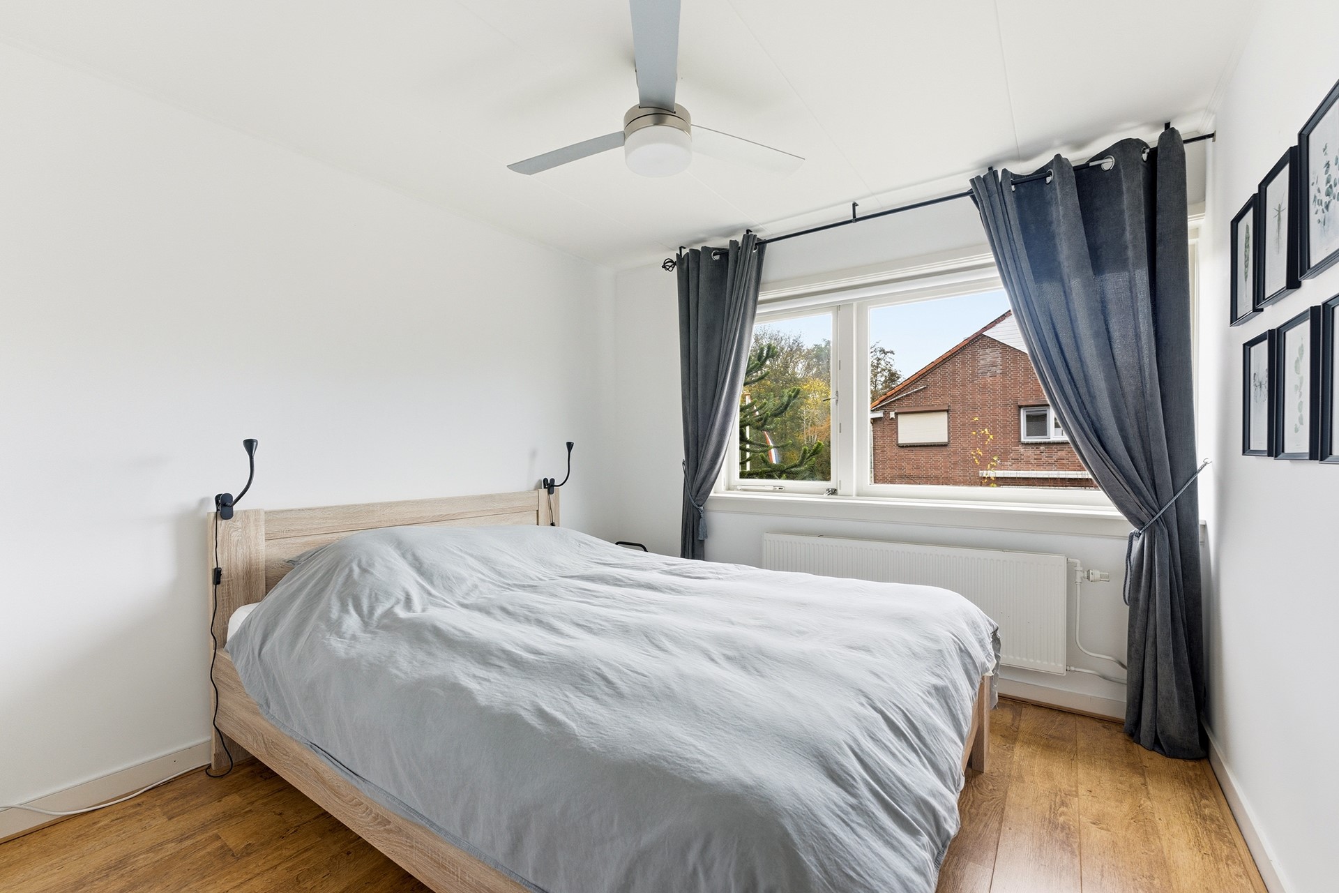 Slaapkamer 1: Deze slaapkamer ligt aan de achterzijde van de woning en beschikt over een praktische inbouwkast. Er is voldoende plek voor een extra kast, een bed en een bureau, waardoor dit een prettige en functionele kamer is. De ruimte is afgewerkt met gestuukte wanden en een gips plafond.