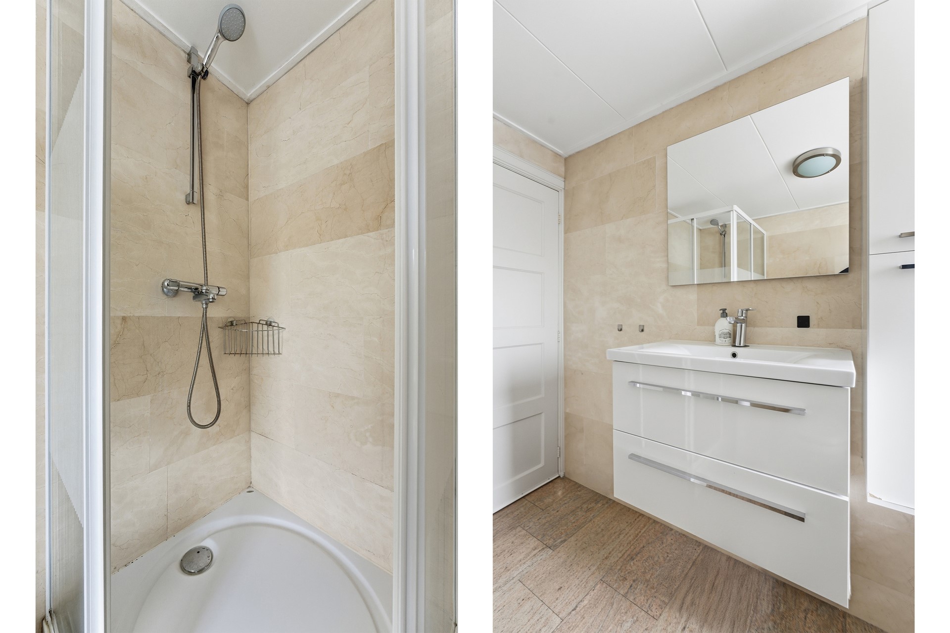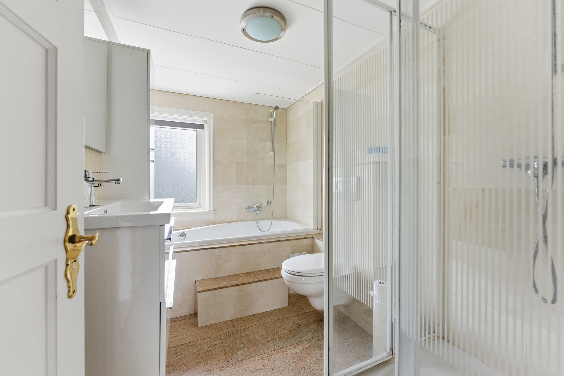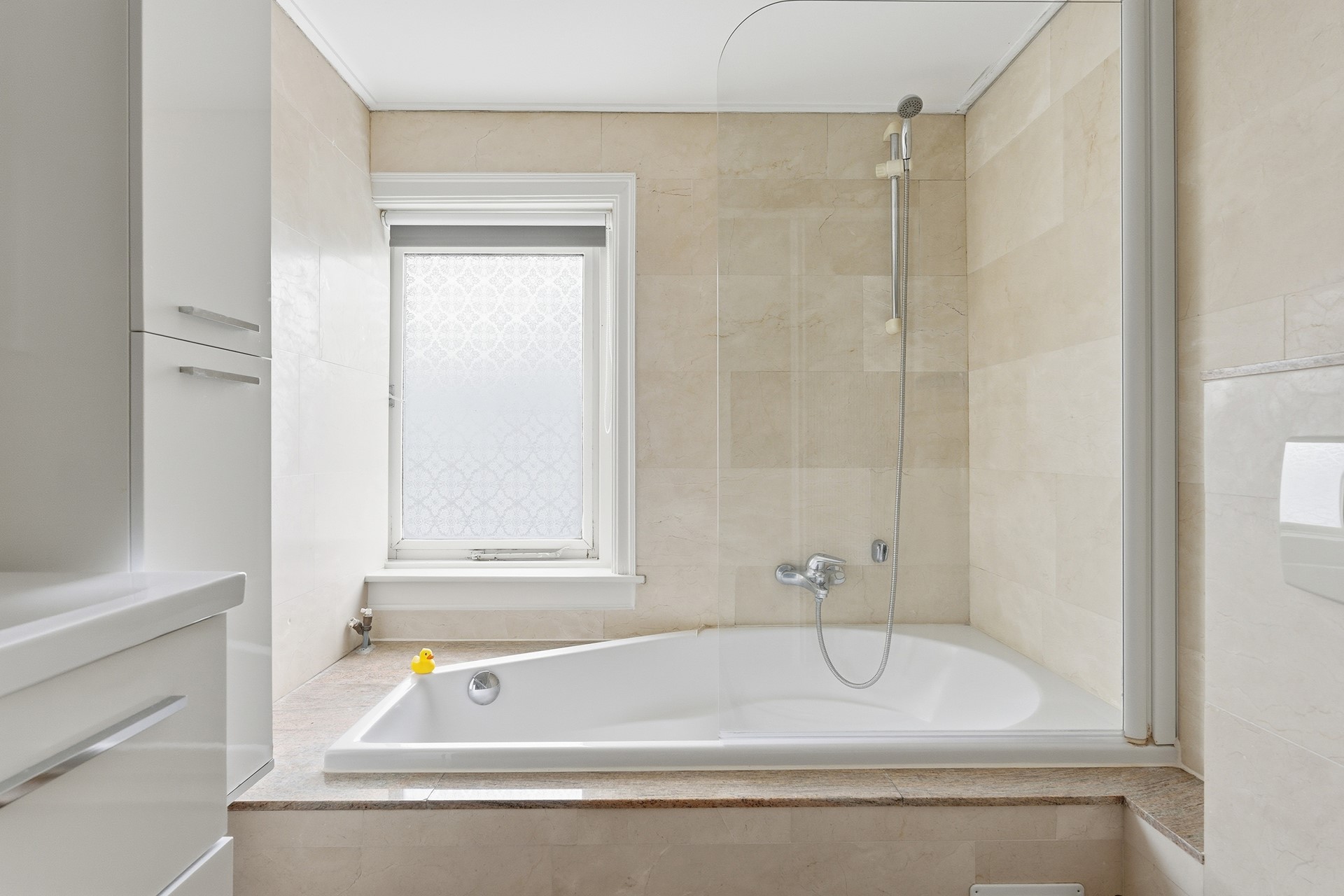 Badkamer: De badkamer is ruim opgezet en voorzien van een bad en een douche. Via een klein opstapje stap je in het bad en dankzij het scherm blijft de rest van de ruimte netjes droog. De ruimte is voorzien van een toilet, wastafelmeubel, designradiator en inbouwspots. De vloerverwarming zorgt voor aangenaam warme voeten wanneer je uit het bad of de douche stapt. De badkamer is volledig betegeld afgewerkt.