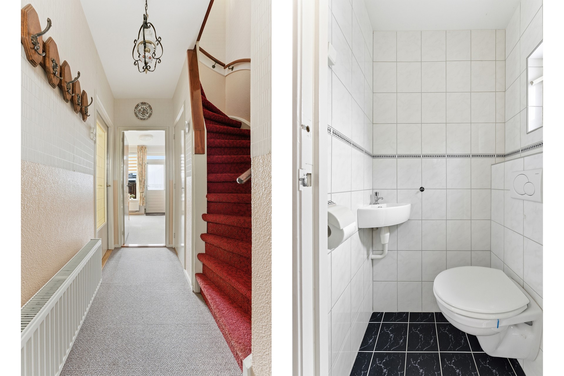 Entree: De nette entree geeft toegang tot de toiletruimte, kelder, keuken en de woonkamer. De ruimte is afgewerkt met vloerbedekking, behangwanden en een gestuukt plafond. De hal vormt een praktische binnenkomst met voldoende ruimte voor een kapstok.