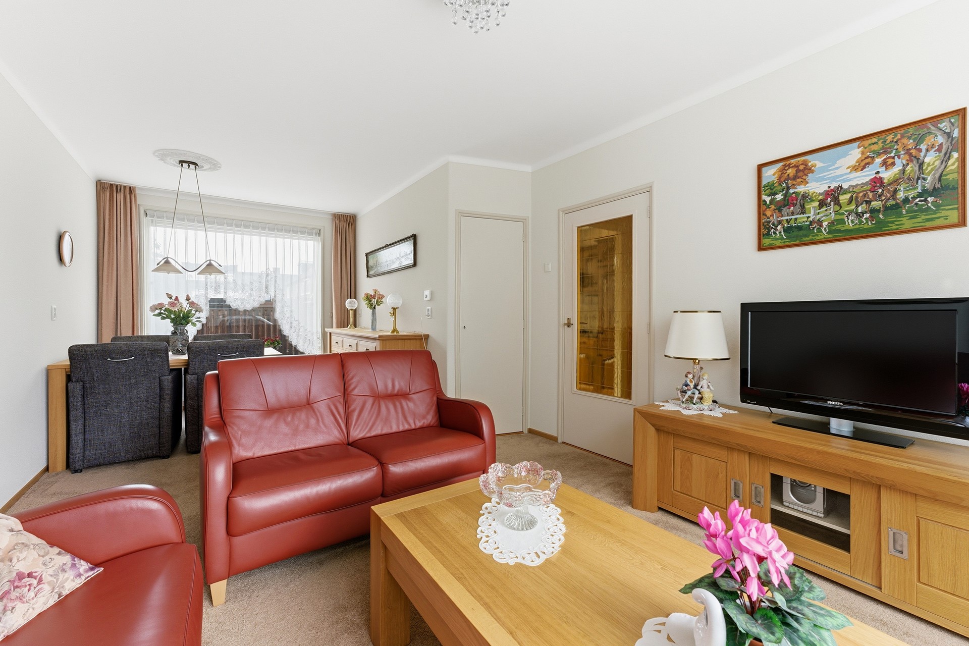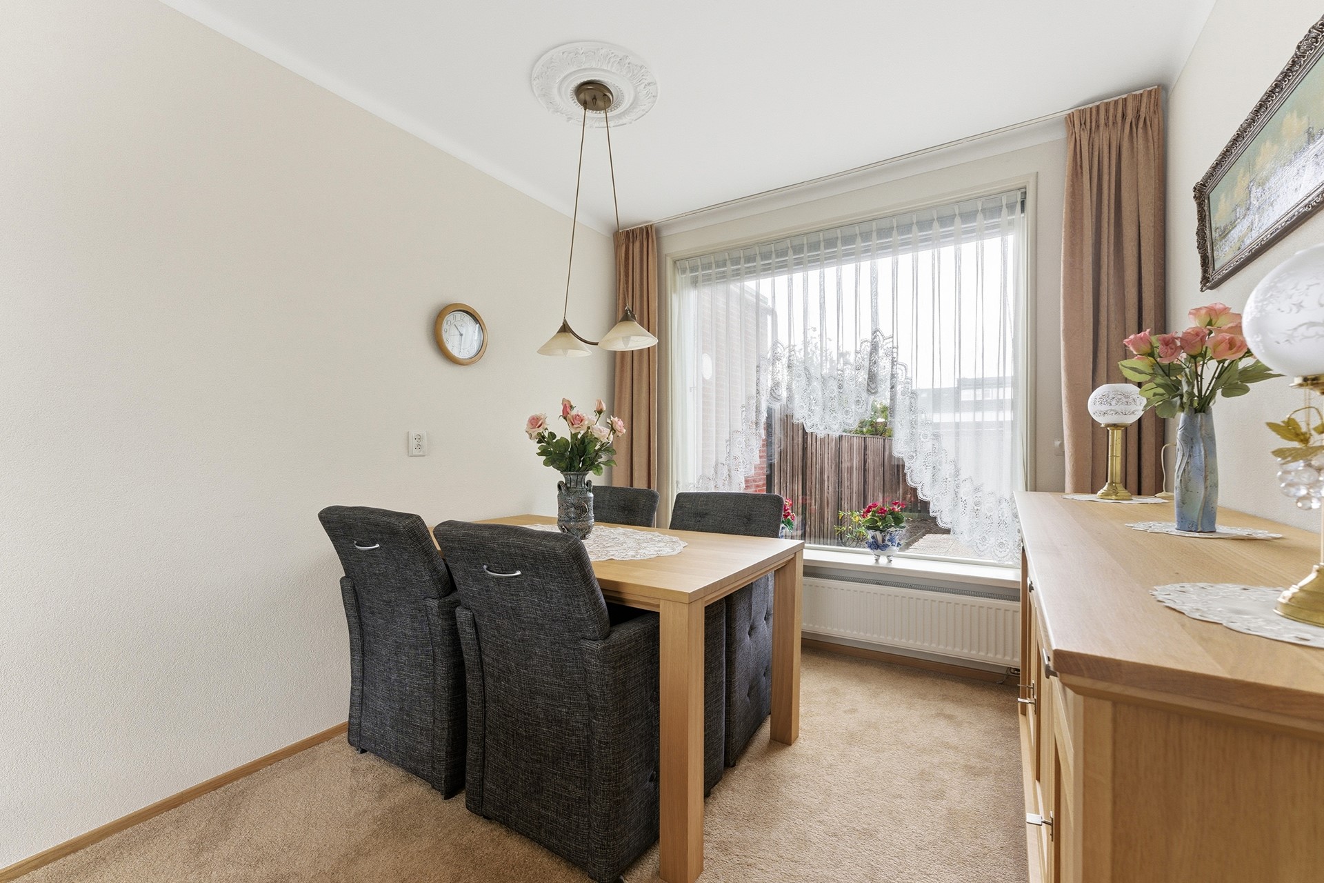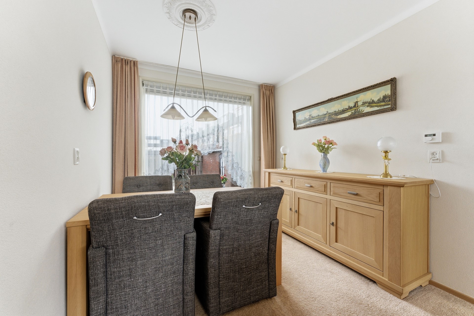 Woonkamer: De woonkamer is een fijne, lichte doorzonkamer met grote ramen aan zowel de voor- als achterzijde. Hierdoor valt er de hele dag door veel daglicht binnen en is het een prettige plek om te zitten. Zowel aan de voor- als achterzijde zijn rolluiken aanwezig, ideaal. Verder beschikt de woonkamer over een praktische inbouwkast voor extra bergruimte. De indeling leent zich goed voor een gezellige zithoek aan de voorzijde en een eethoek richting de keuken. De ruimte is afgewerkt met vloerbedekking, spachtelputz wanden en een spuitwerk plafond.