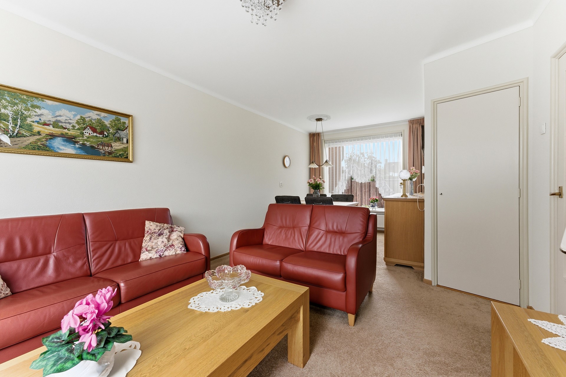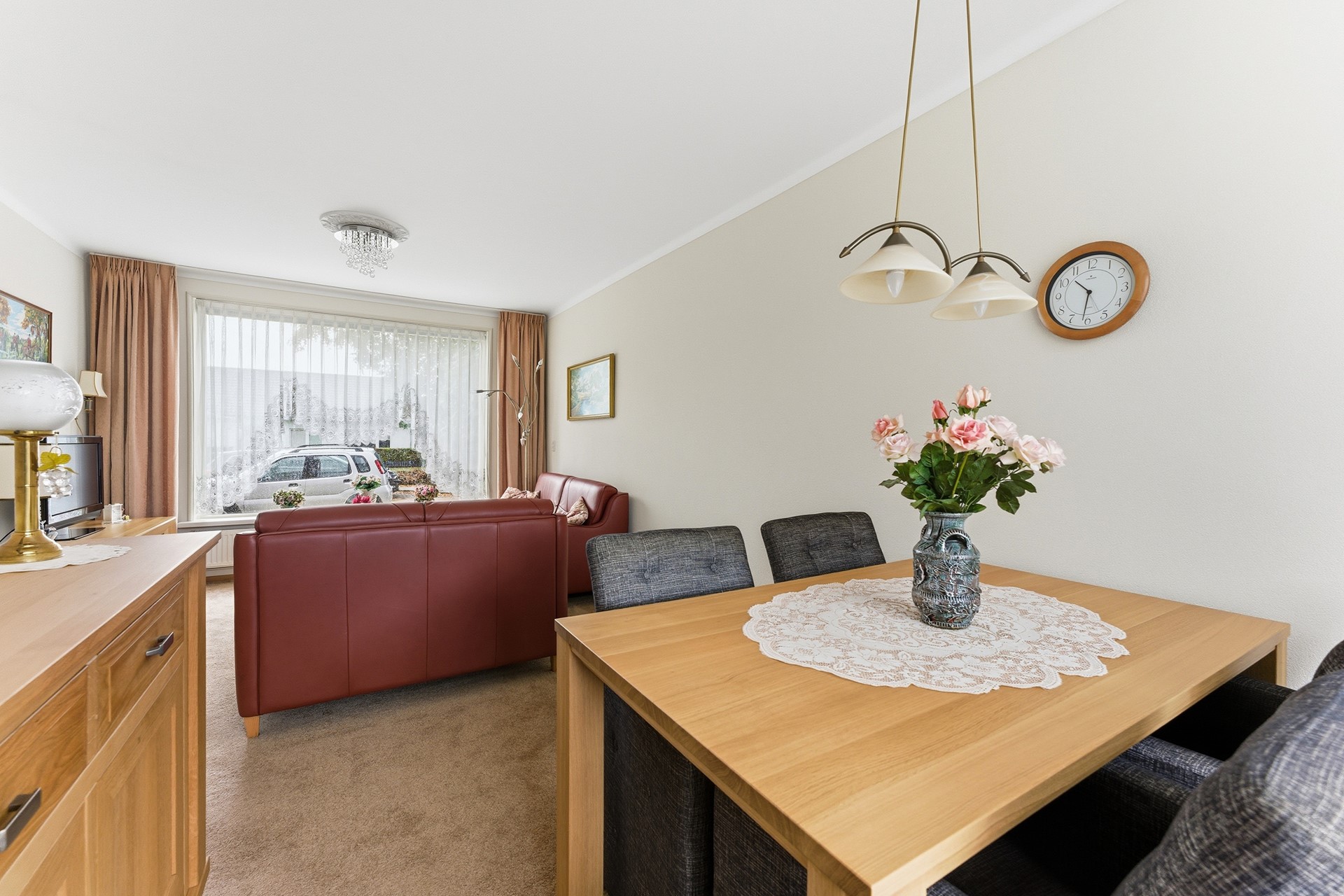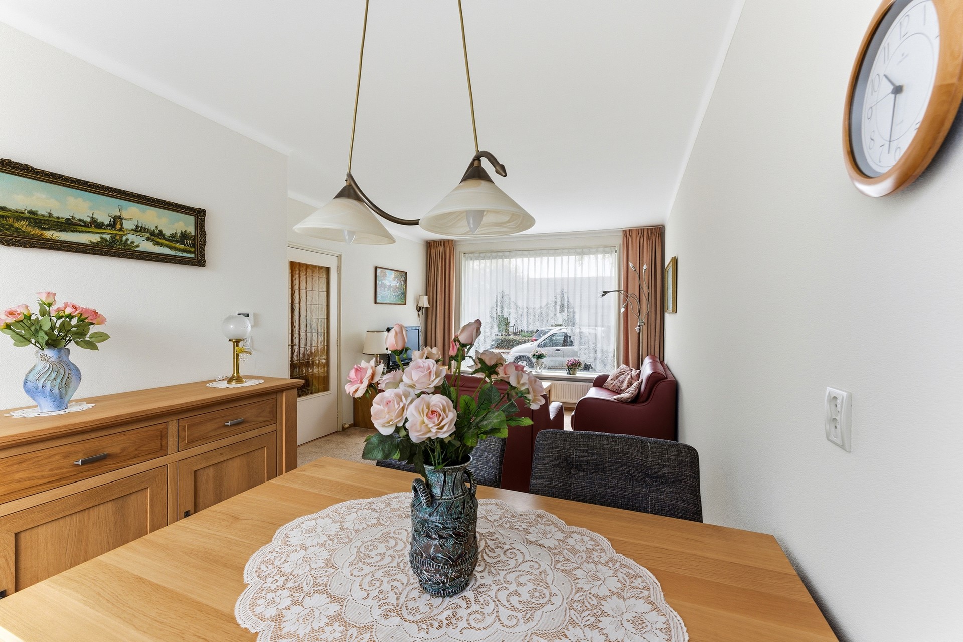 Woonkamer: De woonkamer is een fijne, lichte doorzonkamer met grote ramen aan zowel de voor- als achterzijde. Hierdoor valt er de hele dag door veel daglicht binnen en is het een prettige plek om te zitten. Zowel aan de voor- als achterzijde zijn rolluiken aanwezig, ideaal. Verder beschikt de woonkamer over een praktische inbouwkast voor extra bergruimte. De indeling leent zich goed voor een gezellige zithoek aan de voorzijde en een eethoek richting de keuken. De ruimte is afgewerkt met vloerbedekking, spachtelputz wanden en een spuitwerk plafond.
