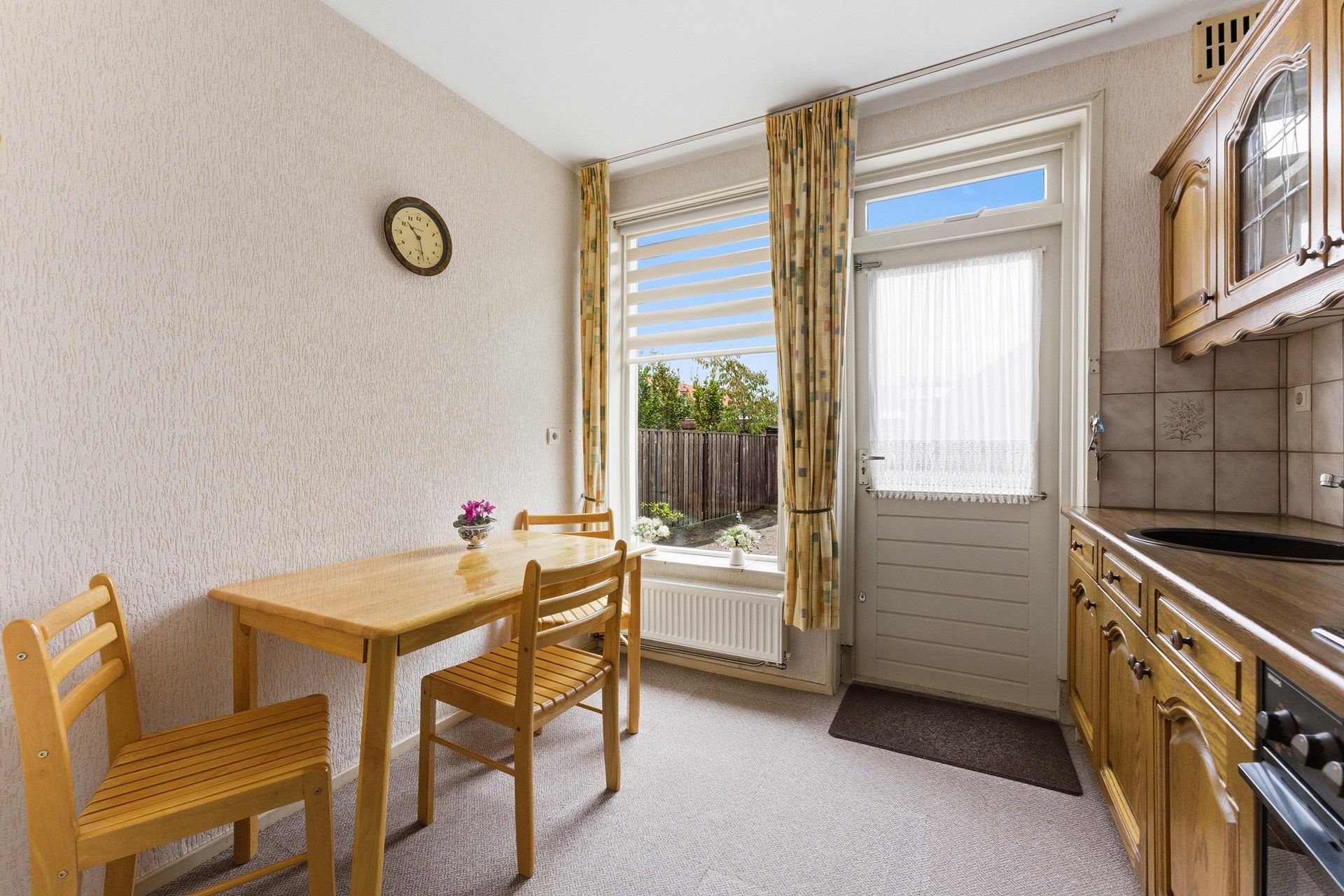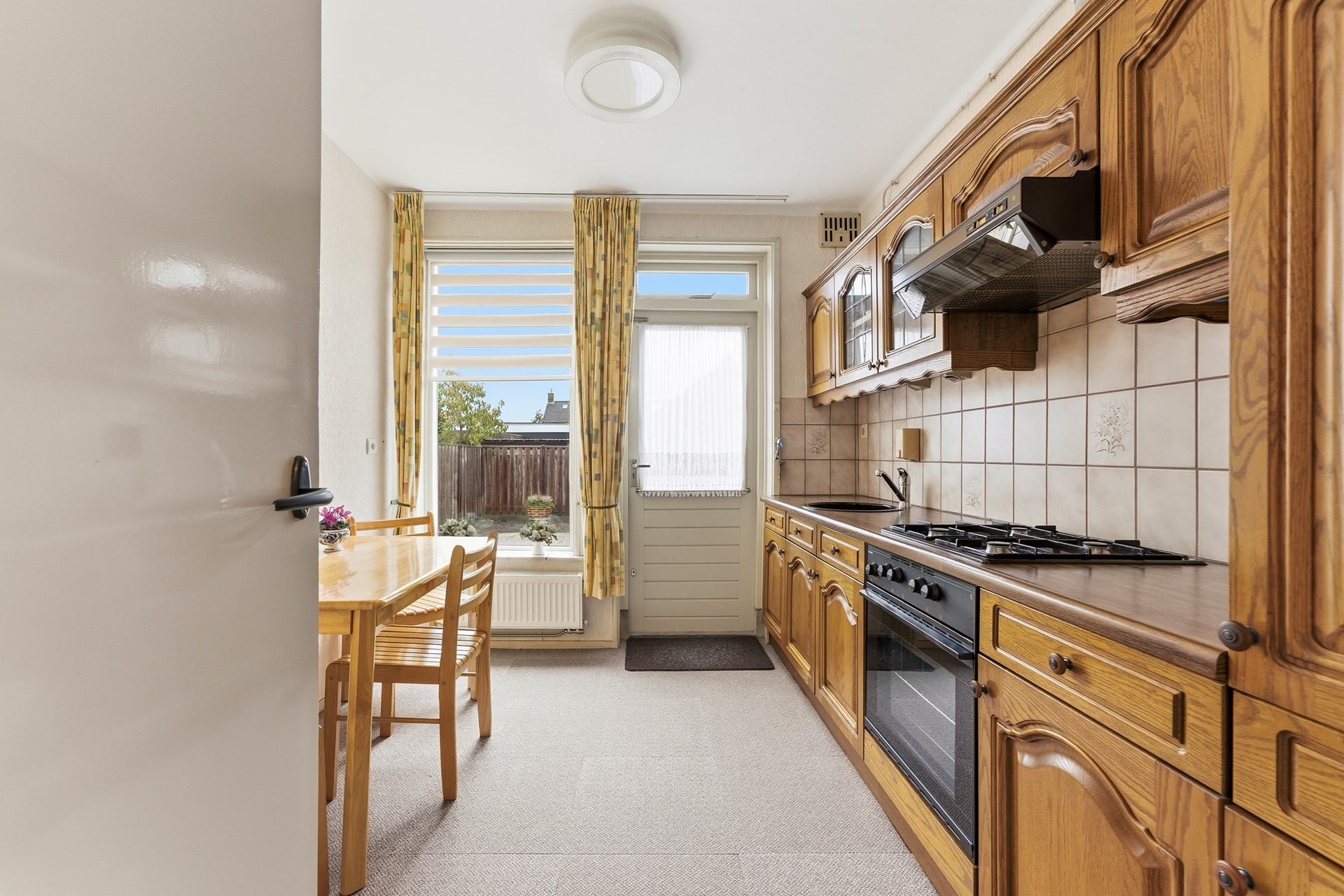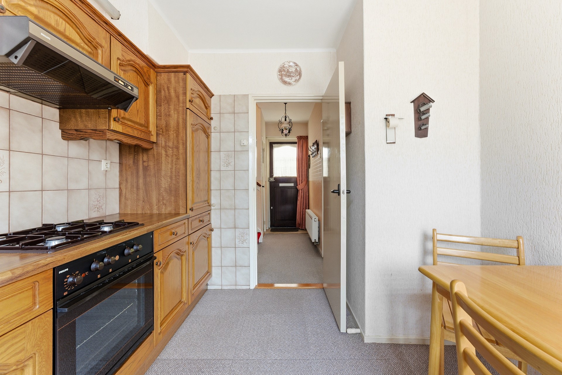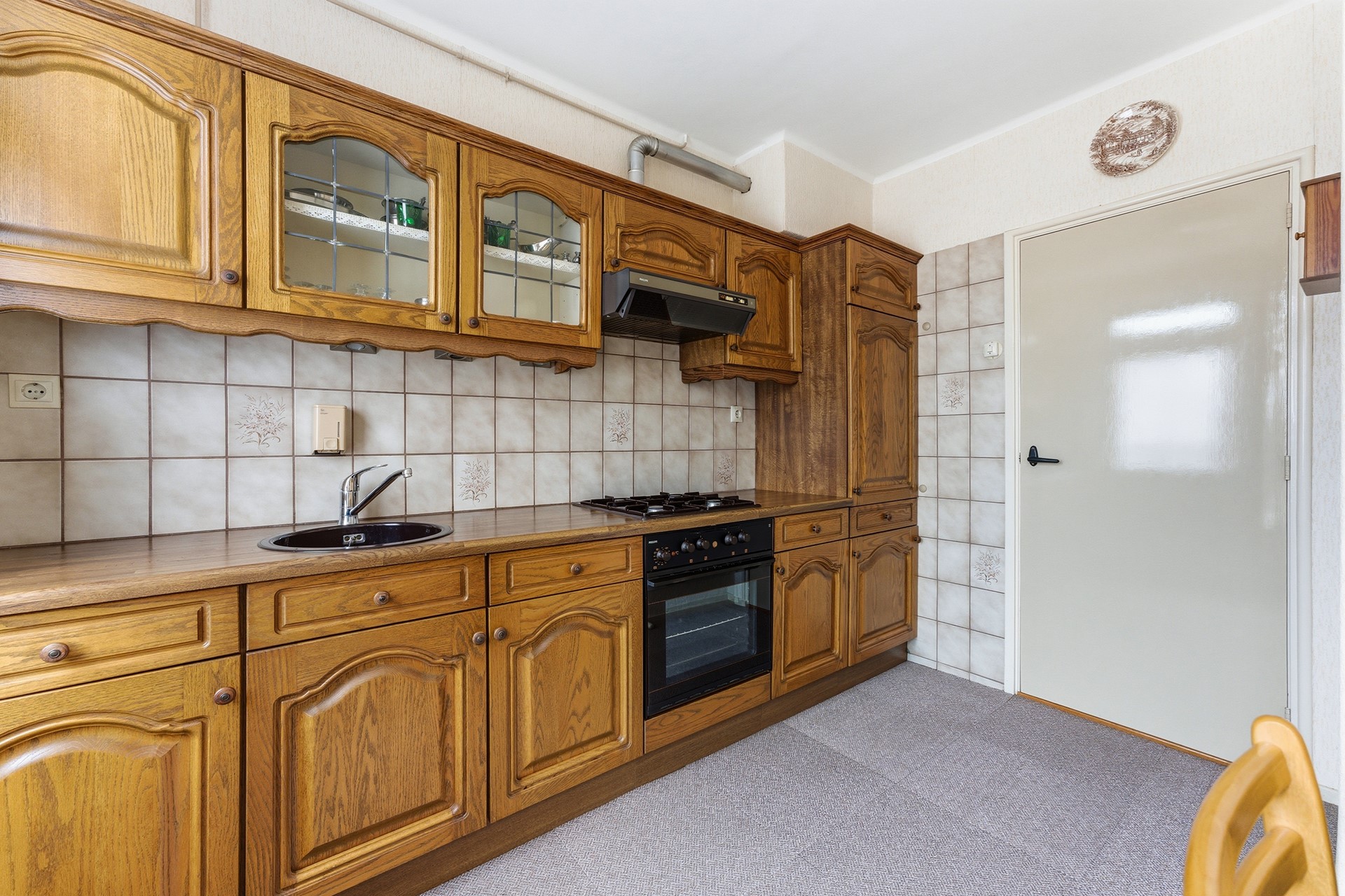 Keuken: De gesloten keuken ligt aan de achterzijde van de woning. De inrichting is eenvoudig, maar netjes onderhouden. De keuken is uitgerust met diverse apparaten, waaronder een 4-pits gasstel, oven, afzuigkap en koelkast. Via de achterdeur is er directe toegang tot de achtertuin. Wie wil moderniseren of de keuken wil betrekken bij de woonkamer, vindt hier volop mogelijkheden om de ruimte naar eigen wens te vernieuwen of uit te breiden. De ruimte is afgewerkt met vloerbedekking, behang wanden en een gestuukt plafond.