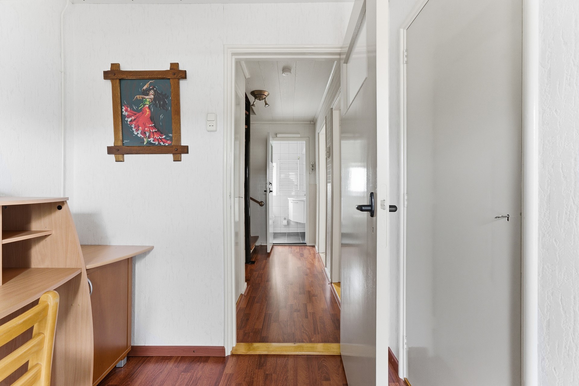 Overloop: De overloop is netjes afgewerkt met laminaat, behangwanden en plafonddelen, en biedt toegang tot drie slaapkamers en de badkamer. Een inbouwkast op de overloop zorgt voor extra bergruimte. Ook de slaapkamers zijn keurig afgewerkt met laminaat, behangwanden en plafonddelen.