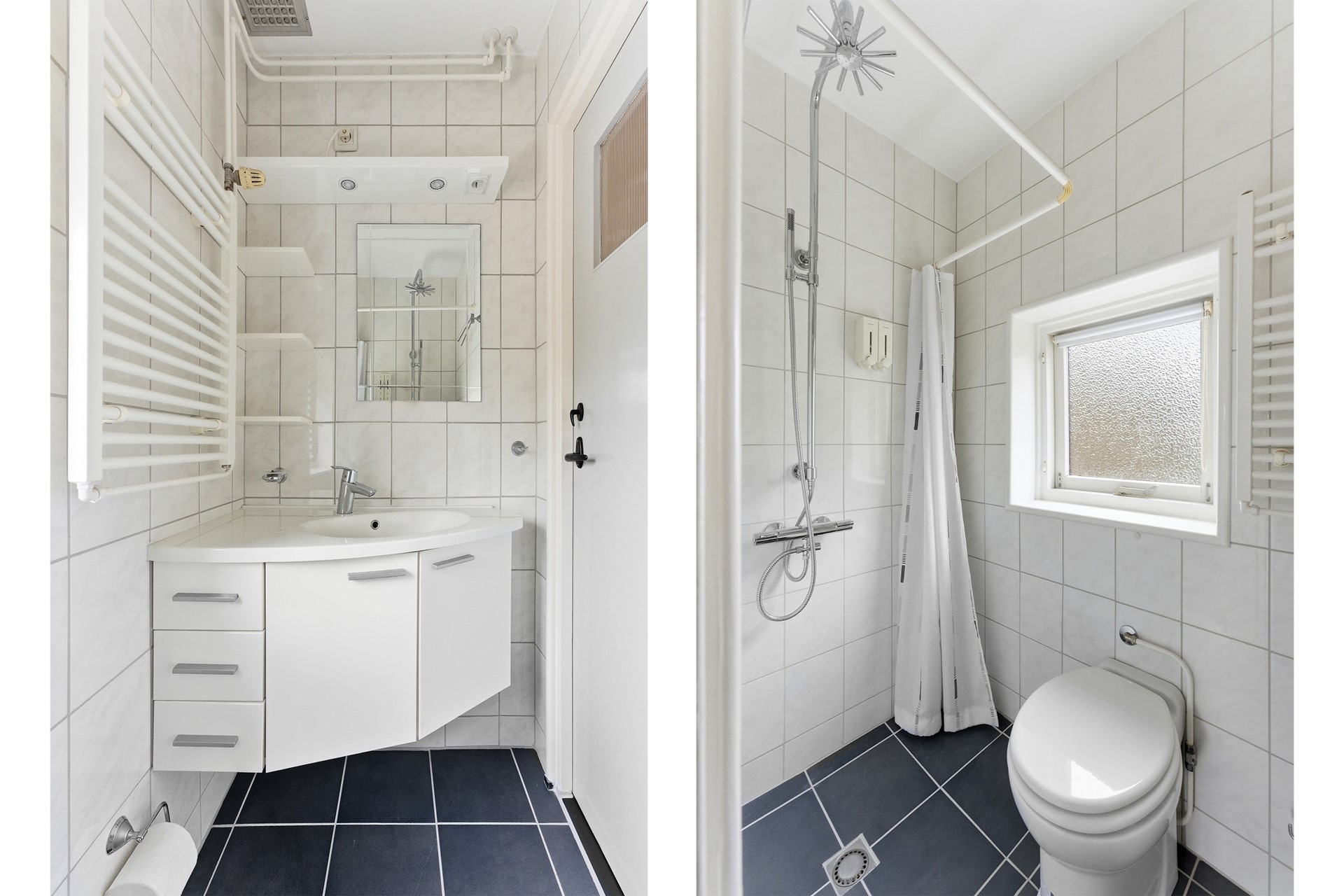 Badkamer: De badkamer is compact, maar functioneel ingedeeld. De ruimte is voorzien van een wastafel met meubel, douche, toilet en design radiator. De ruimte heeft een nette basis die ruimte biedt voor modernisering.