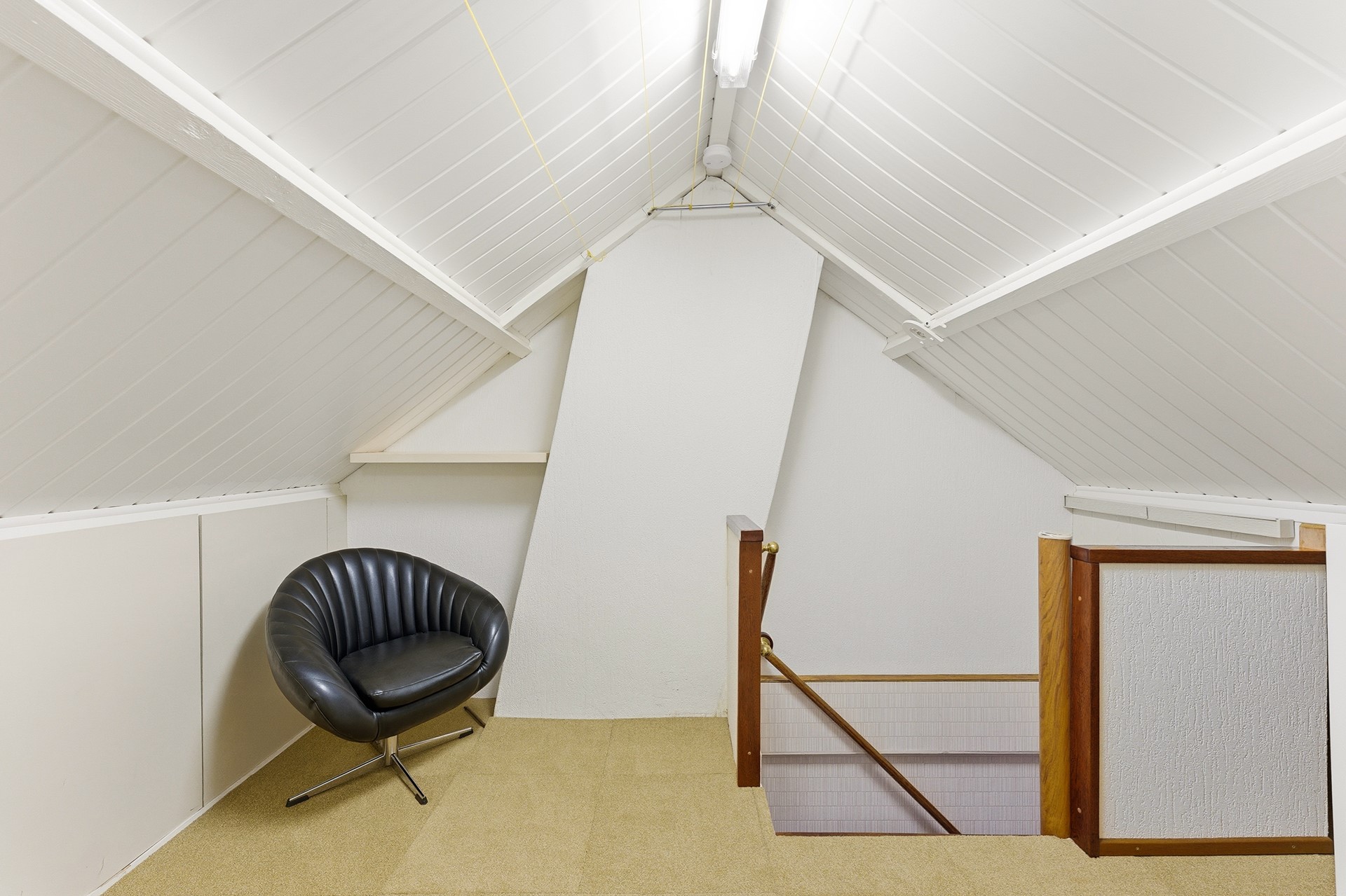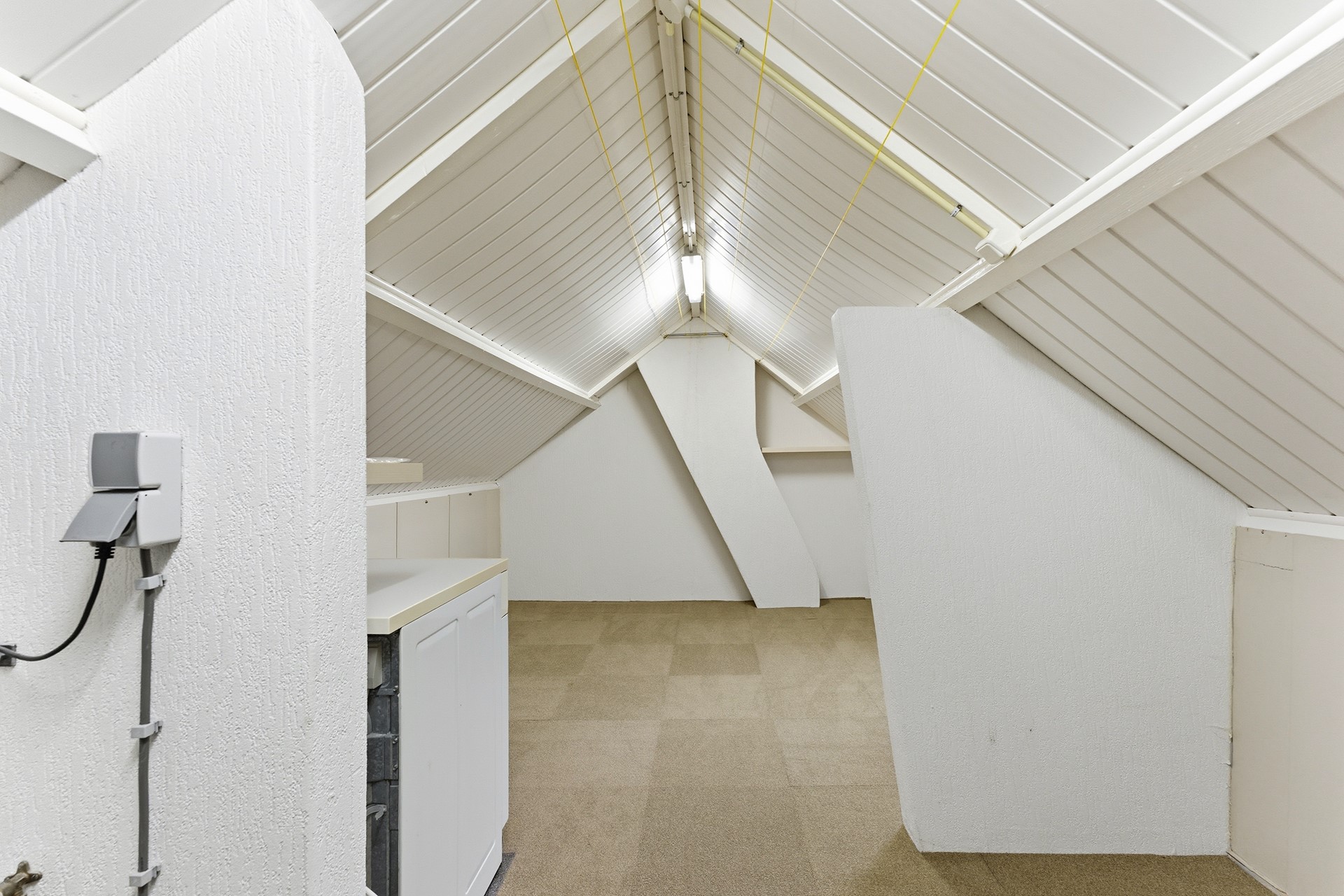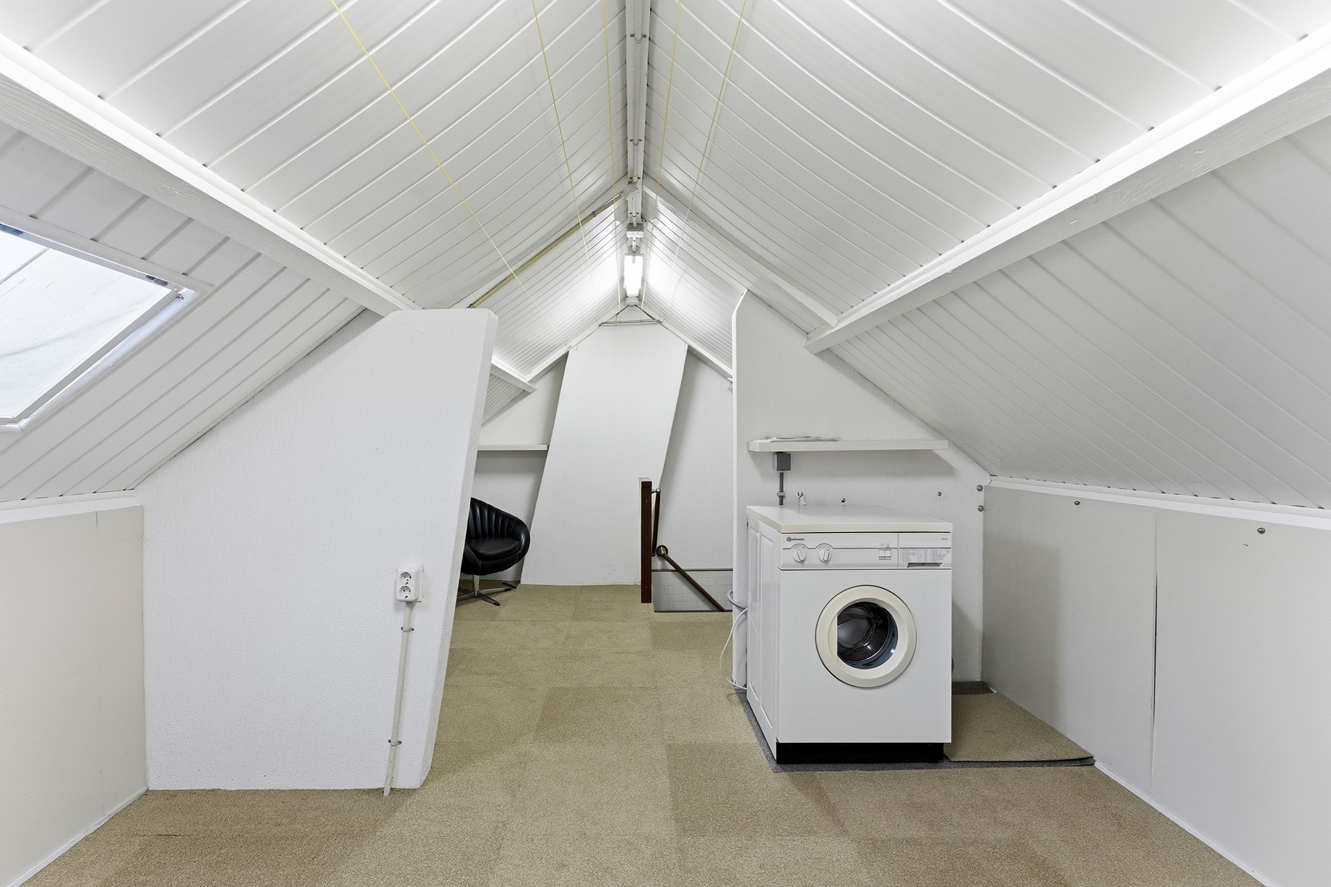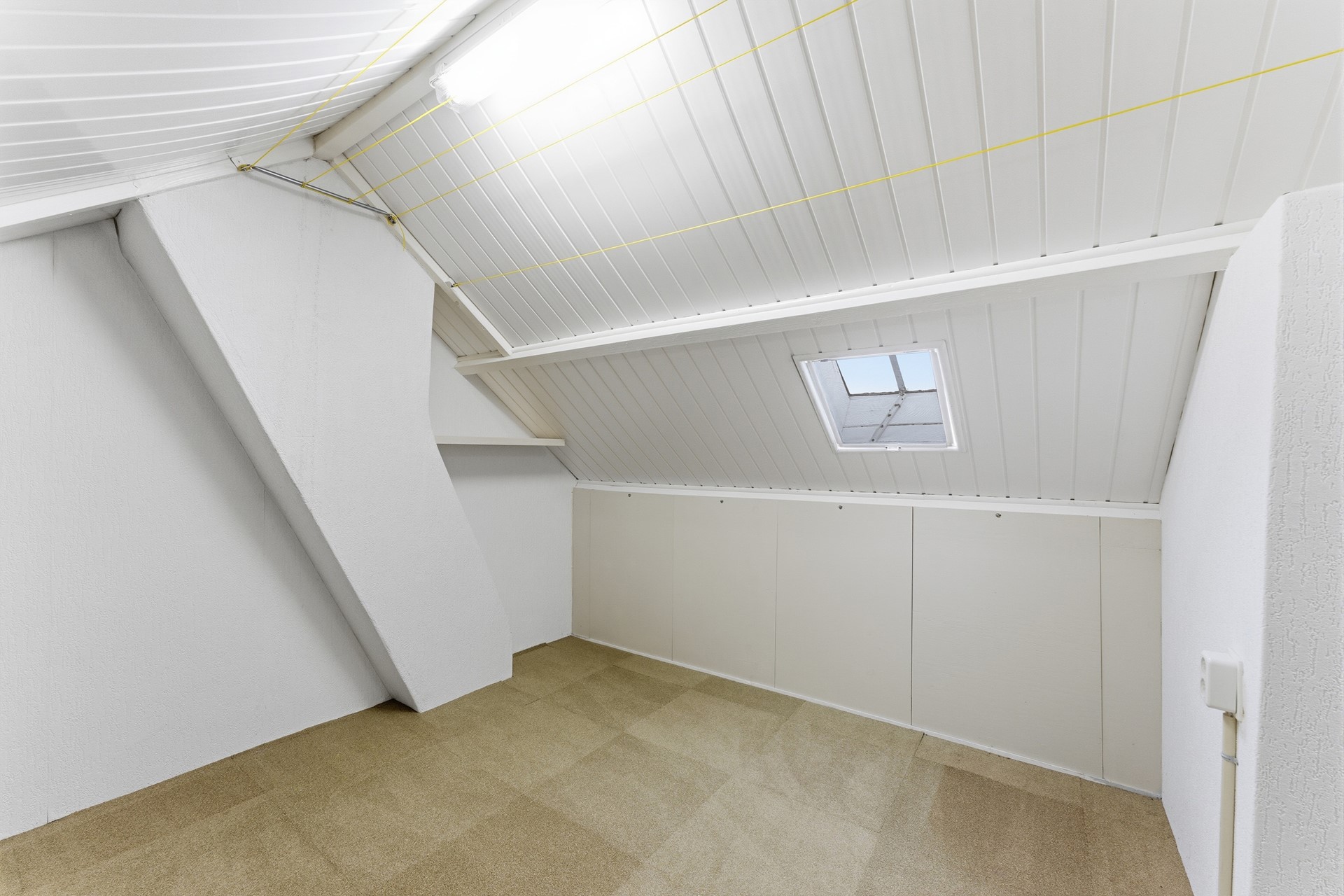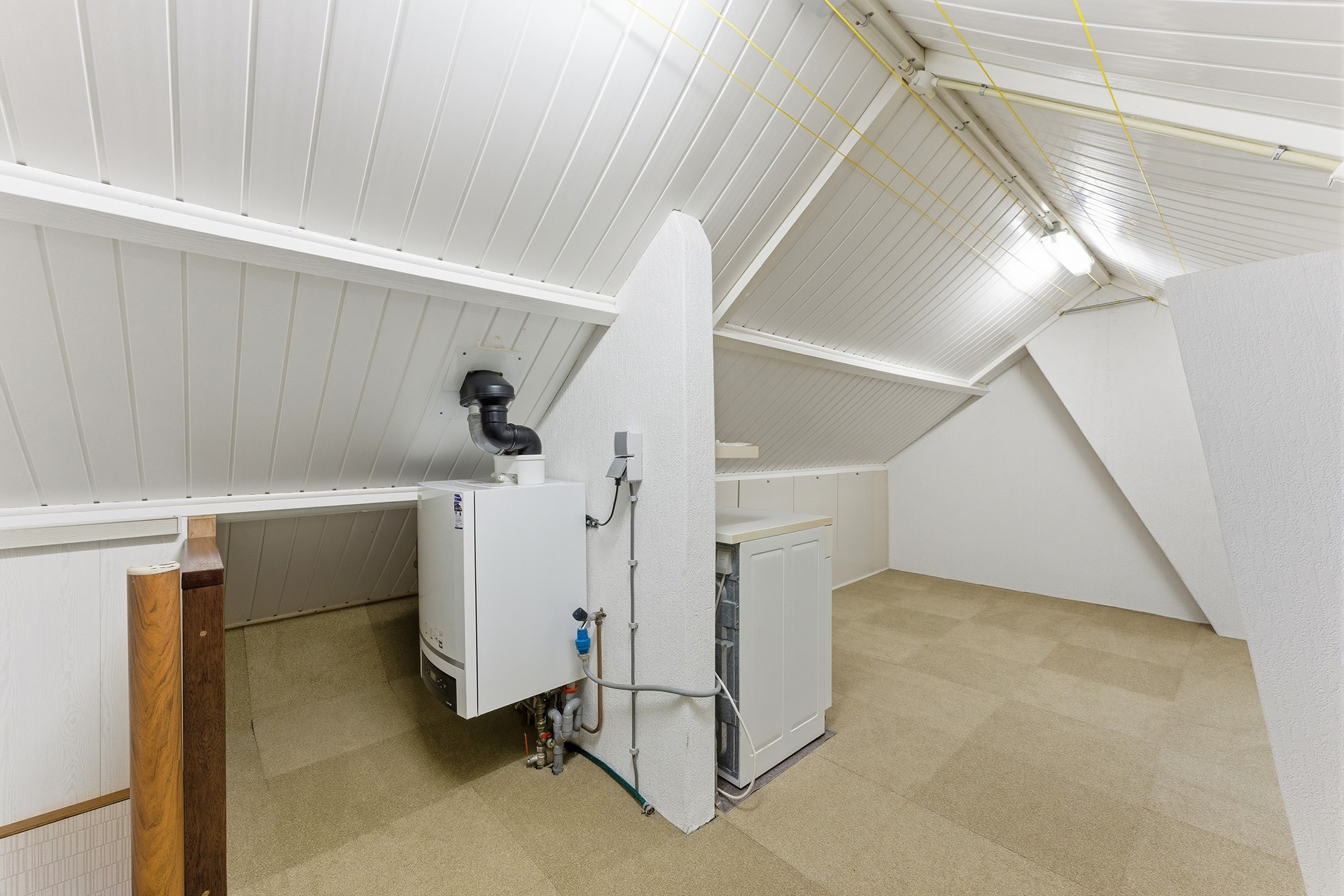 Zolder: De tweede verdieping is bereikbaar via een vaste trap en biedt verrassend veel ruimte. De vloer is voorzien van vloerbedekking, de wanden van behang en een delenplafond. Op deze verdieping bevinden zich de Cv-ketel (Nefit, 2008) en de aansluitingen voor wasmachine en droger. Dankzij het dakraam aan de achterzijde komt er daglicht binnen, waardoor de ruimte prettig aanvoelt. Deze verdieping wordt momenteel als bergzolder gebruikt, maar kan eenvoudig voor andere doeleinden worden ingericht.