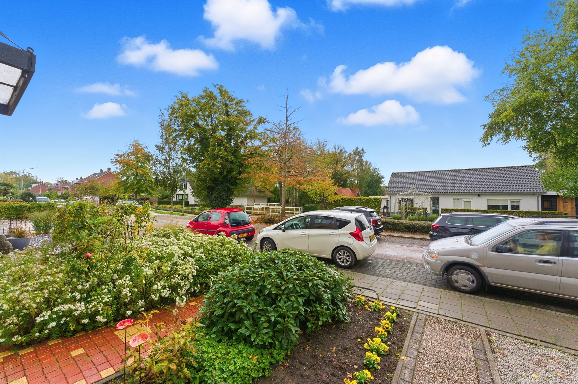 Voortuin: De voortuin (afm. ca. 5,7 x 4,50 m) ligt op het zuidwesten en is aangelegd met grind en bestrating. Er is een water- en elektravoorziening aanwezig, evenals rolluiken aan de voorzijde van de woning. Vanuit de voortuin heb je een leuk uitzicht op de villa’s aan de overzijde van de straat, wat zorgt voor een ruimtelijk gevoel.