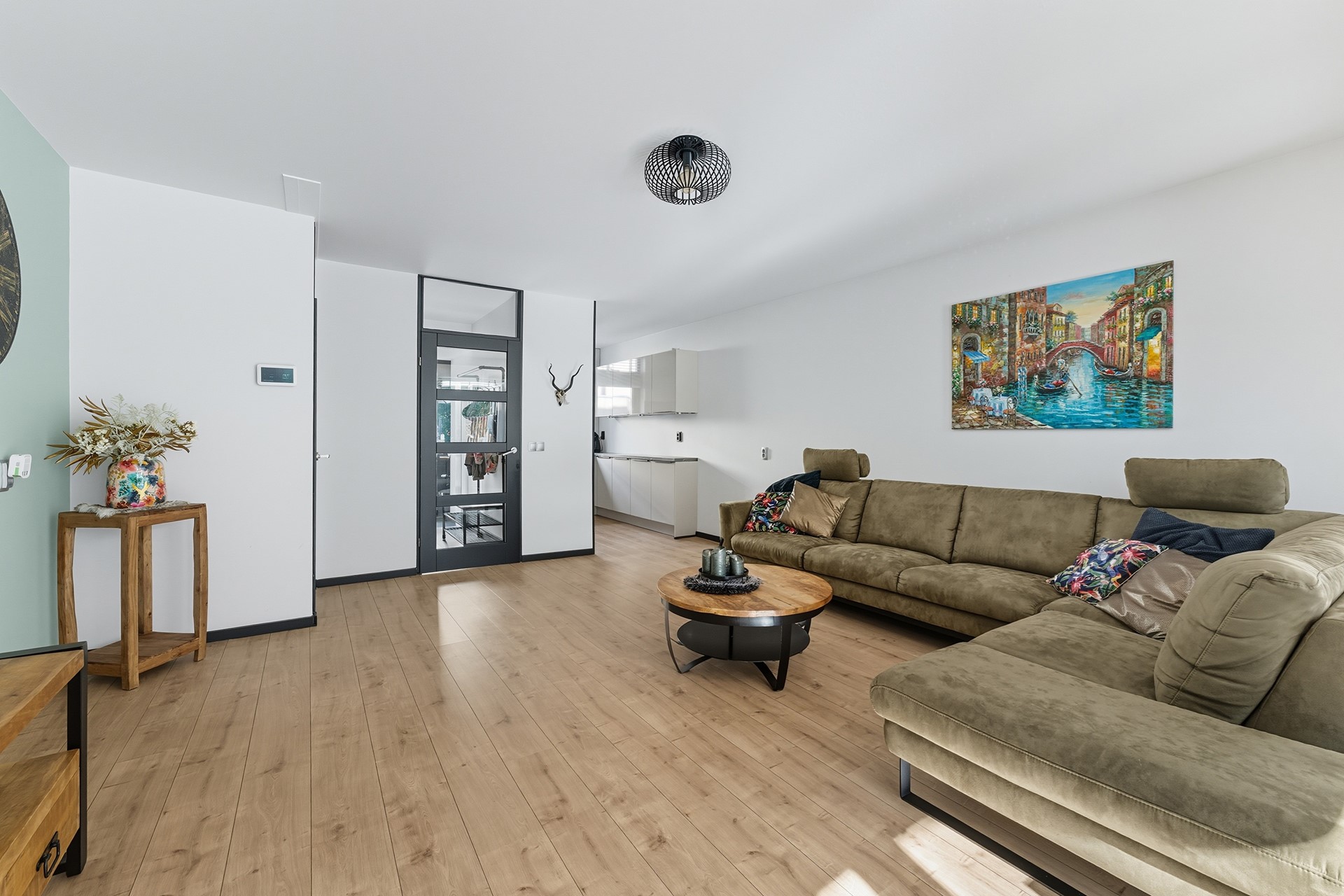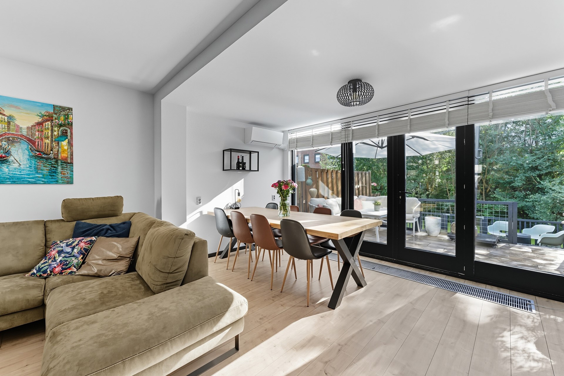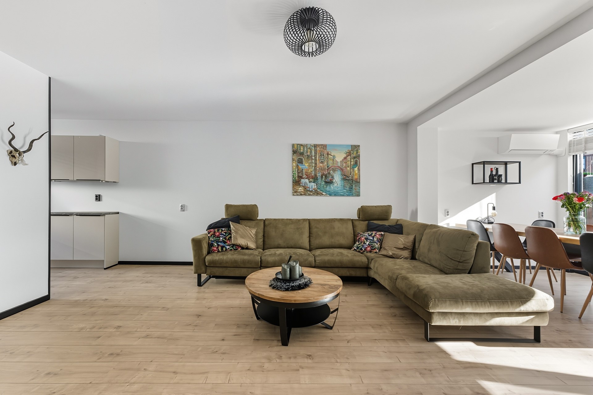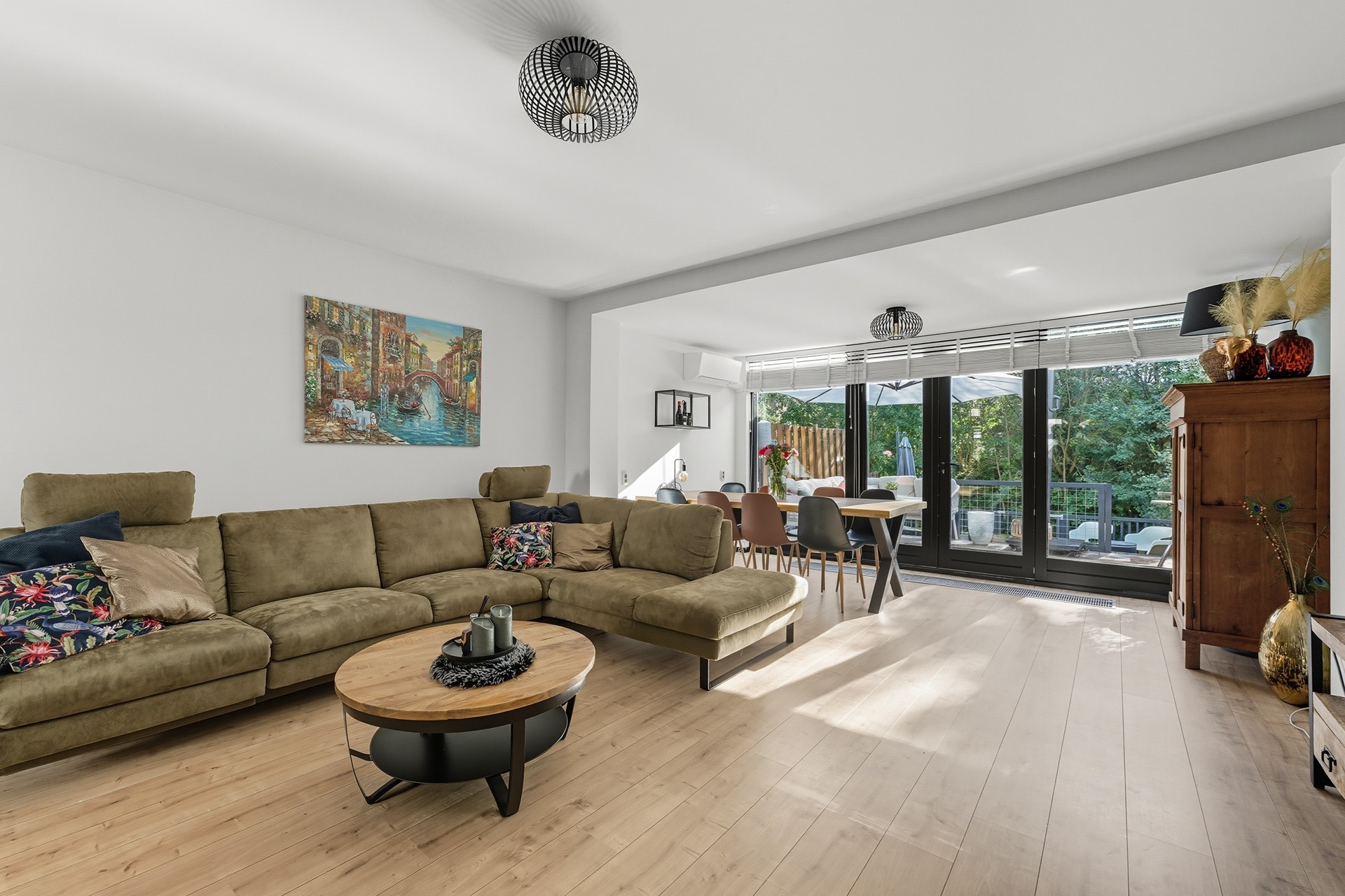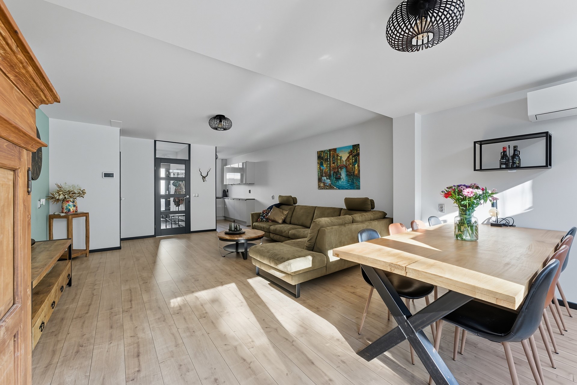 Woonkamer: De tuingerichte woonkamer is heerlijk licht en heeft openslaande deuren naar de achtertuin, zo haal je het buitenleven echt naar binnen. De ruime aanbouw zorgt voor extra leefruimte en de trapkast zorgt voor extra bergruimte. De begane grond is voorzien van airconditioning. Vanuit de woonkamer loop je door naar de moderne keuken. De ruimte is keurig afgewerkt met een spuitwerk plafond, gestuukte wanden en een laminaatvloer.